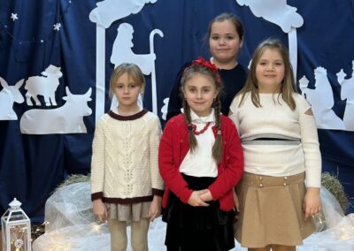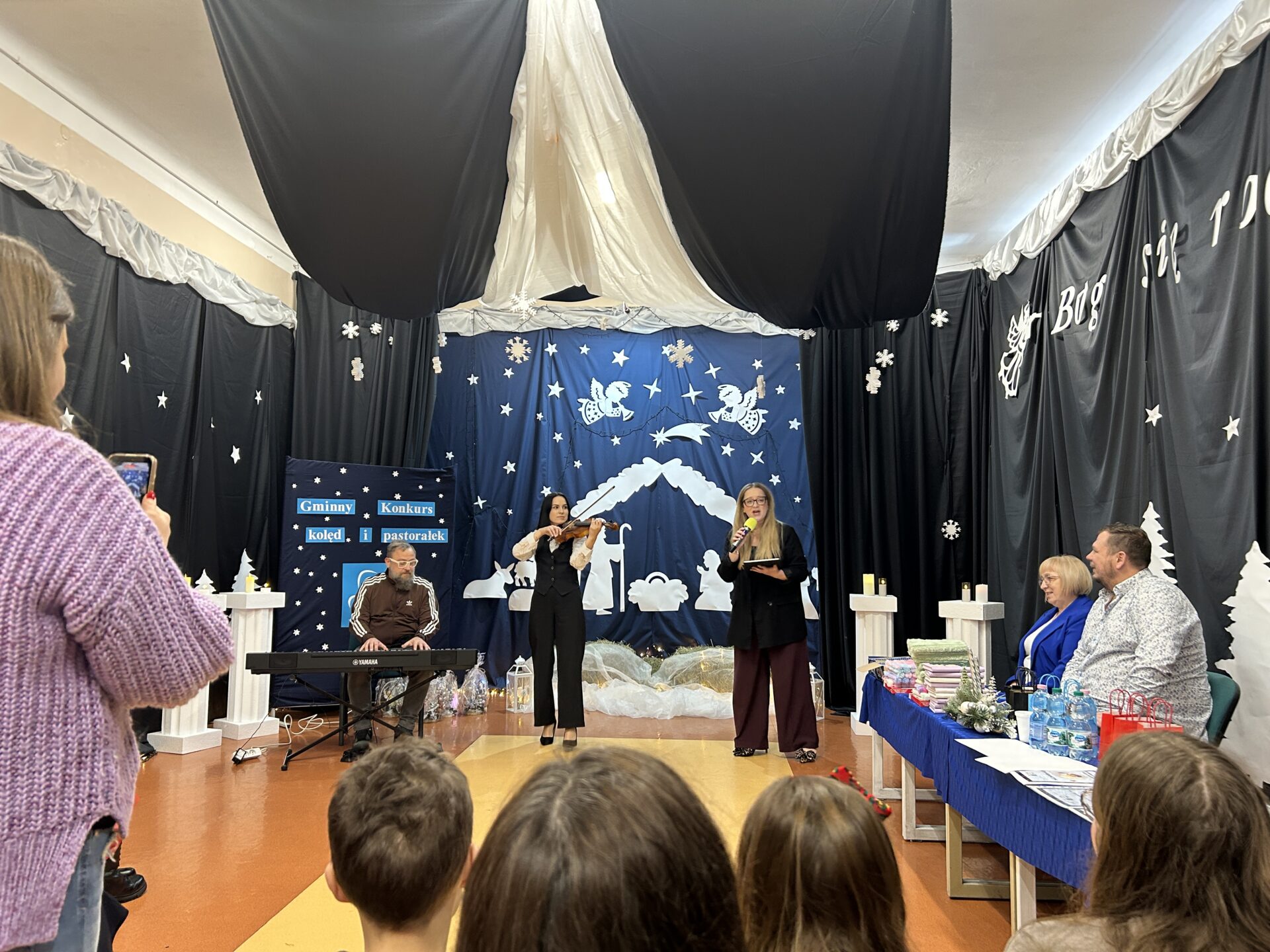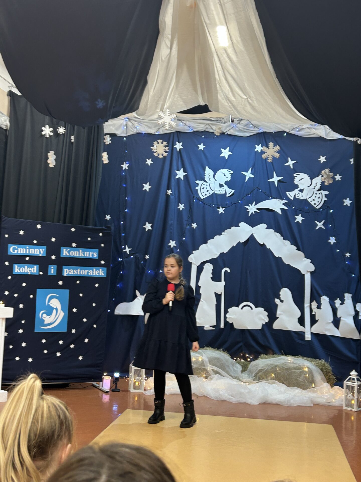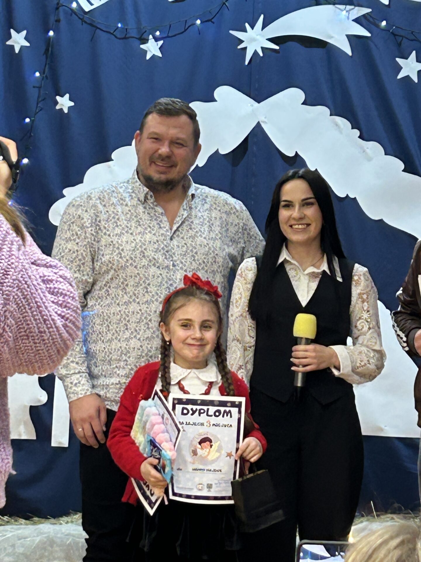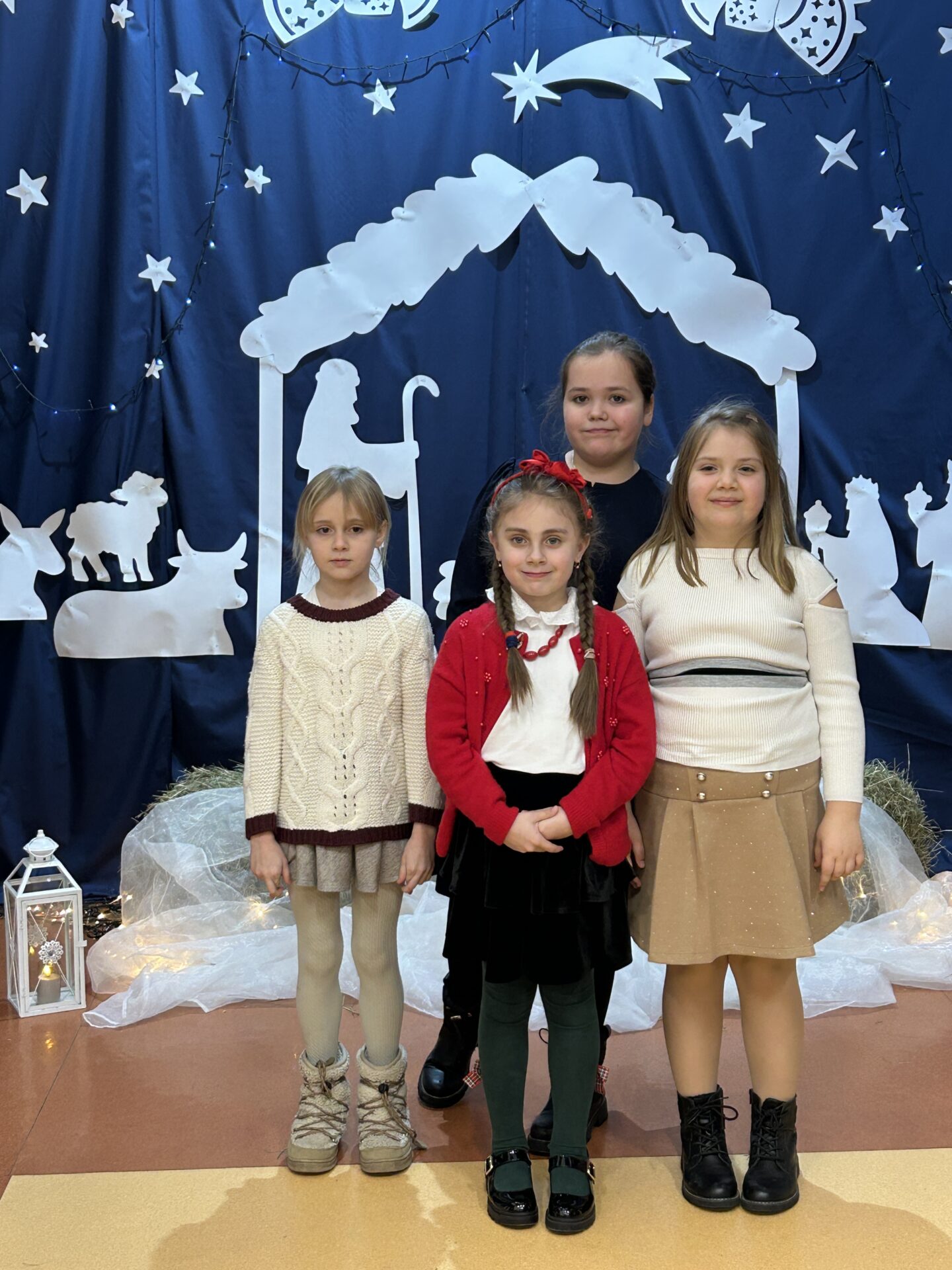 15 stycznia 2026 roku odbyła się już czwarta edycja Gminnego Konkursu Kolęd i Pastorałek w Miedniewicach. Naszą szkołę reprezentowały cztery niezwykle utalentowane uczennice: Liliana Wołoszyn i Hania Hajduk (obie z klasy I), Pola Skręta (klasa III) oraz Aurelia Andrzejewska (klasa IV).