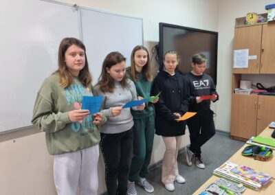 i rozdali kartki z sentencjami i cytatami dotyczącymi tolerancji. Każda z tych klas miała odczytane te myśli. Dzień ten stał się okazją do refleksji nad własną postawą w odniesieniu do innych osób- koleżanek i kolegów.
