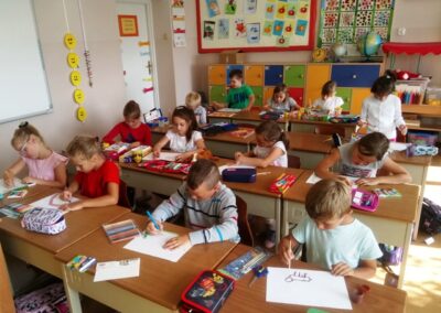 11 września odbył się Gminny Konkurs Plastyczny „Słyszę i maluję” inspirowany muzyką Fryderyka Chopina. Dzieci z klas 0 – III słuchając utworu Chopina tworzyły w swojej wyobraźni obrazy, które później przenosiły na karton wybraną przez siebie techniką plastyczną. Powstały ciekawe i oryginalne prace konkursowe. Jury długo debatowało nad wyborem w każdej grupie wiekowej dwóch prac, które pod każdym względem były „naj”.