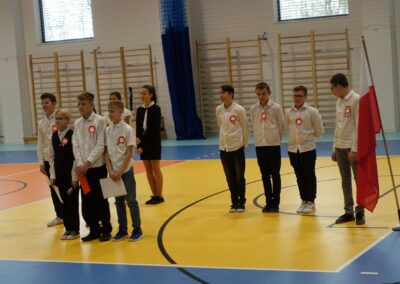 10 listopada, dzień przed 104 rocznicą odzyskania przez Polskę Niepodległości, w naszej szkole odbyła się akademia upamiętniająca to wydarzenie. Uczniowie z VII klasy wzięli udział w akademii, a o godzinie 11:11 wszyscy wspólnie zaśpiewali 4 zwrotki hymnu.