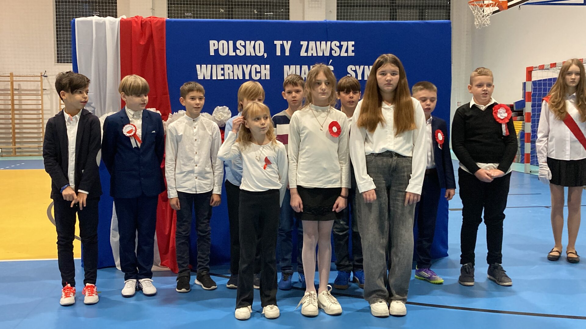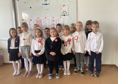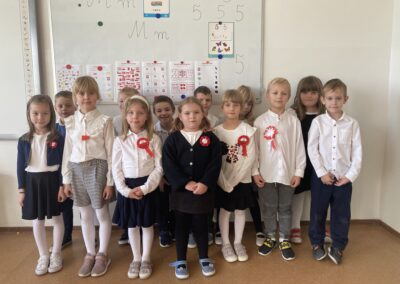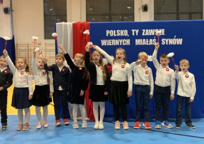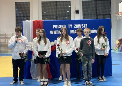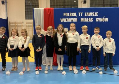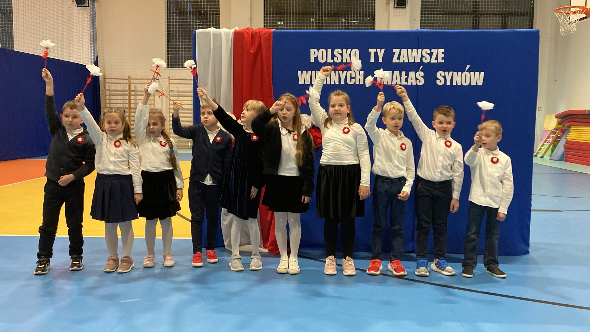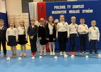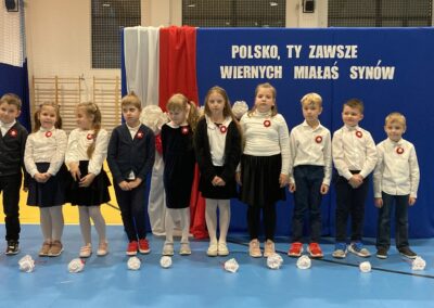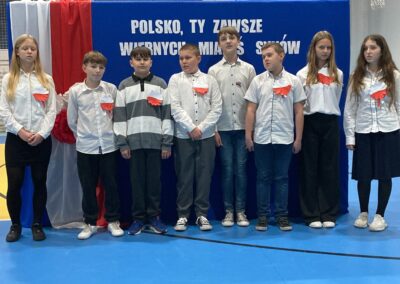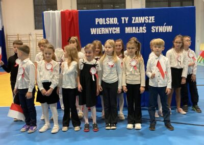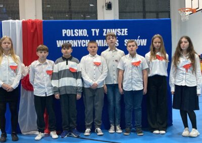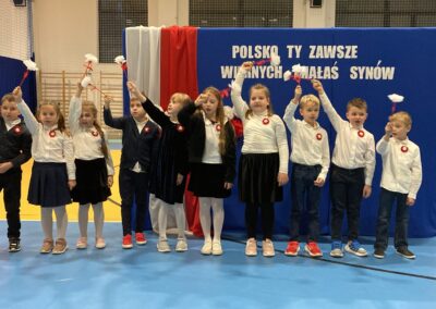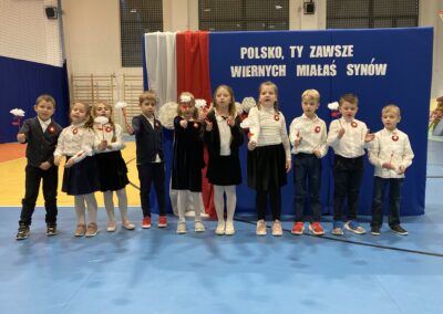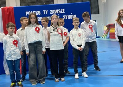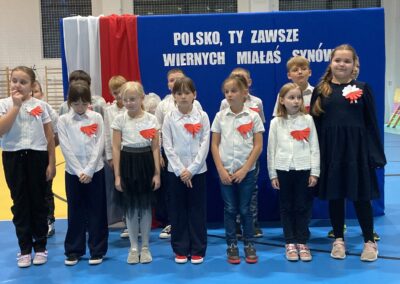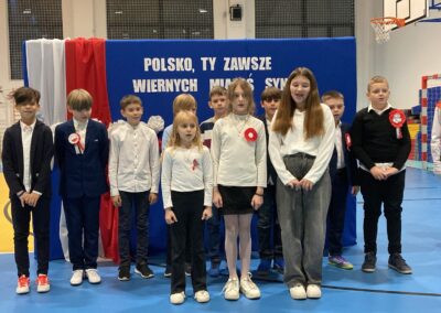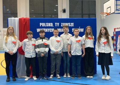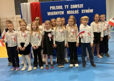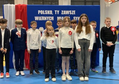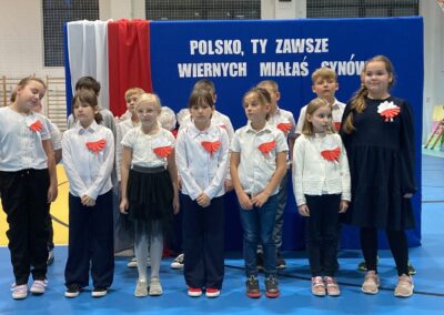 Podczas akademii uczniowie przypomnieli najważniejsze wydarzenia związane z odzyskaniem przez Polskę niepodległości. W ramach wspólnego świętowania każda klasa zaprezentowała pieśni patriotyczne, co nadało uroczystości wyjątkowy charakter.