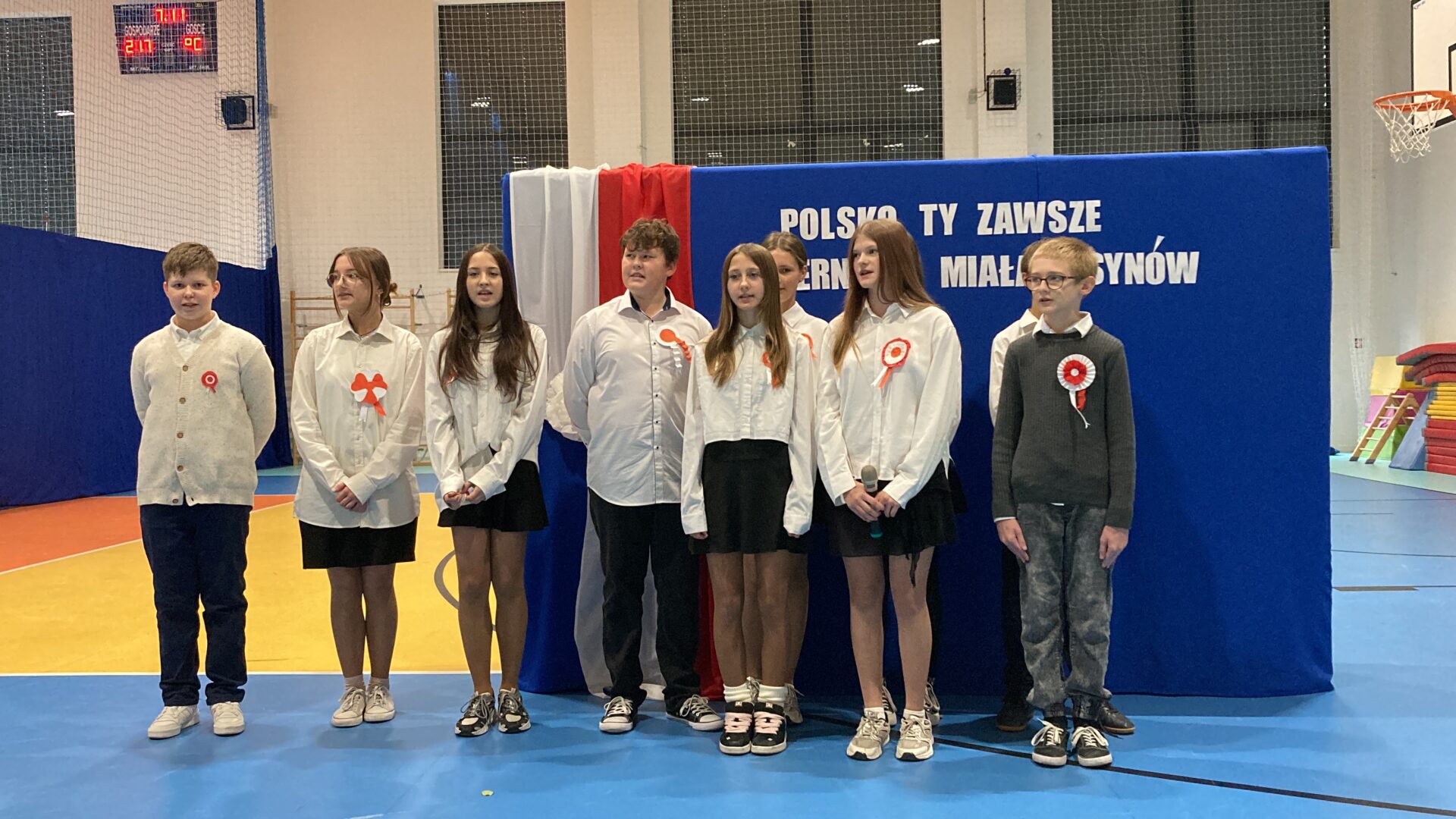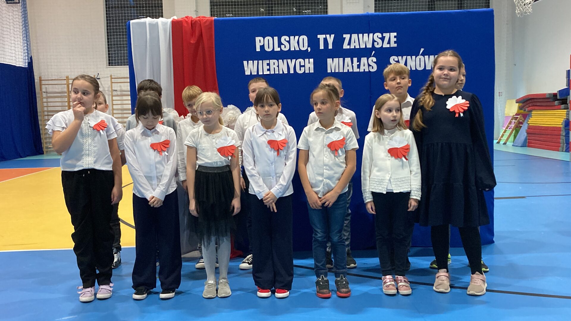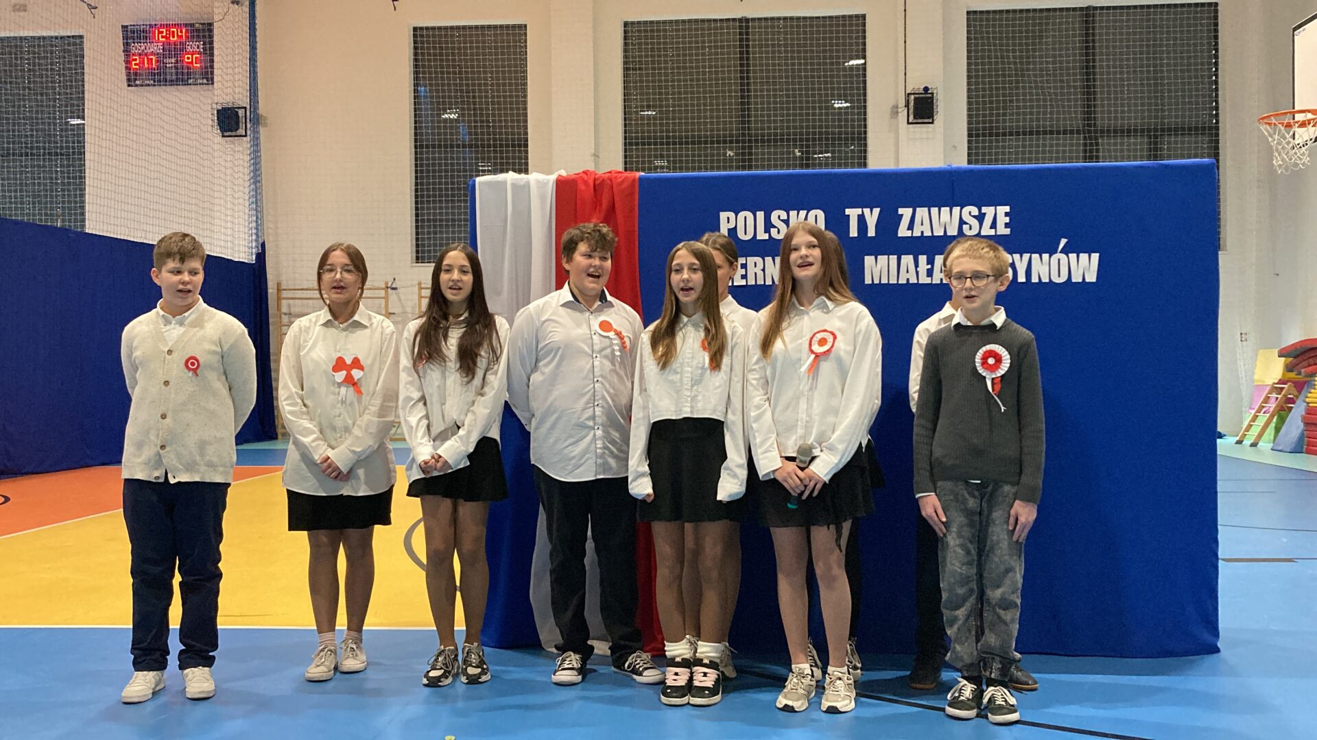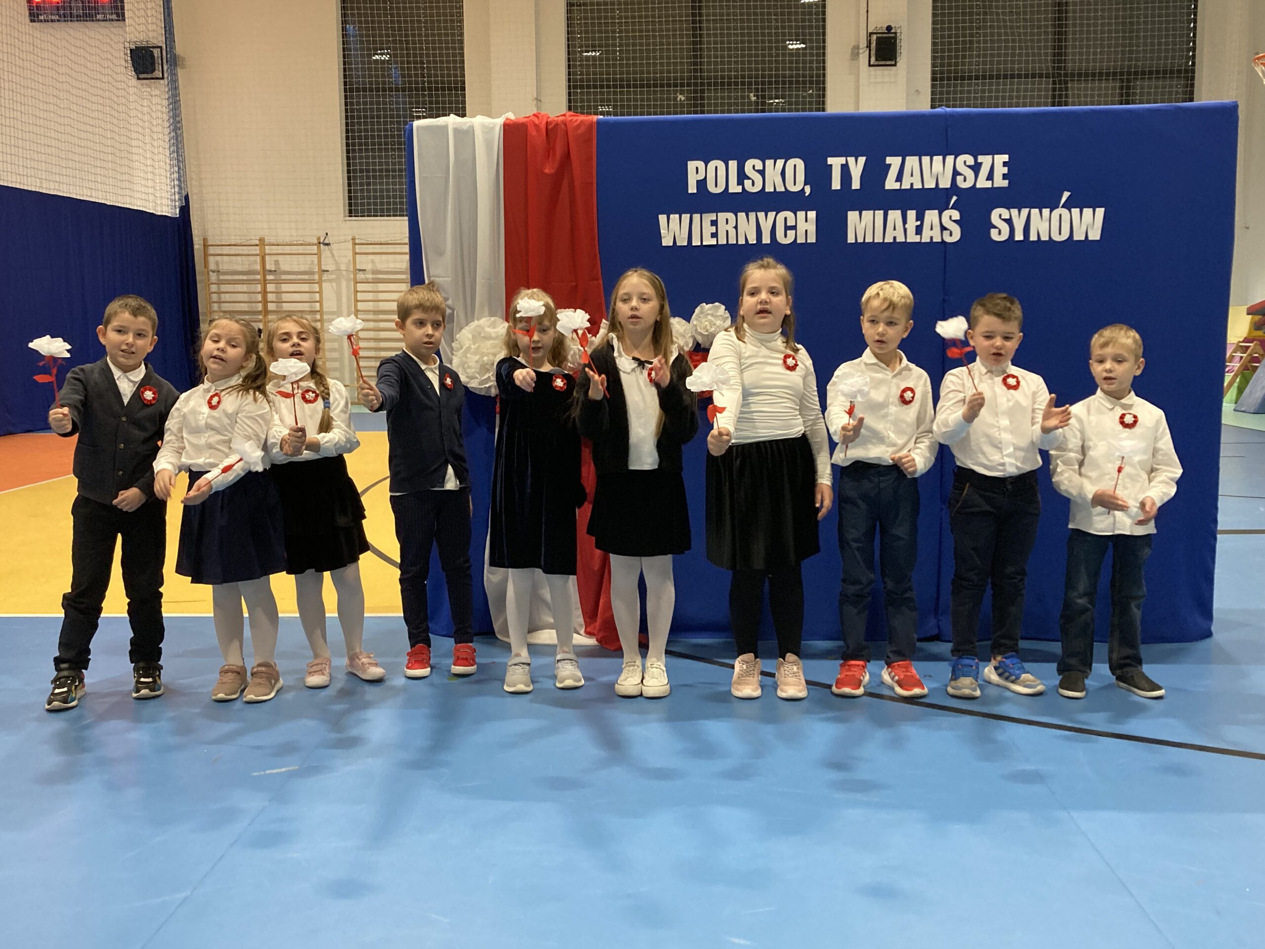 Podczas akademii uczniowie przypomnieli najważniejsze wydarzenia związane z odzyskaniem przez Polskę niepodległości. W ramach wspólnego świętowania każda klasa zaprezentowała pieśni patriotyczne, co nadało uroczystości wyjątkowy charakter.