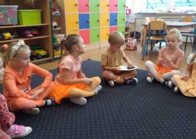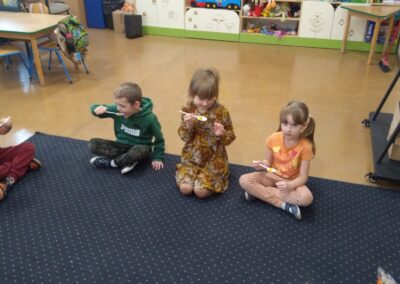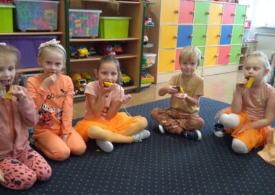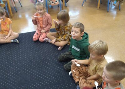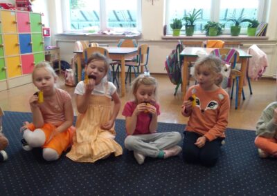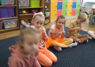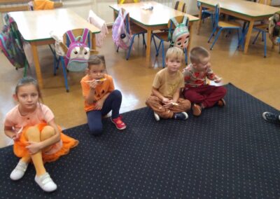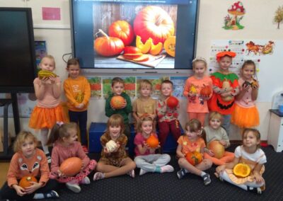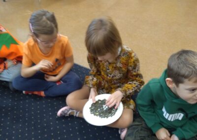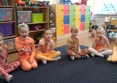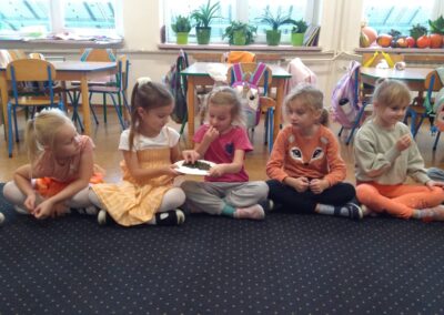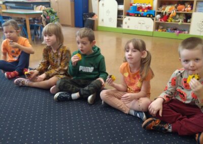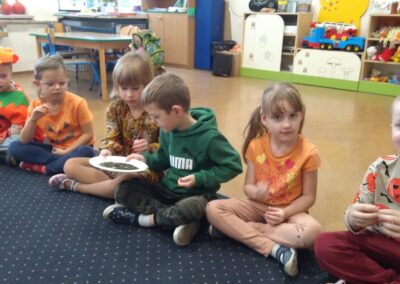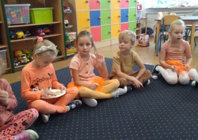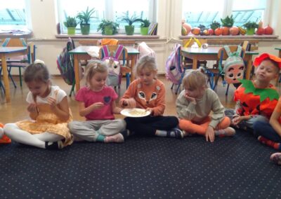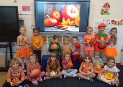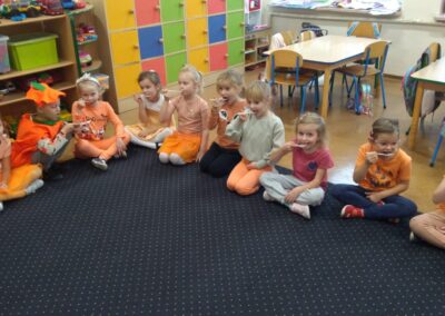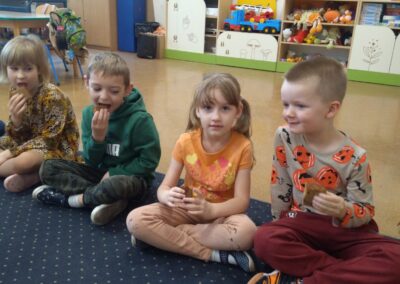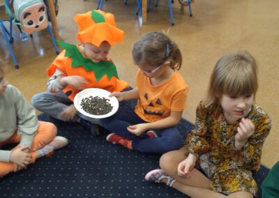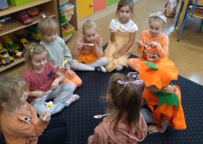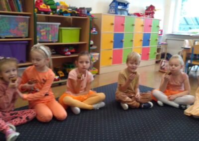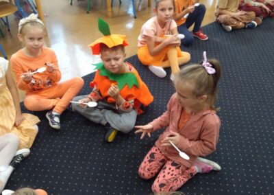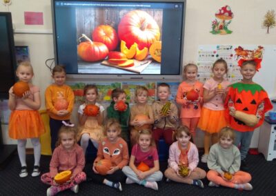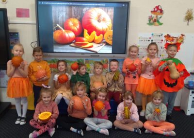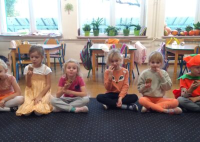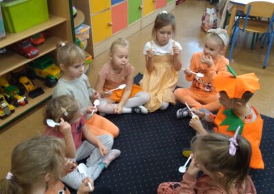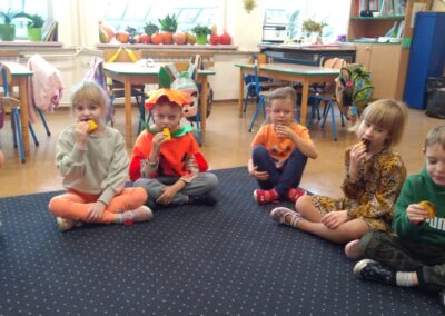 Ciąg dalszy projektu „Witaminki”16 listopada 2023Dyniowe zadanie – WYKONANE!Dzisiaj w naszej „zeróweczce” dzieci miały okazję bliżej poznać i posmakować dyni.To drugie zadanie z projektu „Witaminki”.Było smacznie i dyniowo 😊