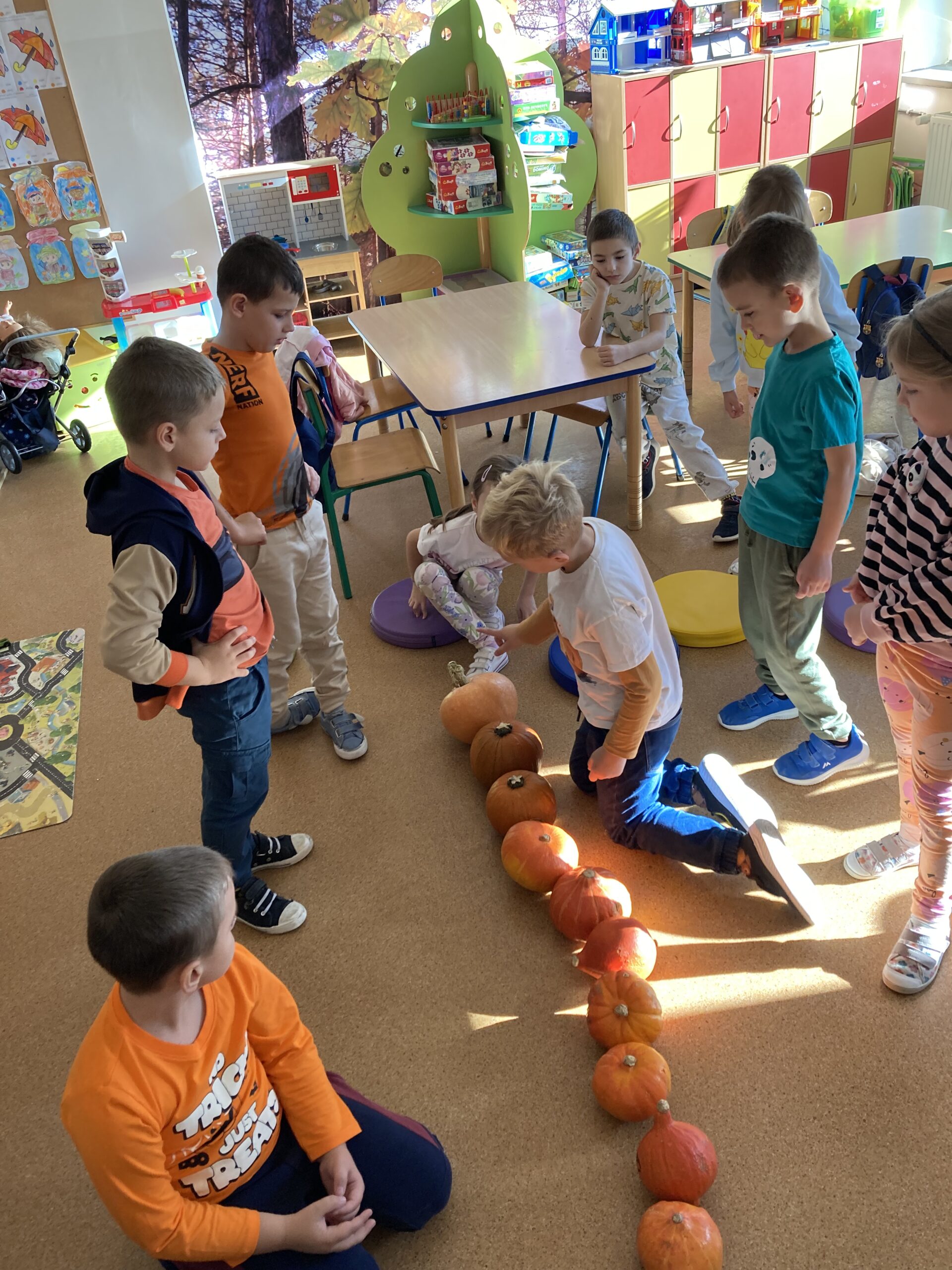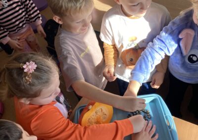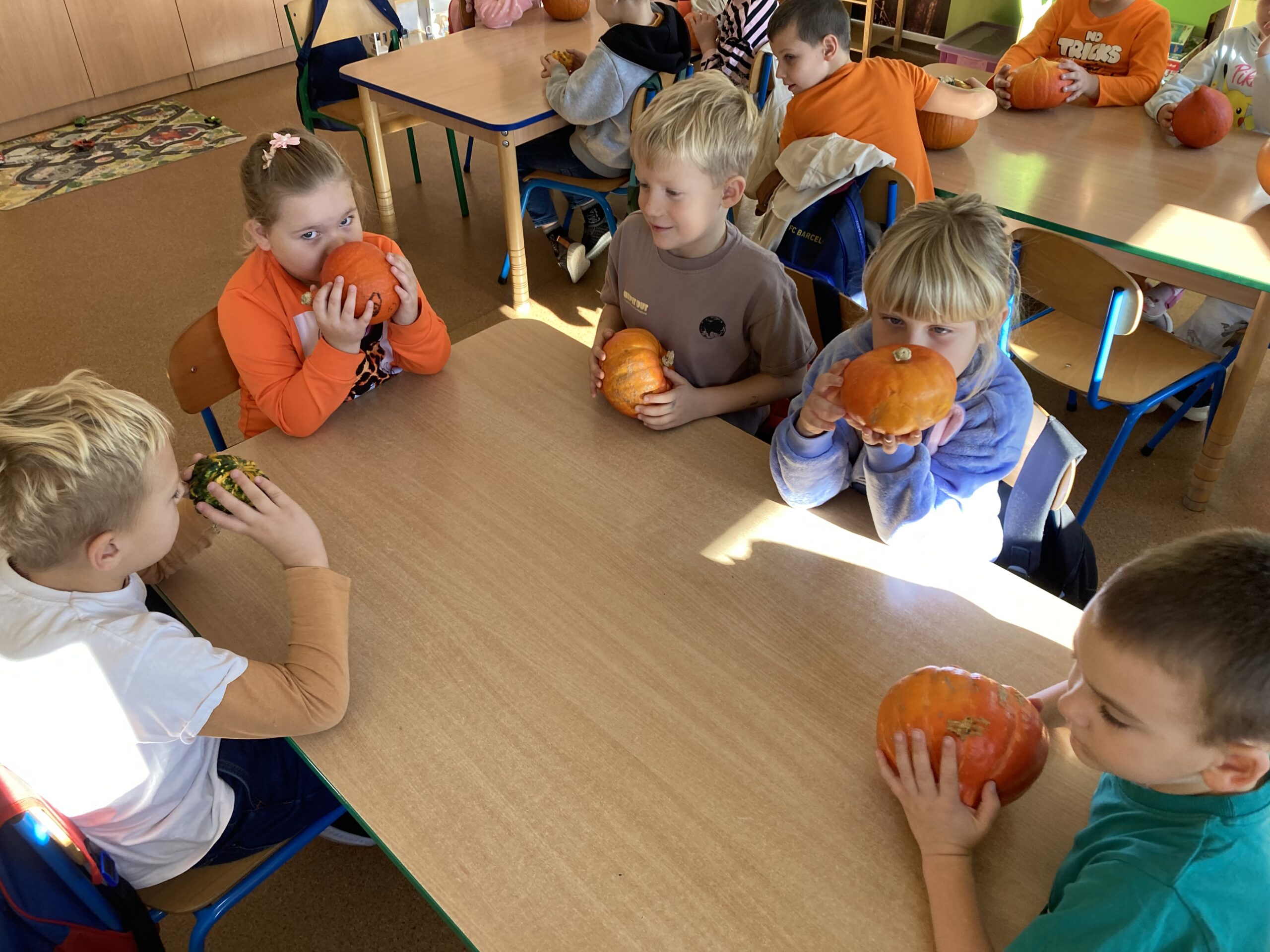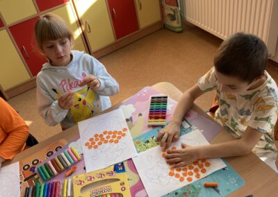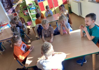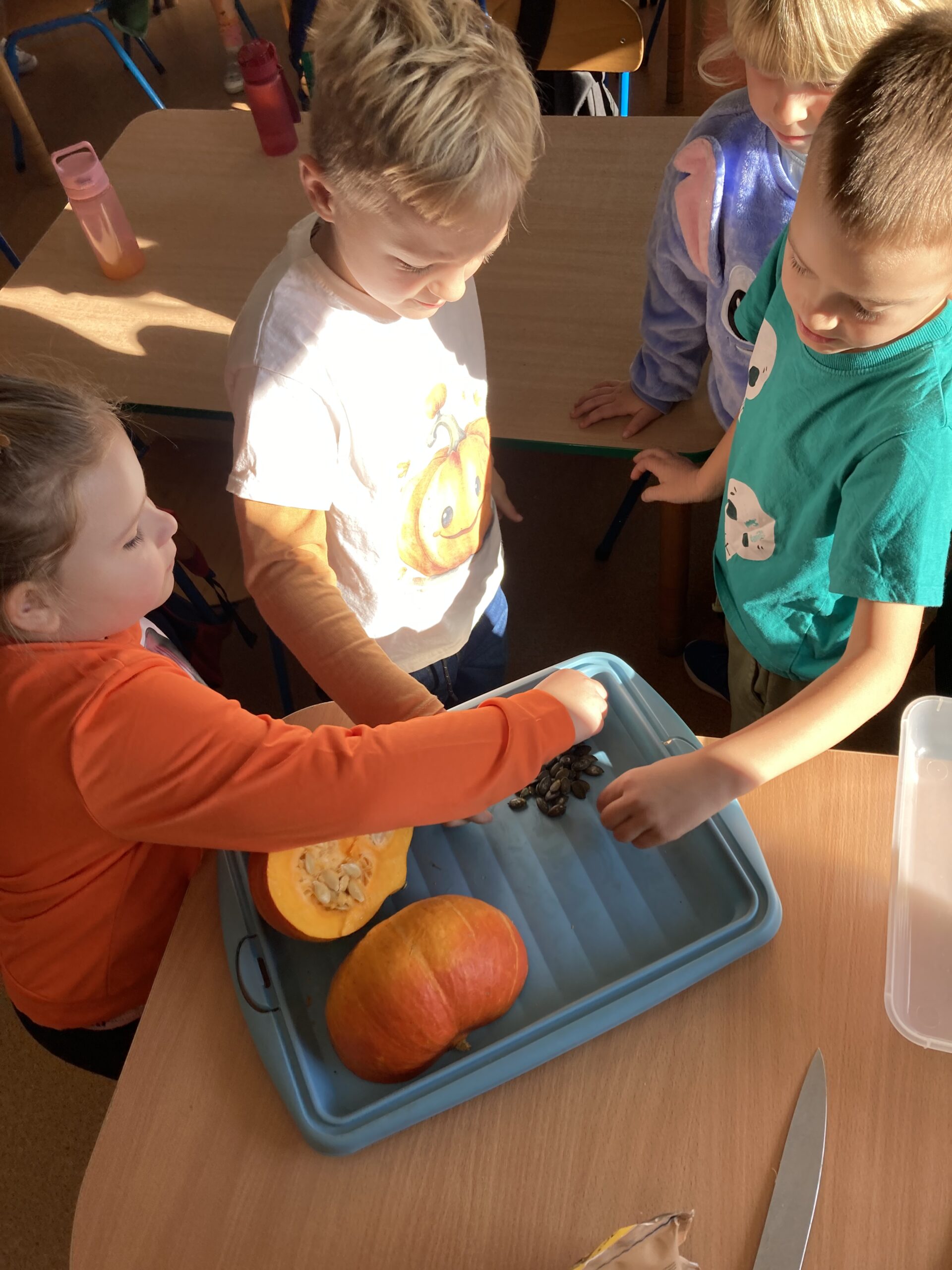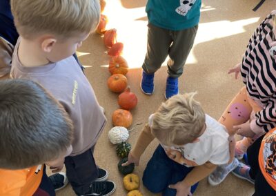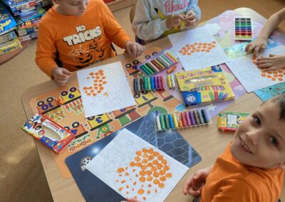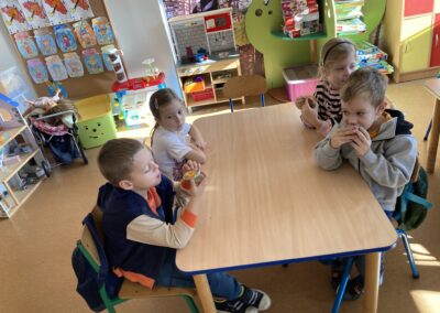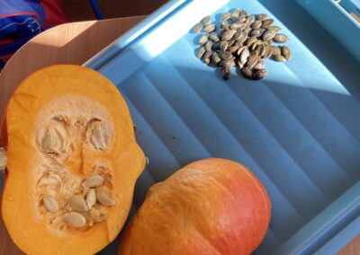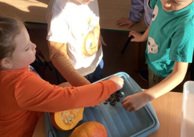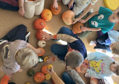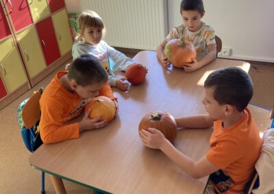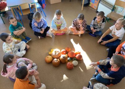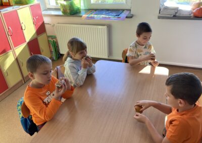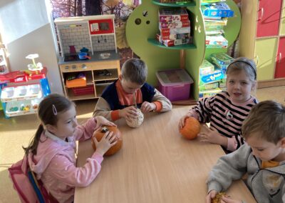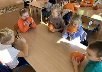 Nie zabrakło również zadań matematycznych i ruchowych inspirowanych dynią, które rozwijały spostrzegawczość, zręczność i kreatywność dzieci. Dodatkową atrakcją była degustacja pysznych dyniowych deserów oraz pestek – doskonała okazja do spróbowania zdrowych, sezonowych przysmaków.