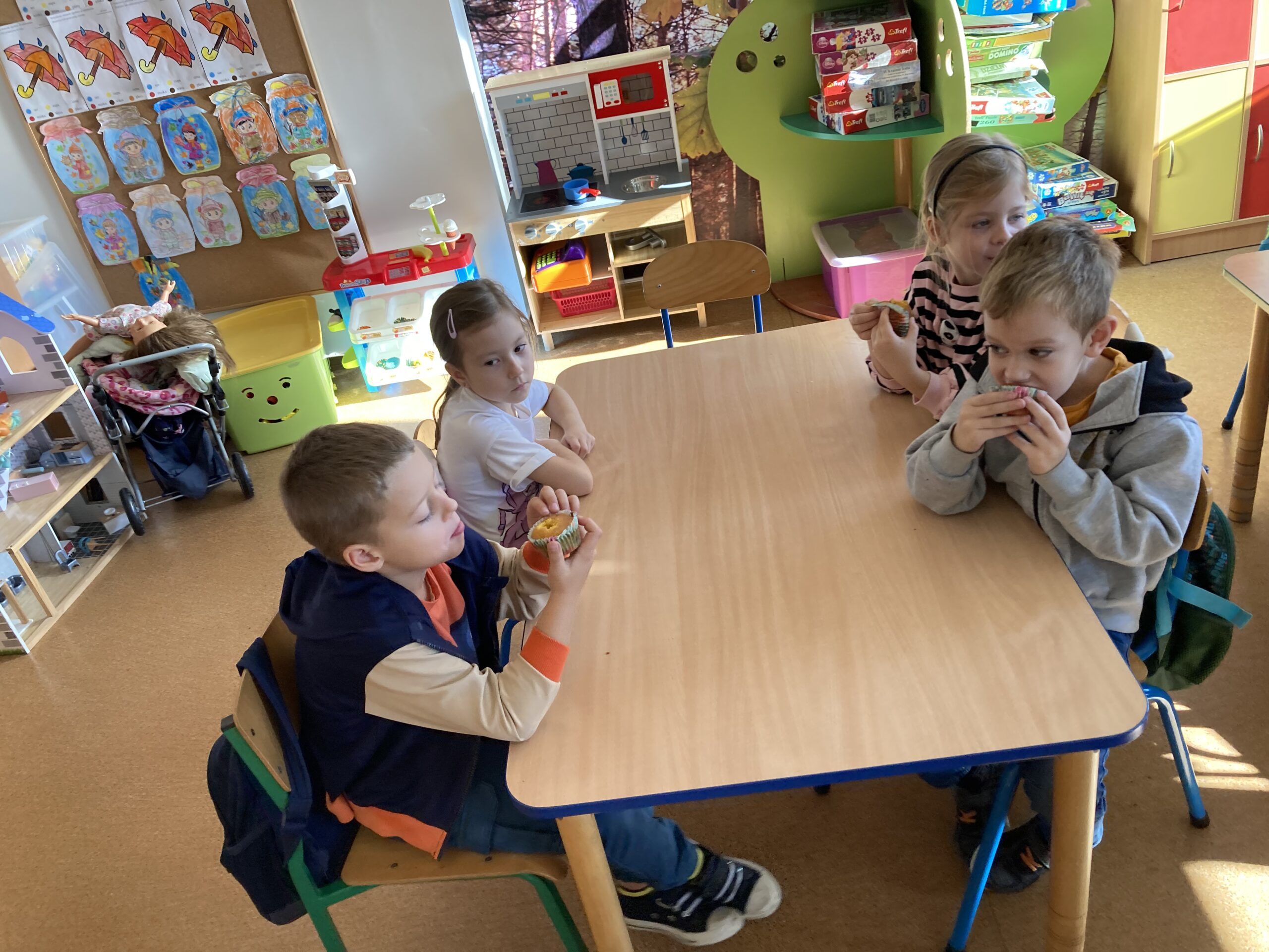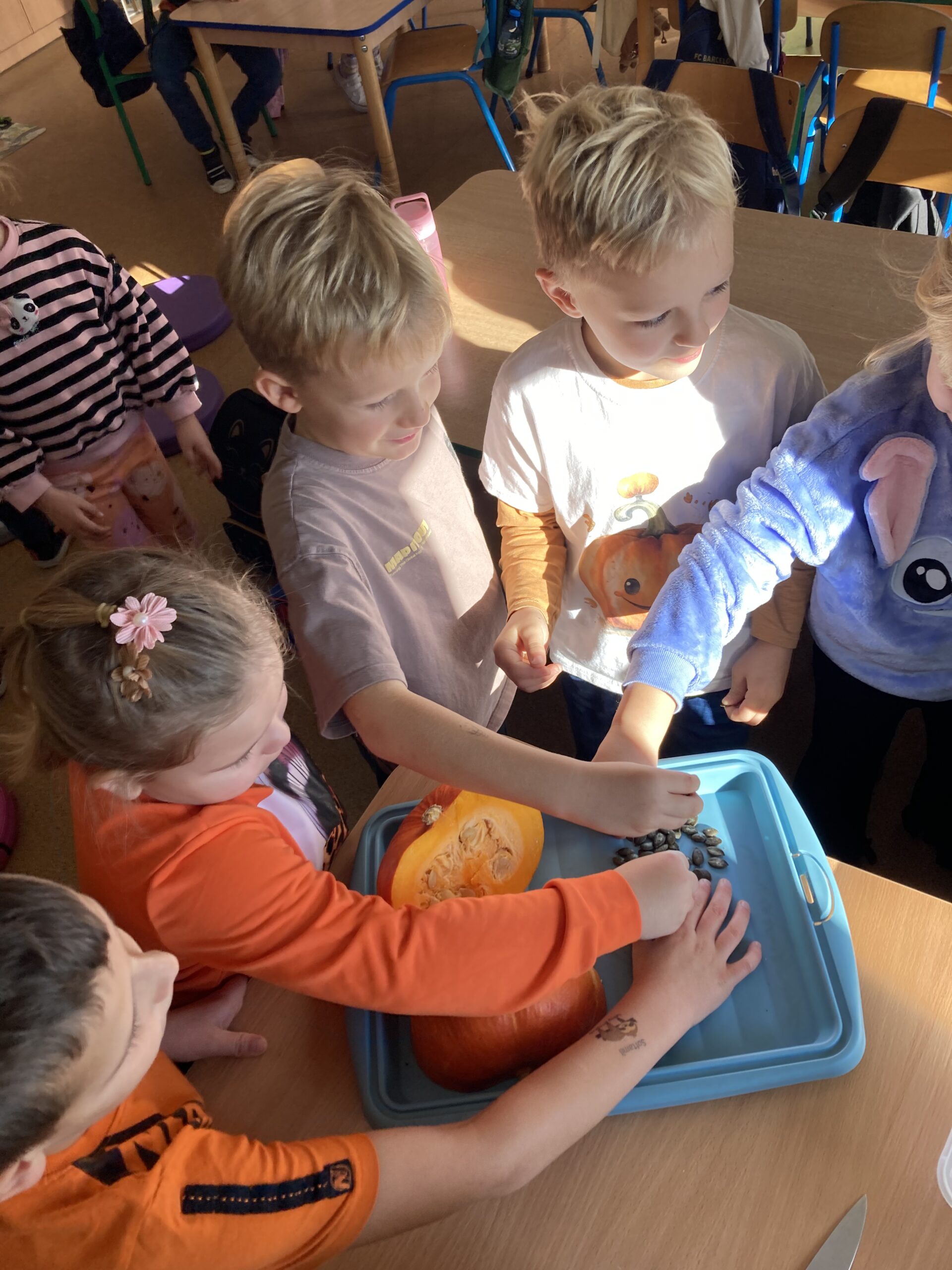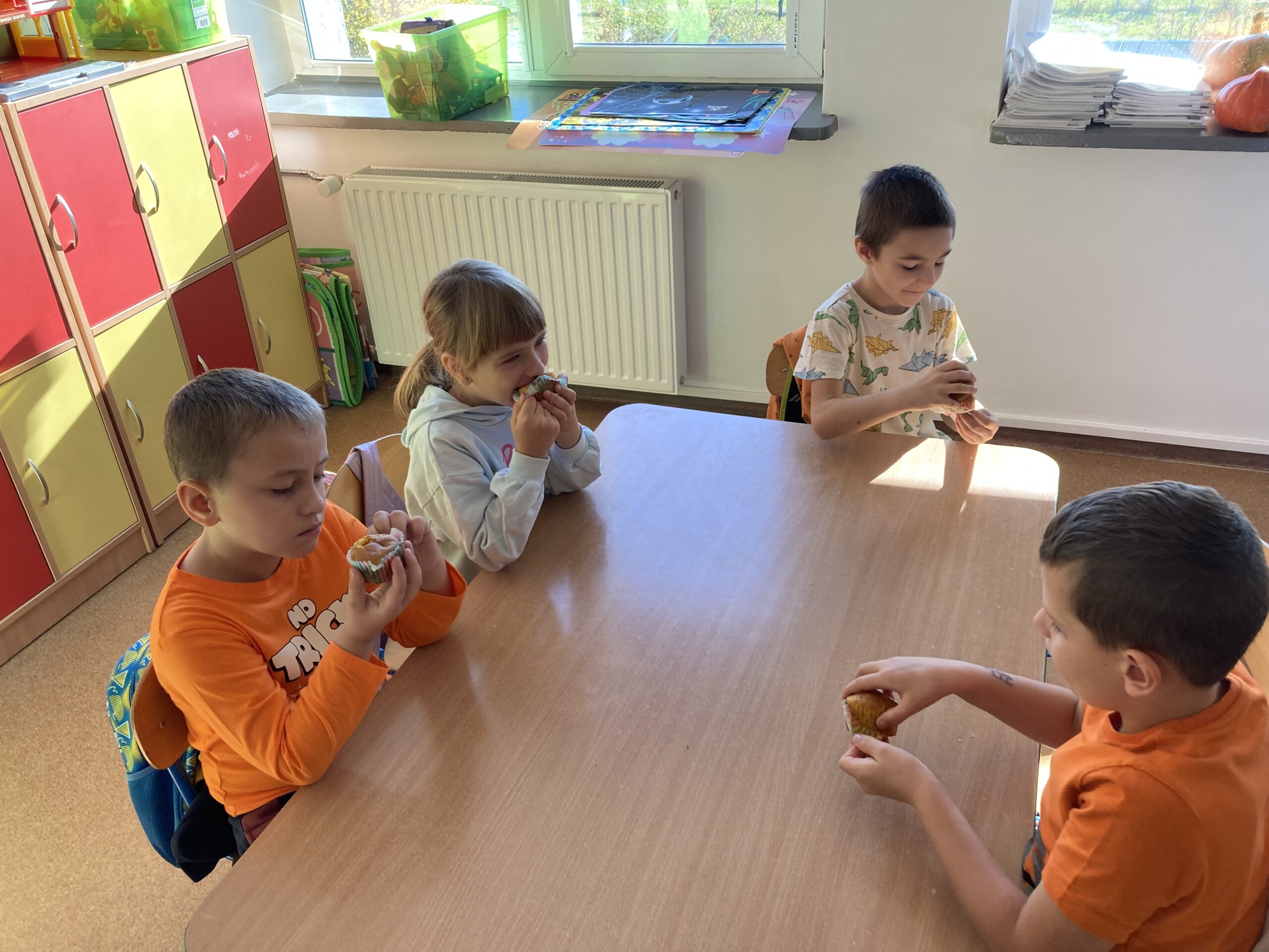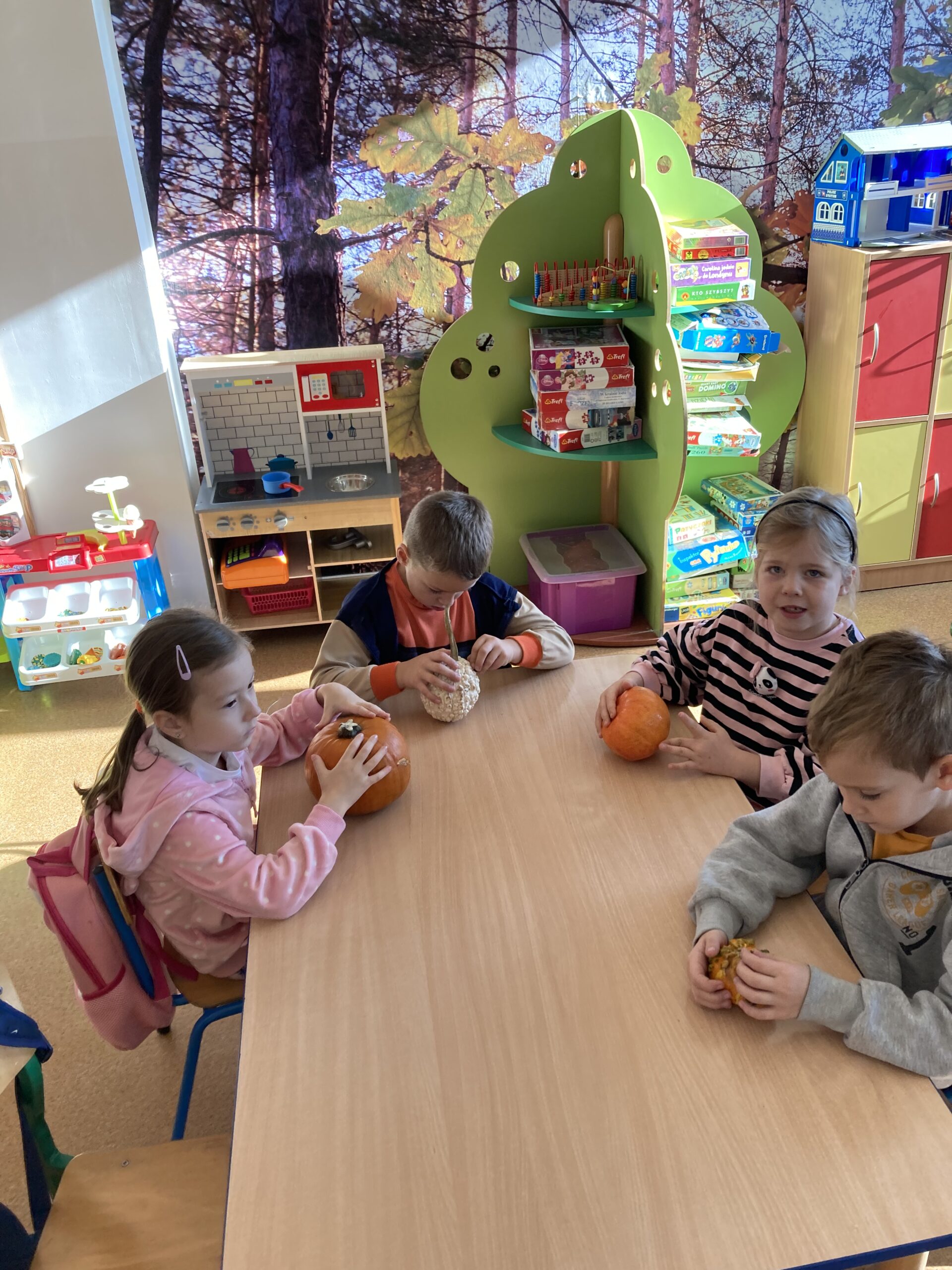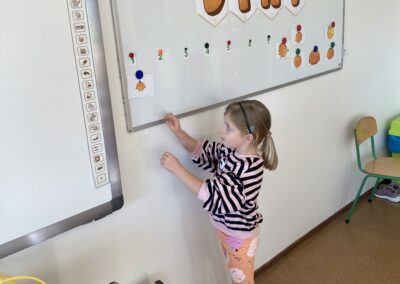 Nie zabrakło również zadań matematycznych i ruchowych inspirowanych dynią, które rozwijały spostrzegawczość, zręczność i kreatywność dzieci. Dodatkową atrakcją była degustacja pysznych dyniowych deserów oraz pestek – doskonała okazja do spróbowania zdrowych, sezonowych przysmaków.