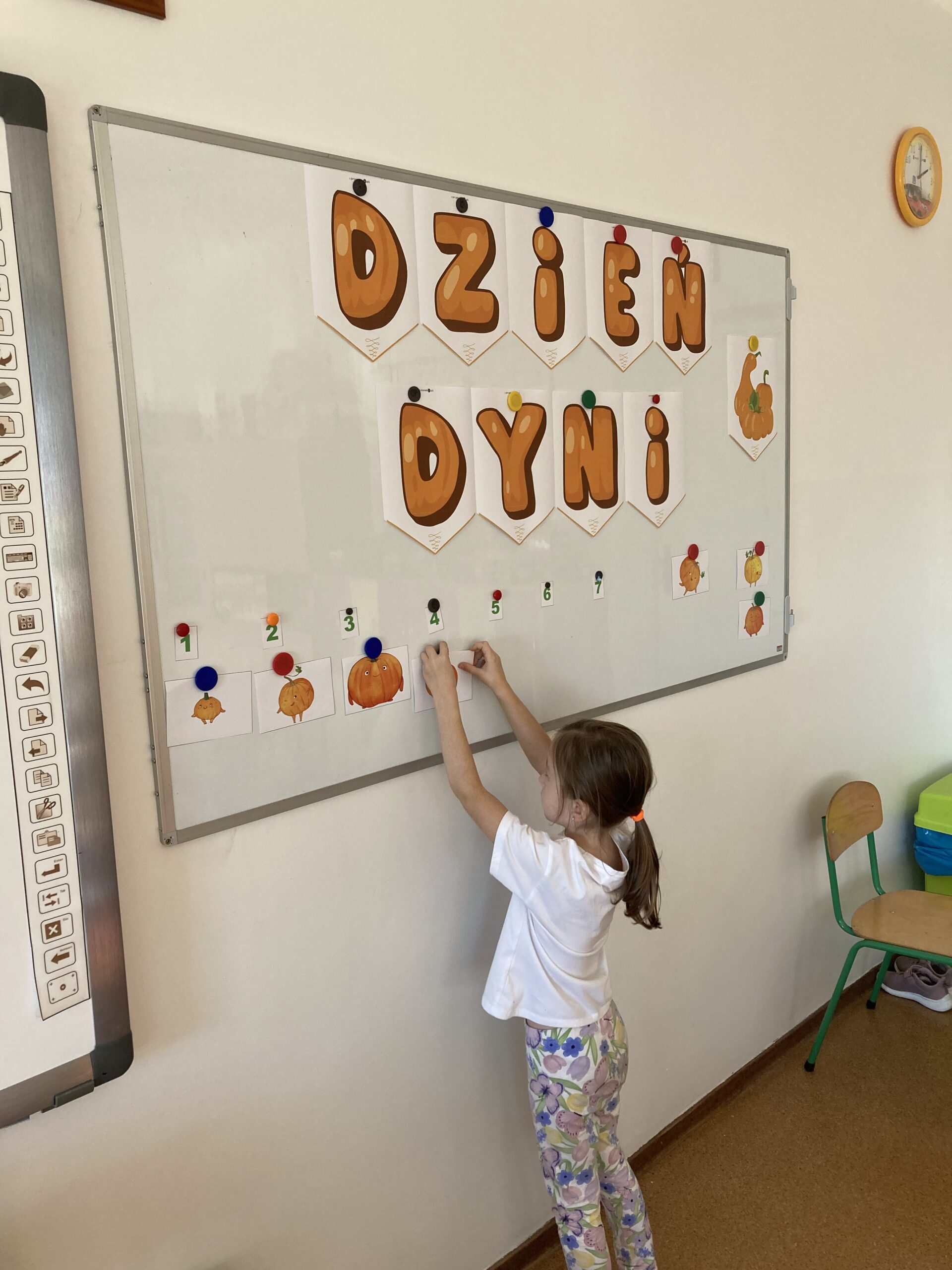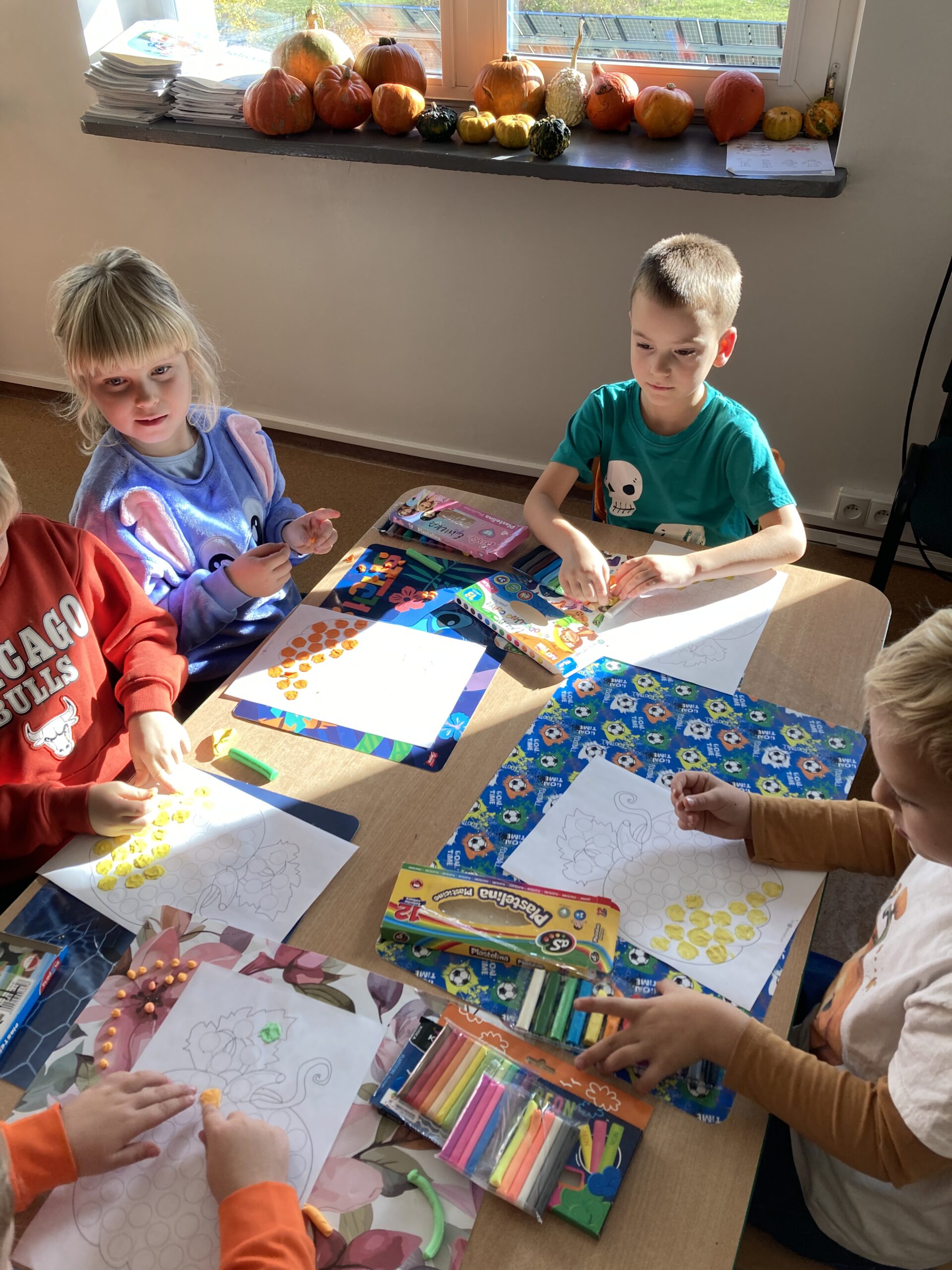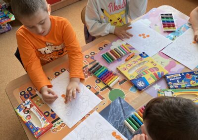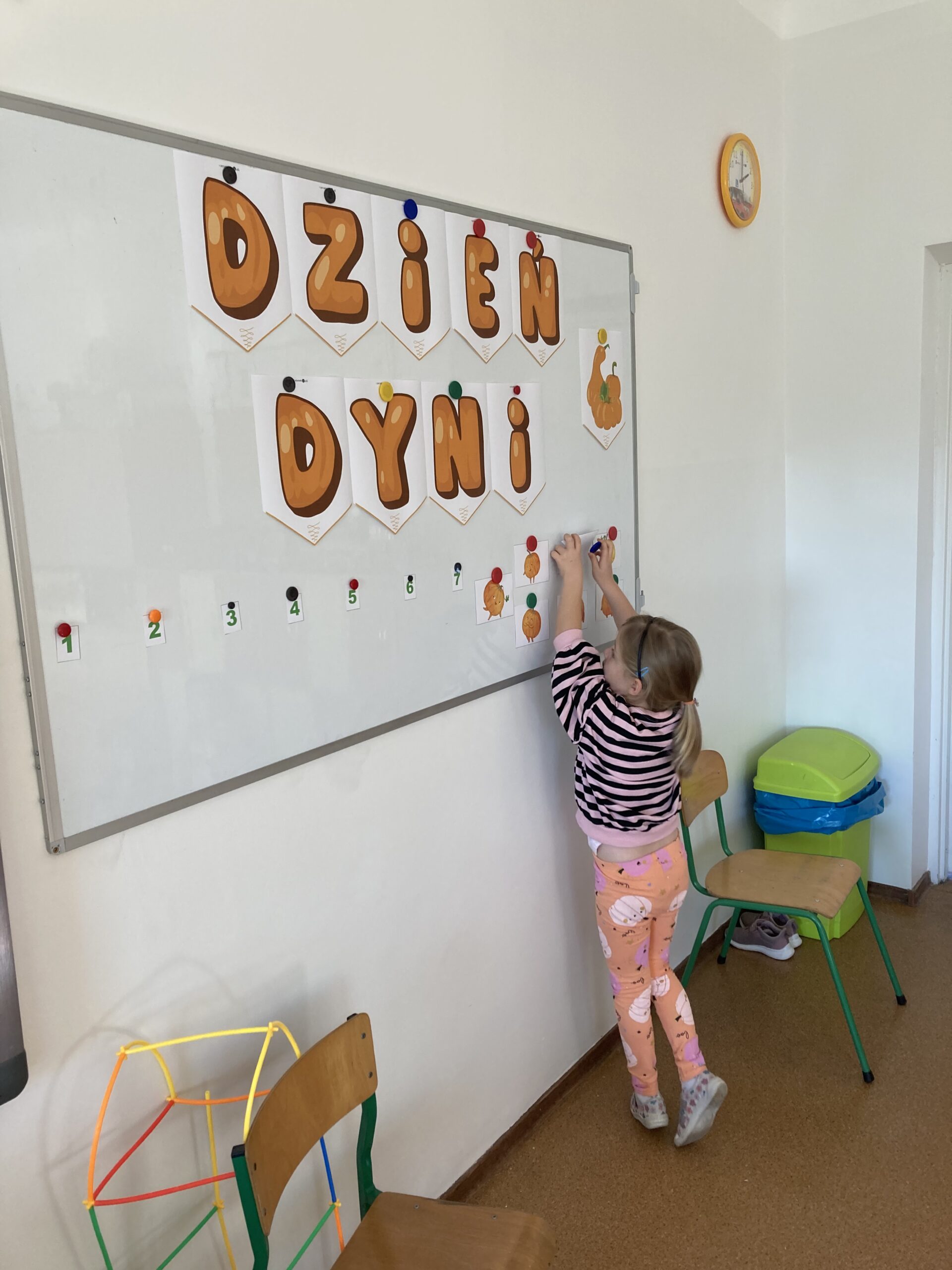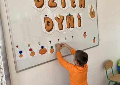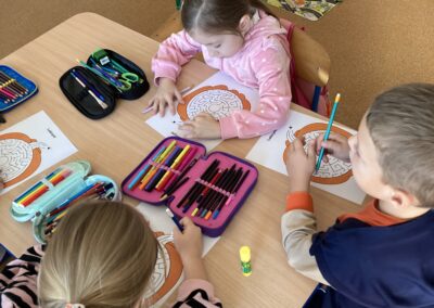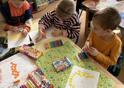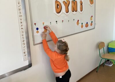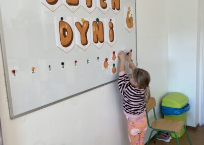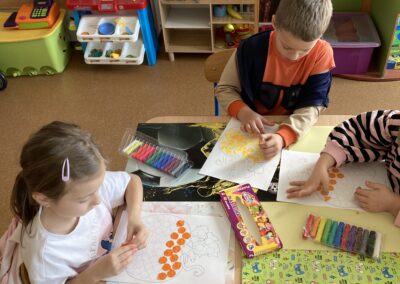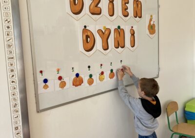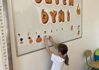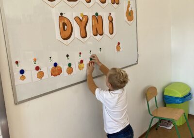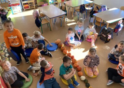 Podczas dnia przedszkolaki poznały wiele ciekawostek o dyni – dowiedziały się, skąd pochodzi, jakie ma zastosowania oraz dlaczego jest ważnym symbolem jesieni i Halloween. Z dużym zaangażowaniem tworzyły własne dyniowe labirynty, wyklejały dynie plasteliną oraz słuchały wiersza o tym niezwykłym warzywie, co dostarczyło im mnóstwo radości.