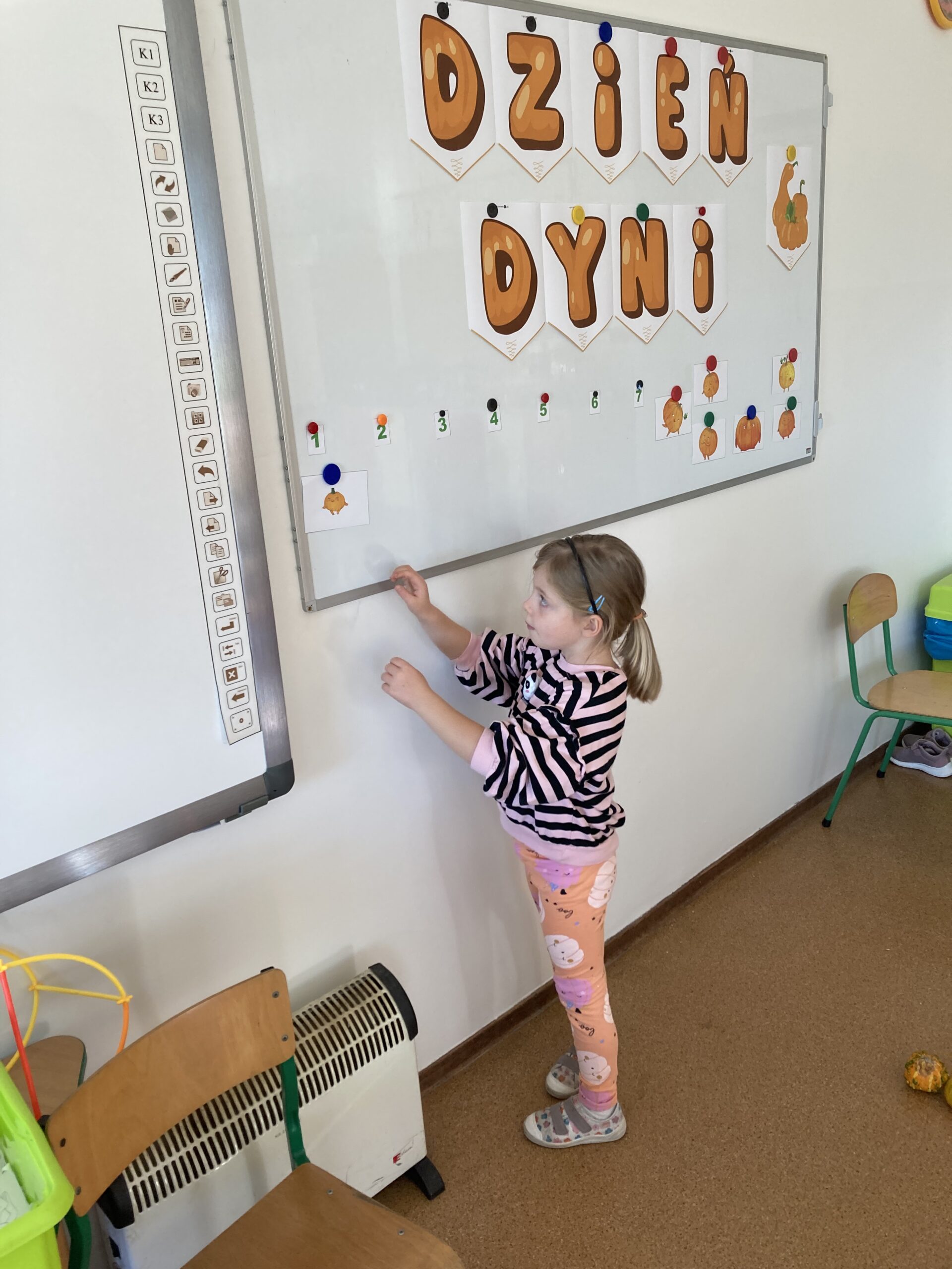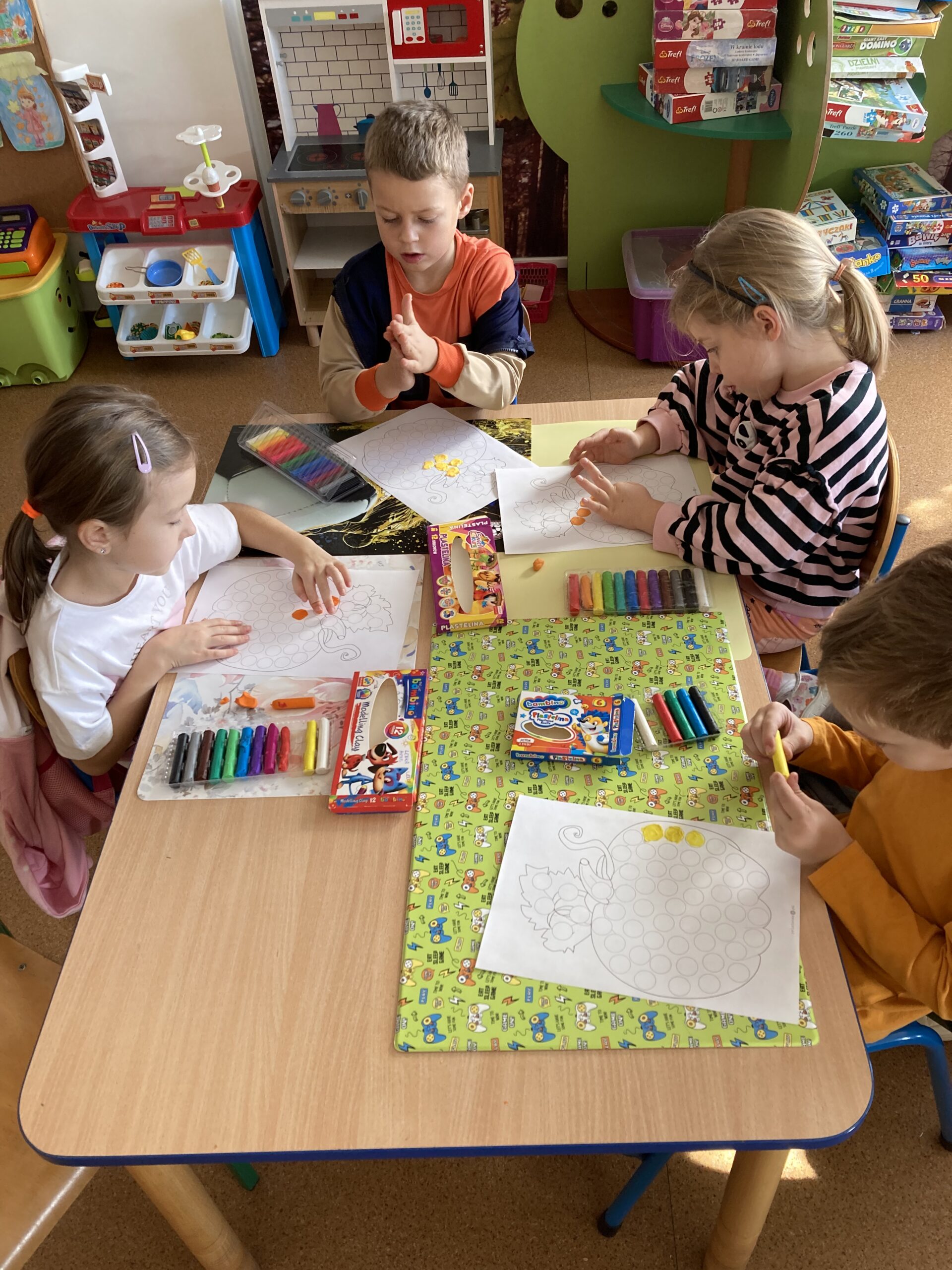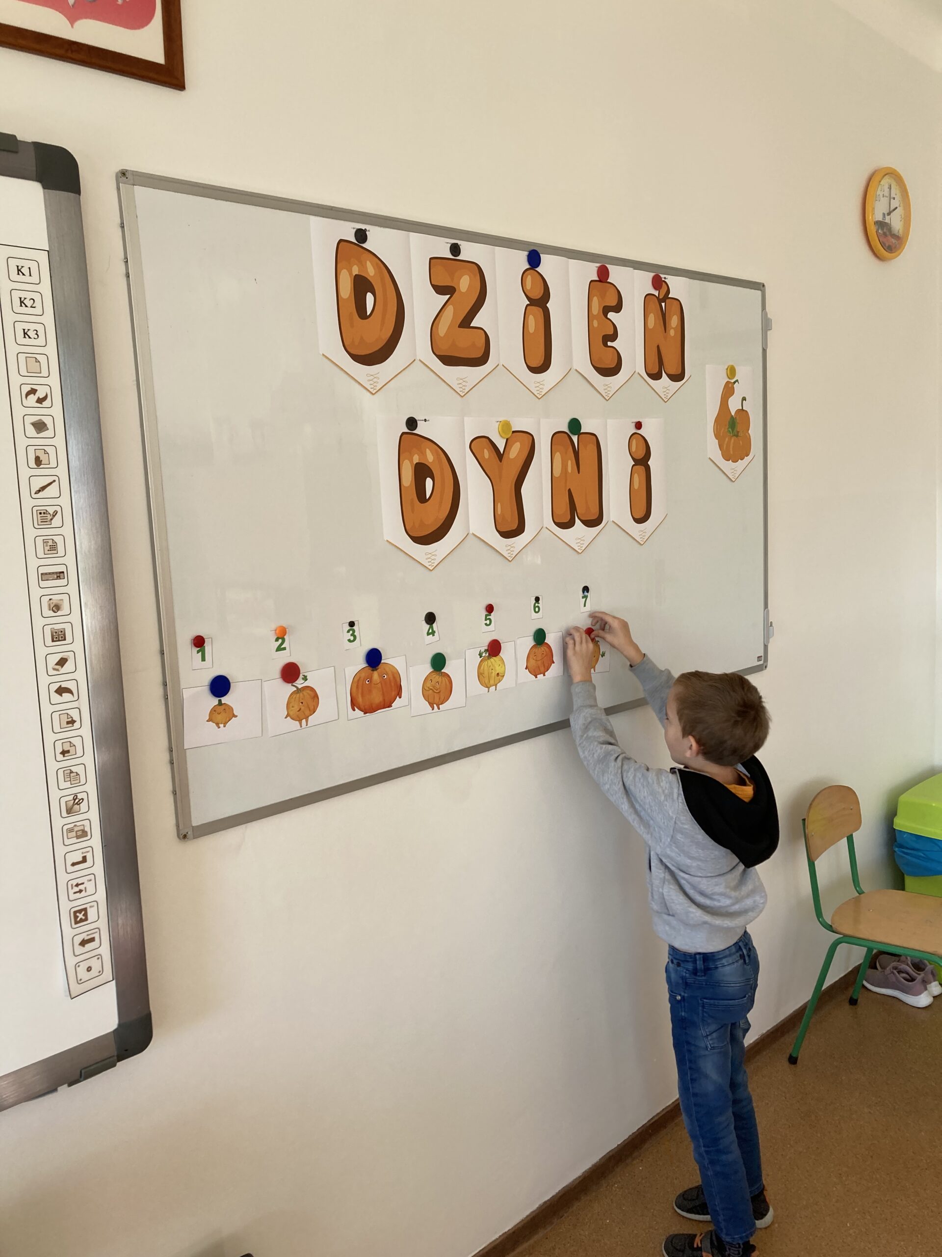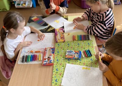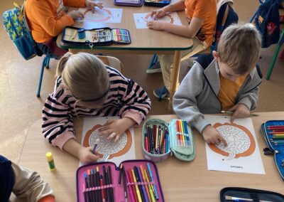 Podczas dnia przedszkolaki poznały wiele ciekawostek o dyni – dowiedziały się, skąd pochodzi, jakie ma zastosowania oraz dlaczego jest ważnym symbolem jesieni i Halloween. Z dużym zaangażowaniem tworzyły własne dyniowe labirynty, wyklejały dynie plasteliną oraz słuchały wiersza o tym niezwykłym warzywie, co dostarczyło im mnóstwo radości.