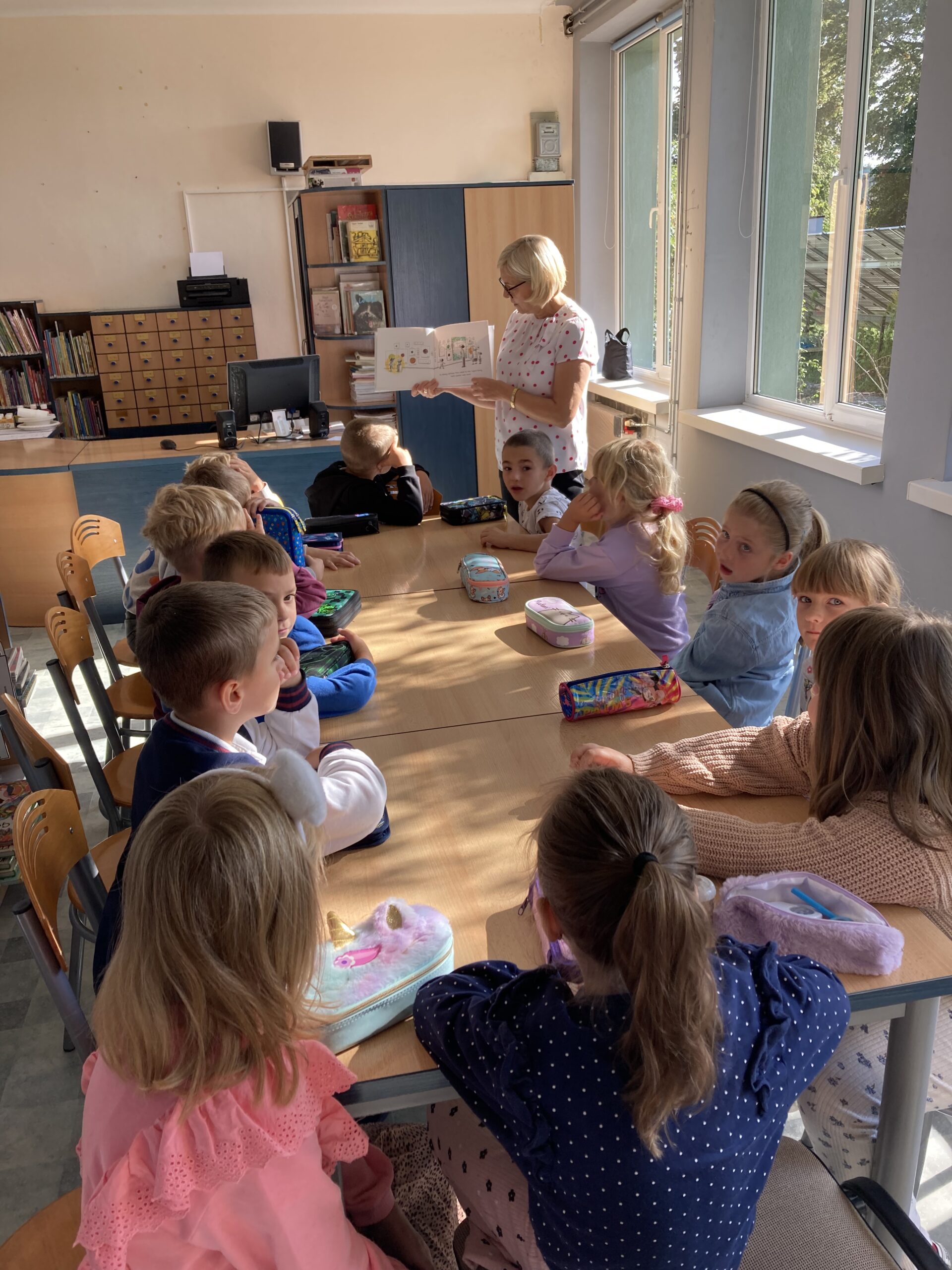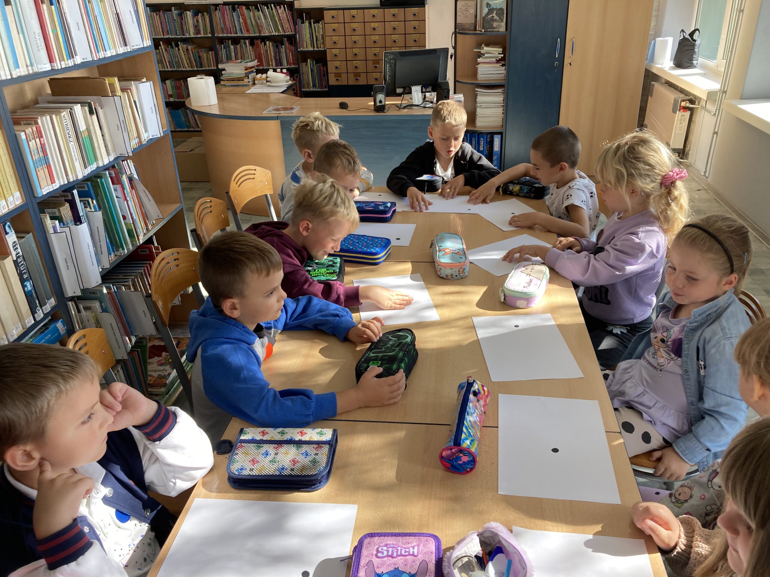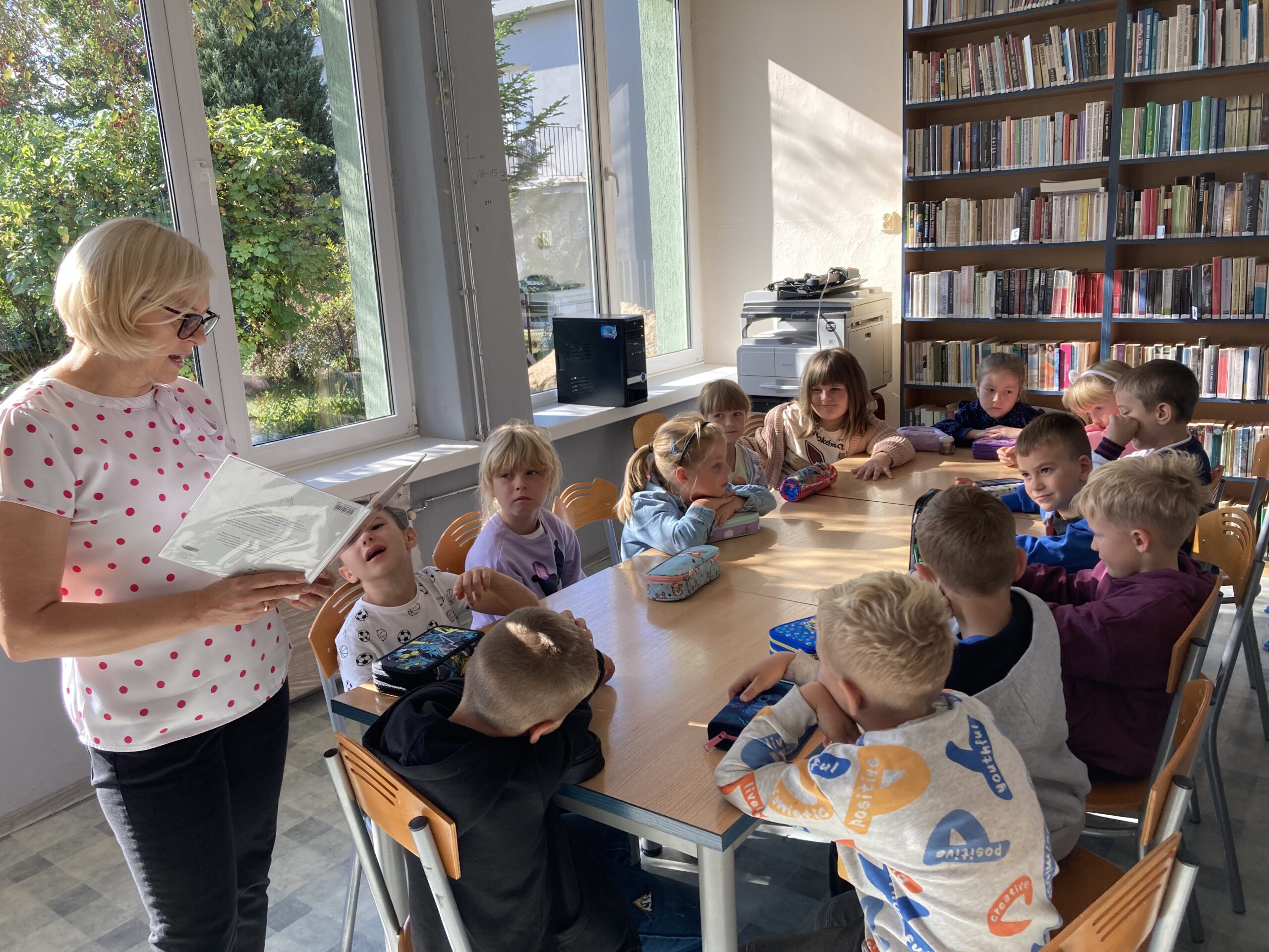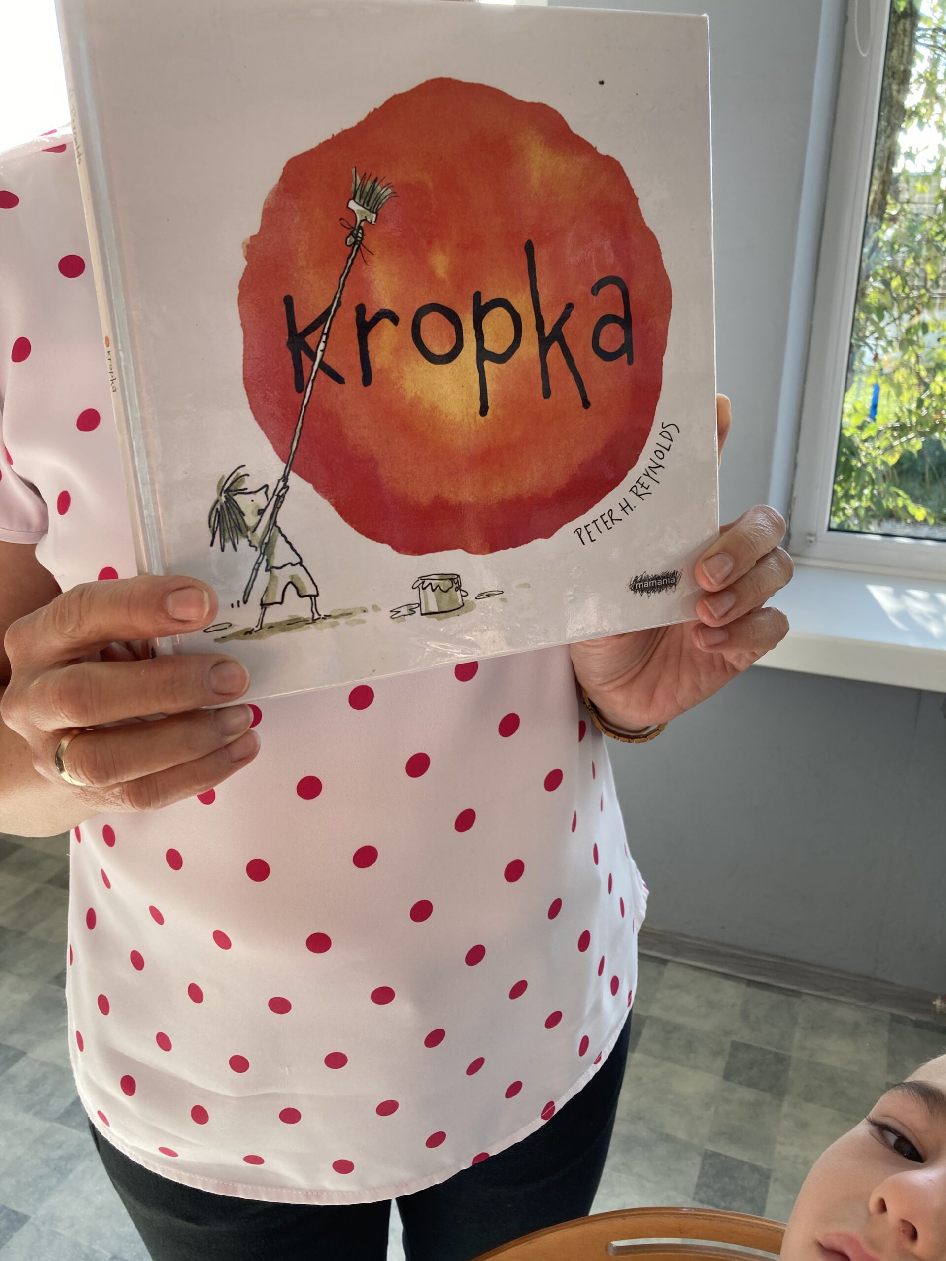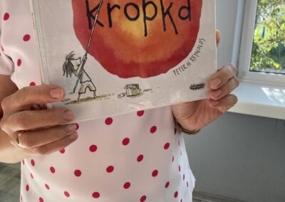 15 września dzieci z oddziału przedszkolnego obchodziły Dzień Kropki. Na początku pani Marzenka z biblioteki przeczytała dzieciom książkę Petera H. Reynoldsa pt. „Kropka”.