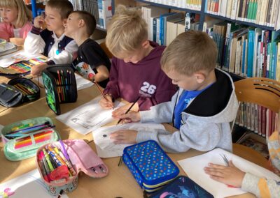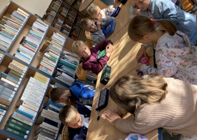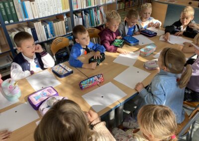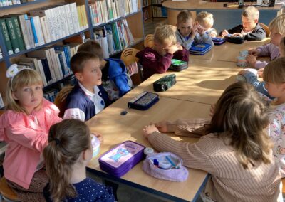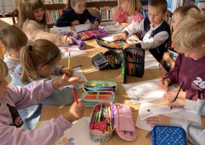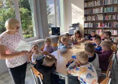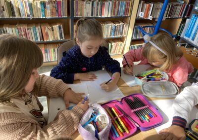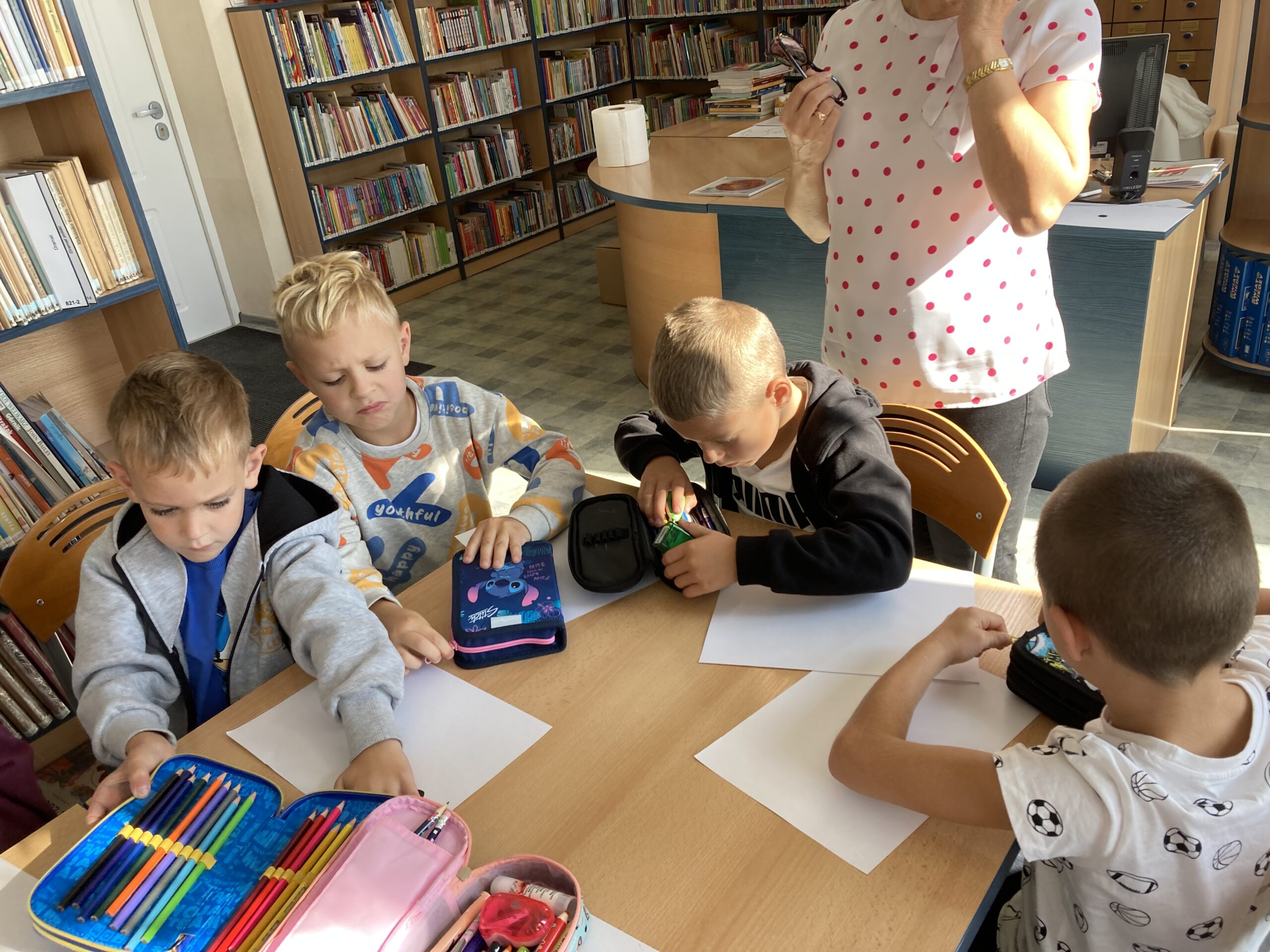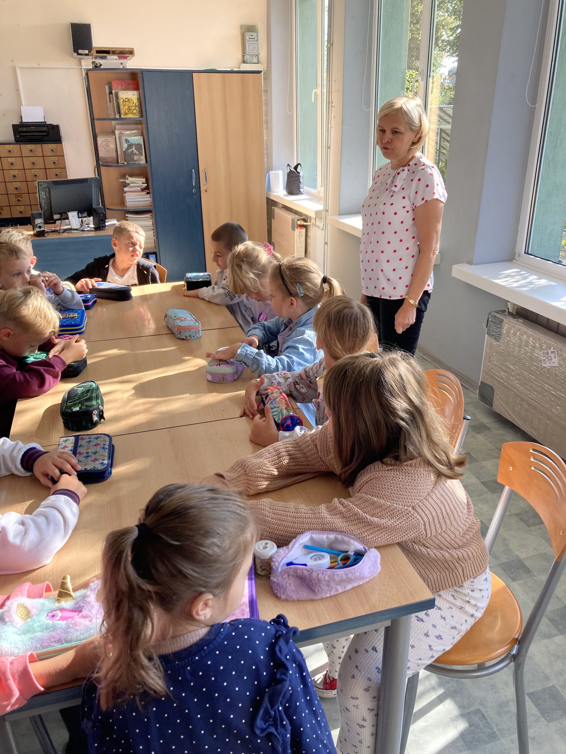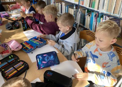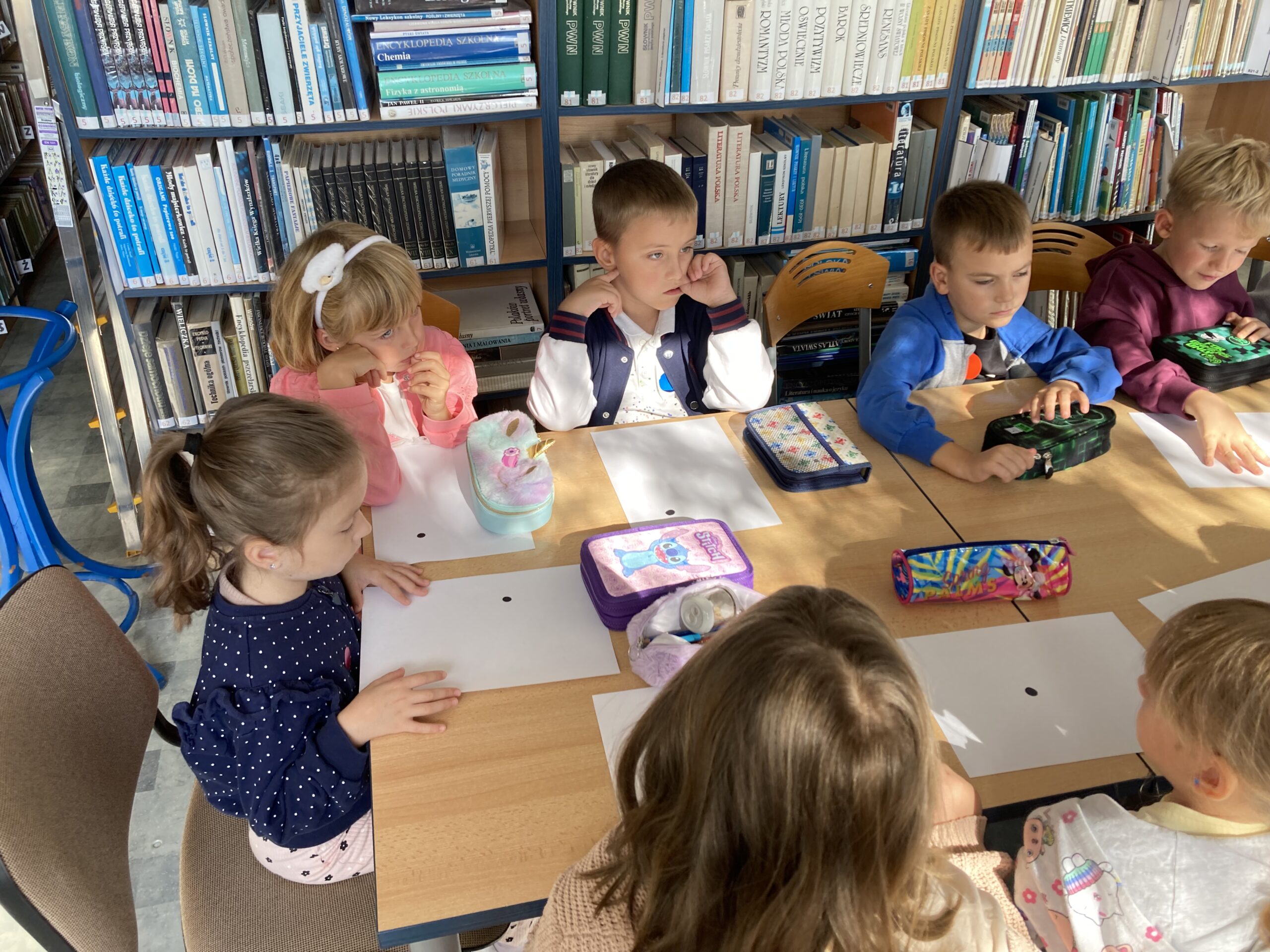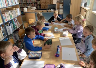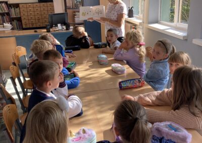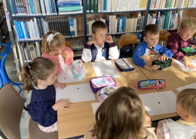 15 września dzieci z oddziału przedszkolnego obchodziły Dzień Kropki. Na początku pani Marzenka z biblioteki przeczytała dzieciom książkę Petera H. Reynoldsa pt. „Kropka”.