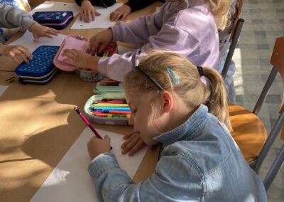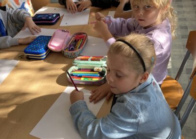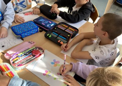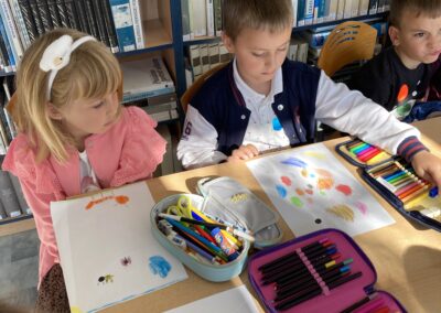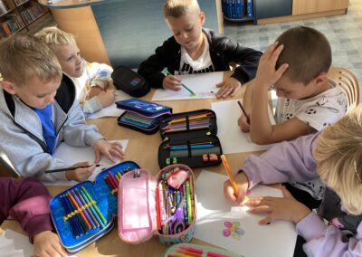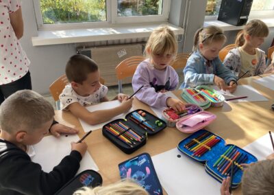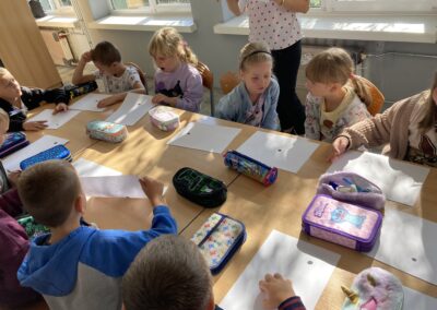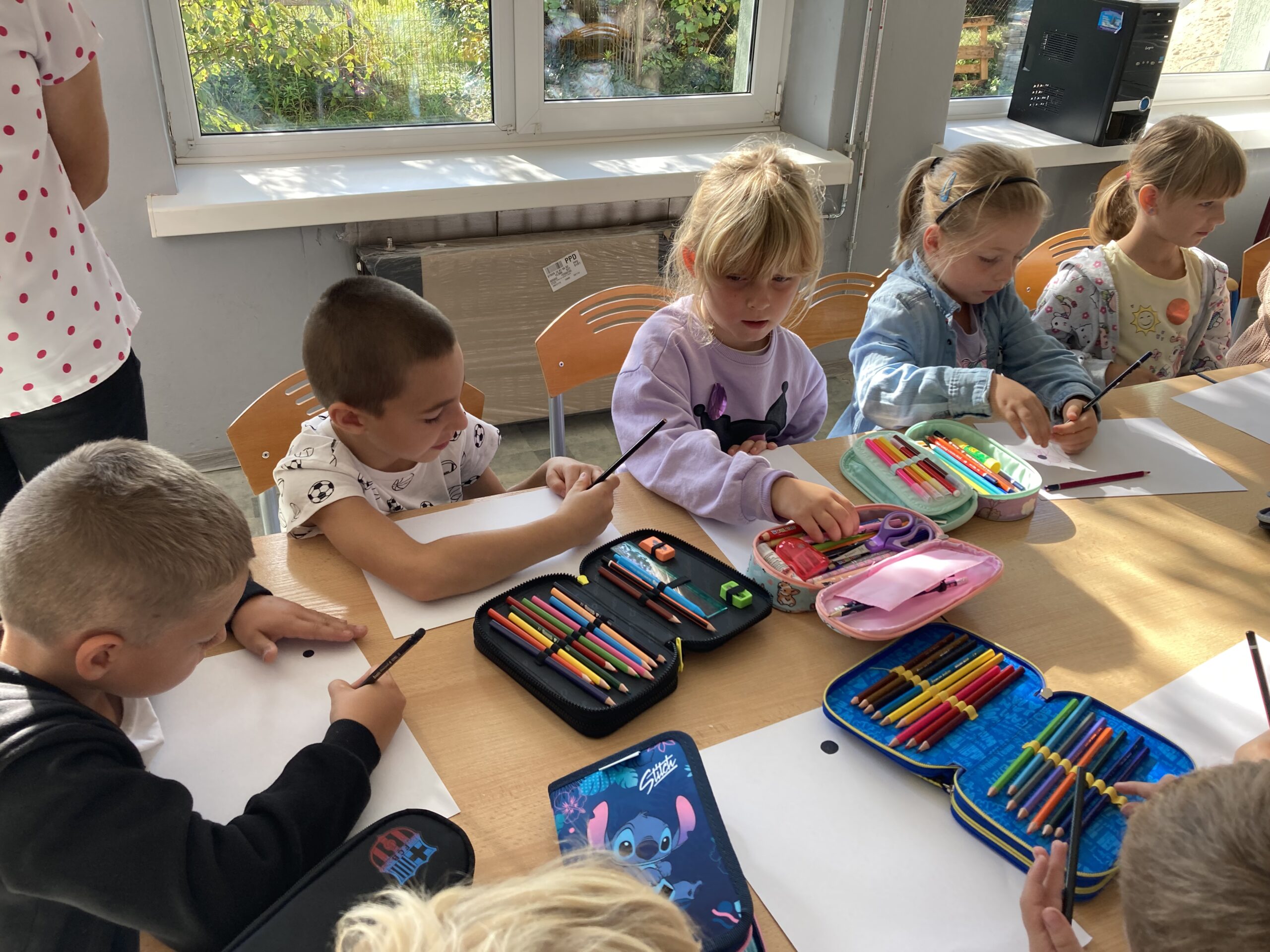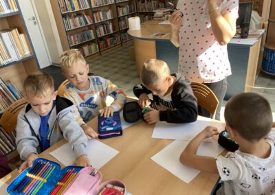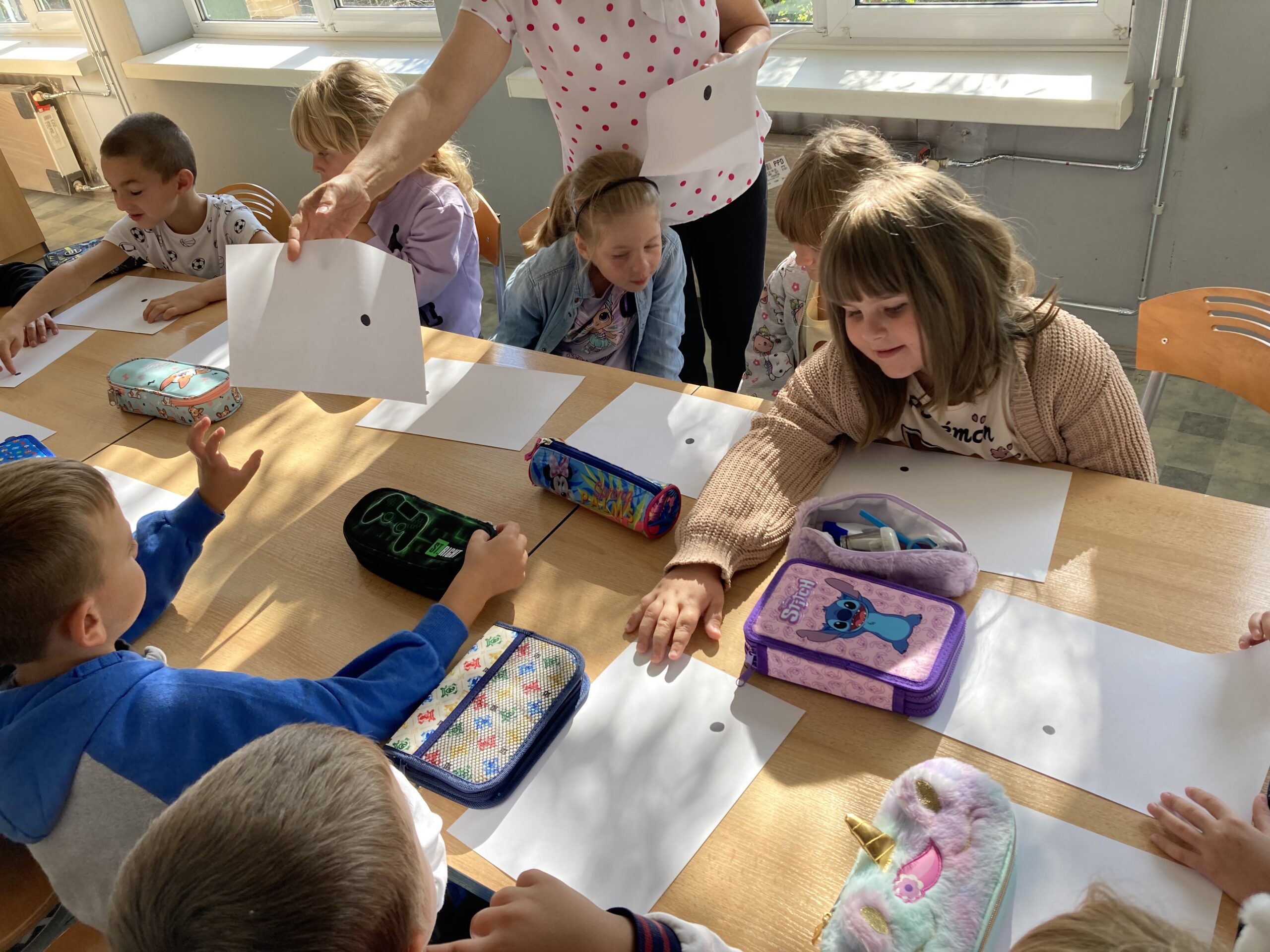Zainspirowane historią bohaterki, przedszkolaki dostały zadanie – z jednej, zwykłej kropki narysowanej na kartce papieru stworzyć własny obrazek. Pomysłów nie brakowało!