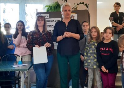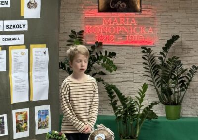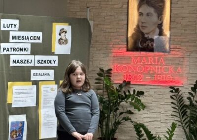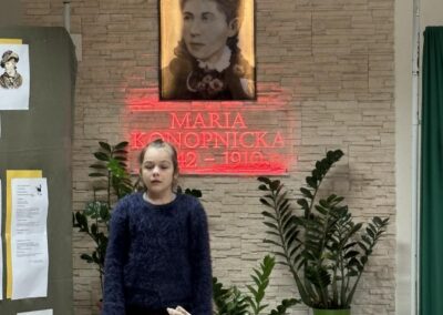 Klasy VII i VIII walczyły o ,,Puchar Wiedzy” w konkursie ,,Maria Konopnicka autorka noweli”. Puchar zdobyli uczniowie klasy VII. Wszyscy otrzymali drobne upominki, które ufundowała Rada Rodziców. Autorkami projektu edukacyjnego w tym roku były panie Magdalena Kardialik i Małgorzata Ostaszewska.