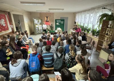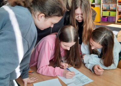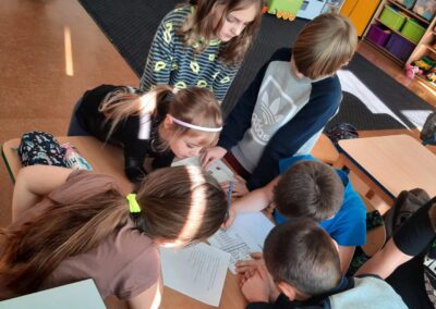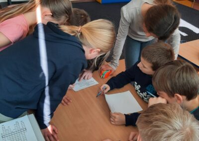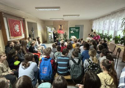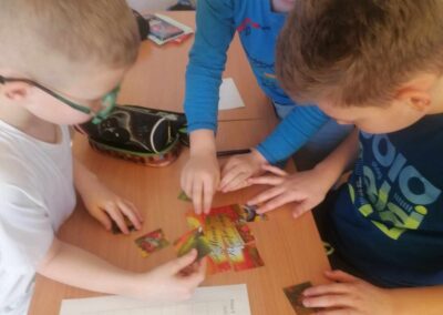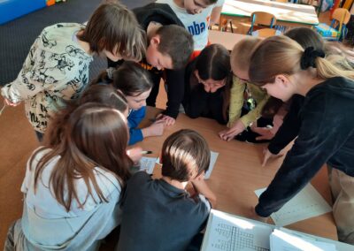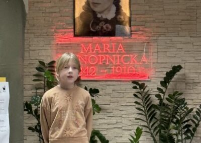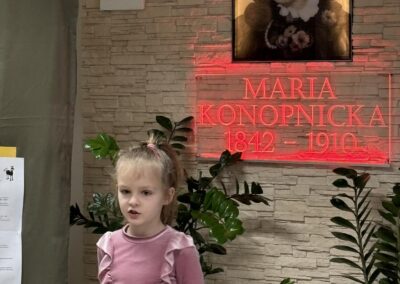 W pierwszym wspólnie z Marią Konopnicką spacerowaliśmy po naszej szkole. Uczniowie wykonywali zadania przygotowane przez wychowawców wszystkich klas. Czekały na nich zagadki, rebusy, puzzle, zadania matematyczne, polonistyczne i wiele innych.