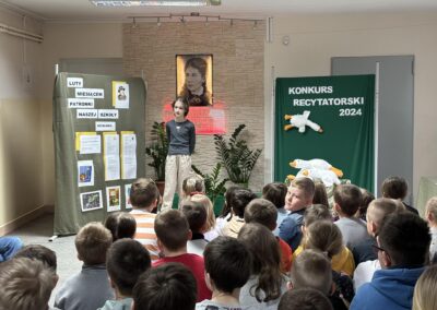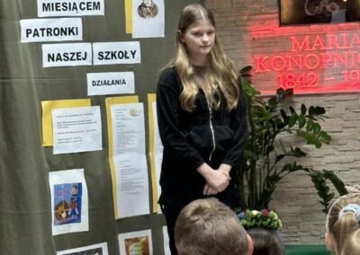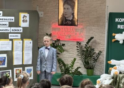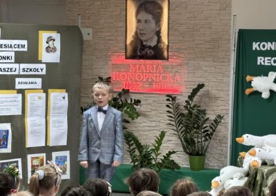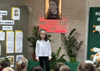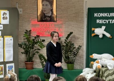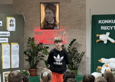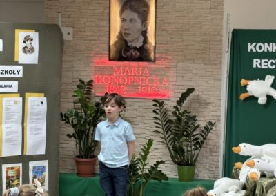 W drugim etapie chętni uczniowie zaprezentowali swoje zdolności recytatorskie w konkursie ,,Maria Konopnicka – przyjaciółka dzieci”.