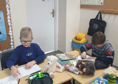 25 listopada obchodzony jest Dzień Pluszowego misia. Z tej okazji dzieci z klas 0-III przyniosły do szkoły swojego ulubionego pluszaka, który przyglądał się dzieciom podczas zajęć. Podczas pobytu w szkole dzieci spotkały się również z domowym jeżem, jeżem pigmejskim o ślicznym imieniu Duduś. Pani Agata Sierajewska, właścicielka jeża opowiedziała dzieciom o zwyczajach jeża, jego przysmakach i sposobie w jaki się broni przed drapieżnikiem lub innym niebezpieczeństwem.