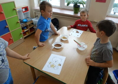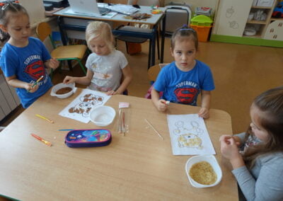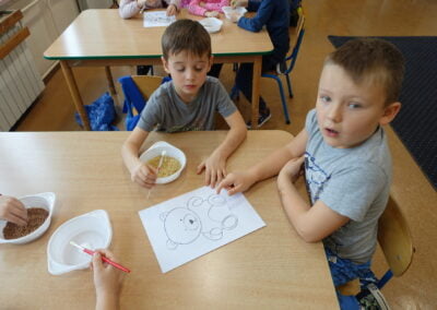 Na zakończenie tego nietypowego dnia, dzieci wykonały prace plastyczną Misia z kaszy i ryżu.