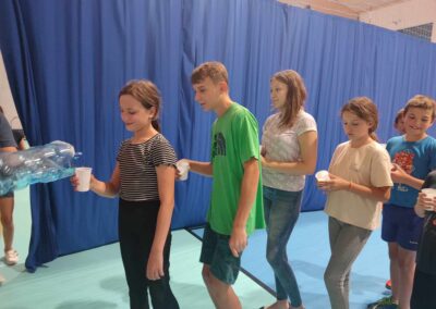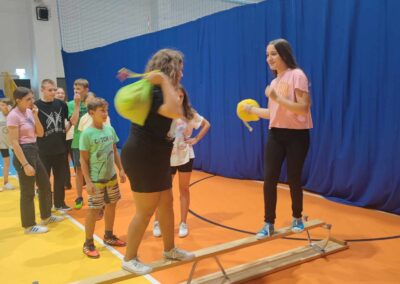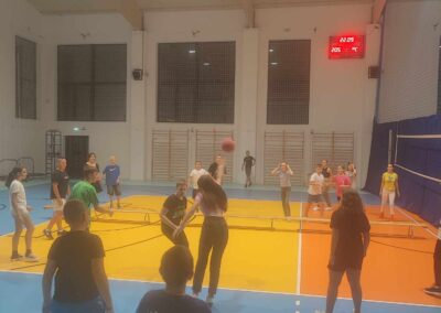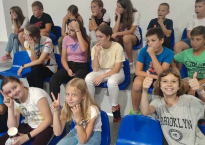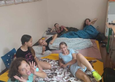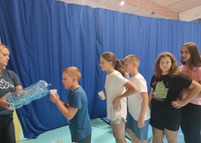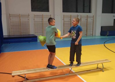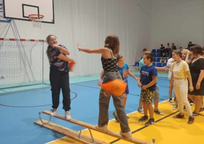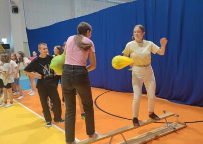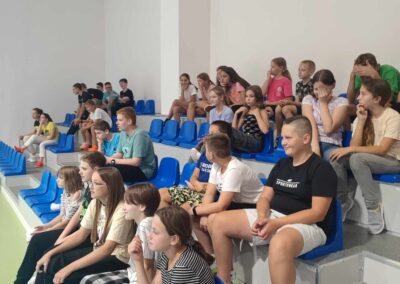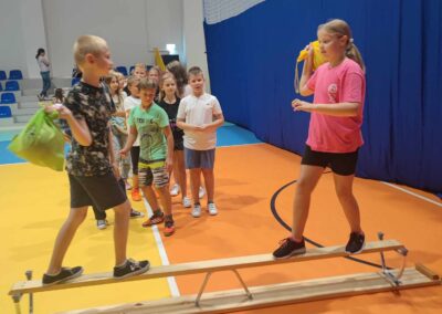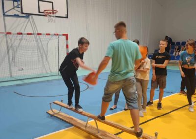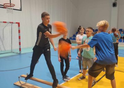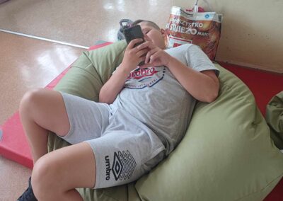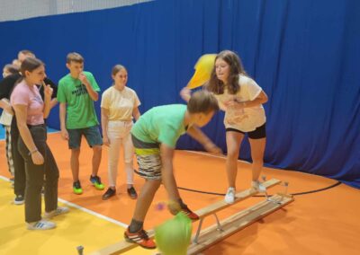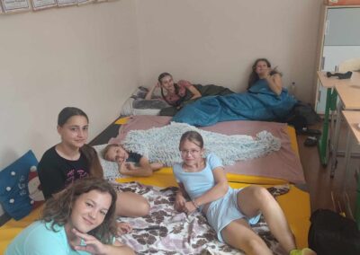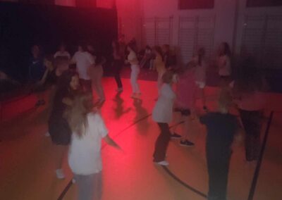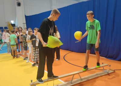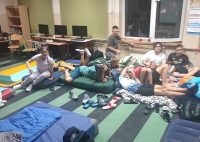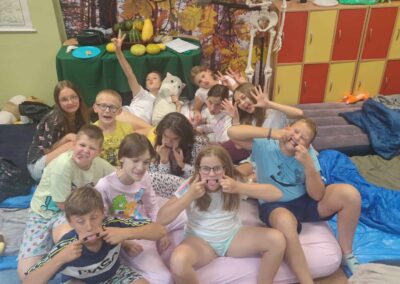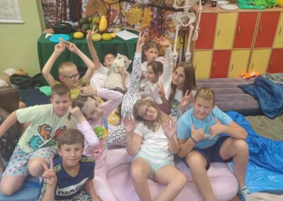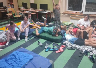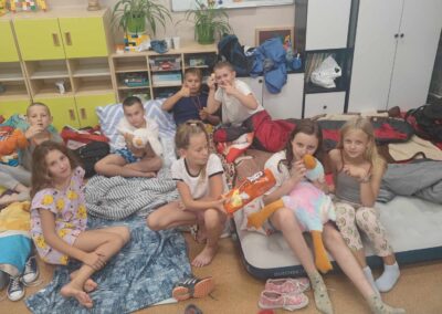 Uczniowie rywalizowali na hali sportowej podczas gier i zabaw, potem zjedli pyszną pizzę. Bawili się na dyskotece. W rozłożonych obozach obejrzeli seans filmowy i poszli spać. Rano zjedli wspólne śniadanie. Wszyscy świetnie się bawili.