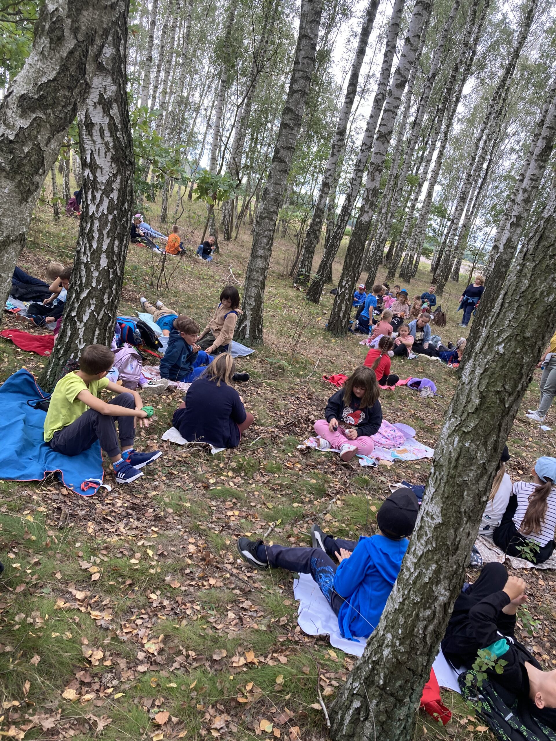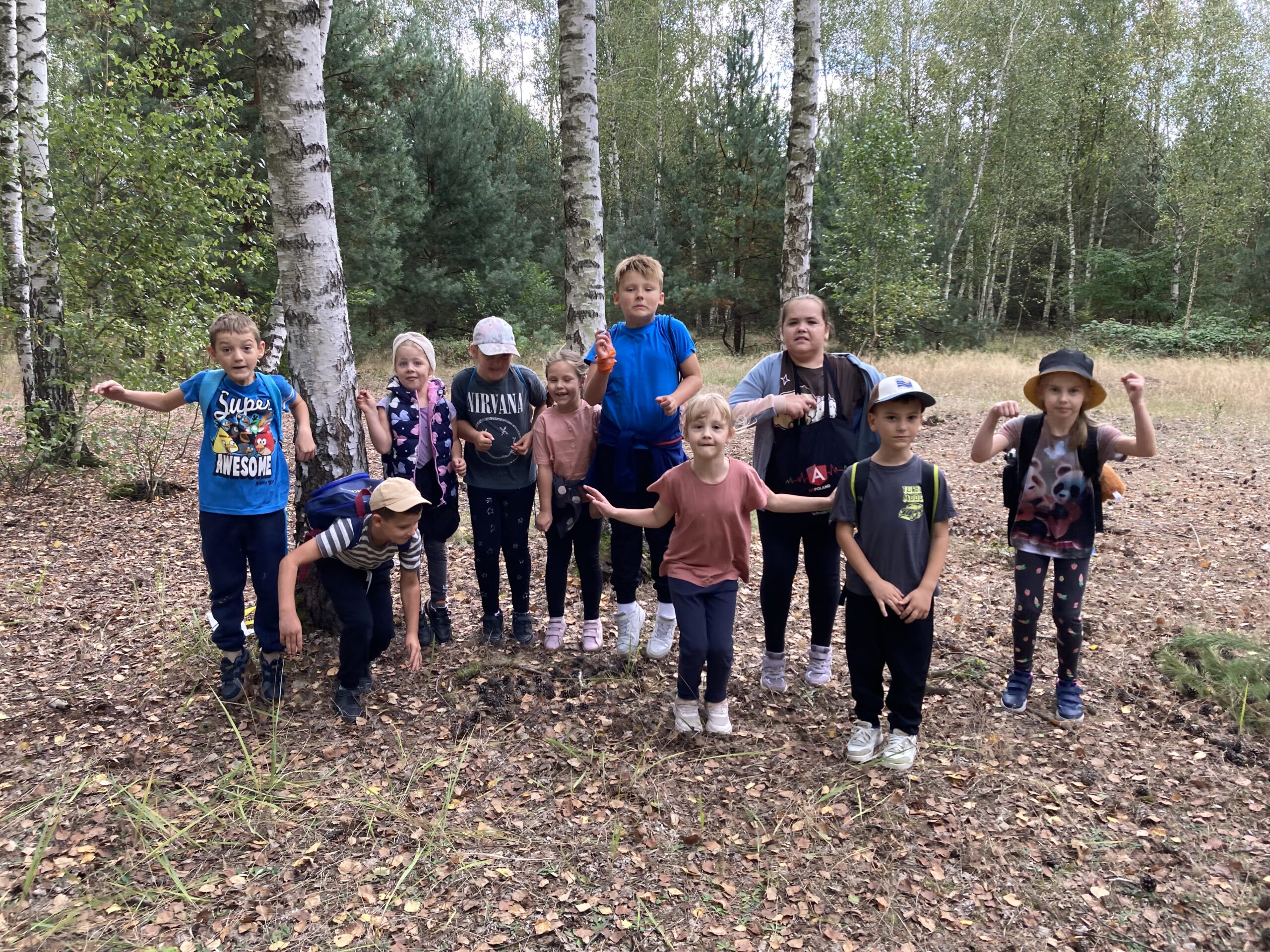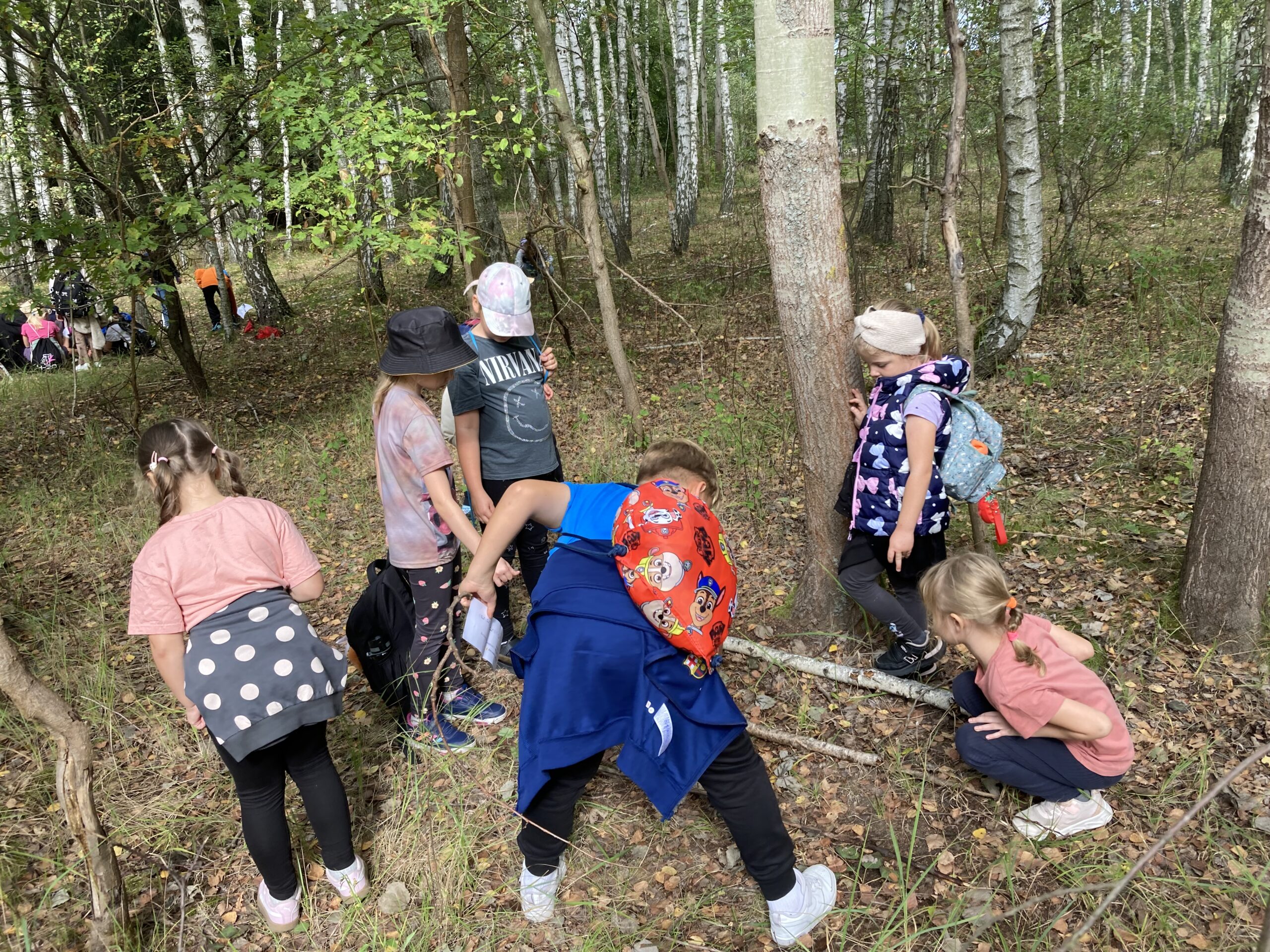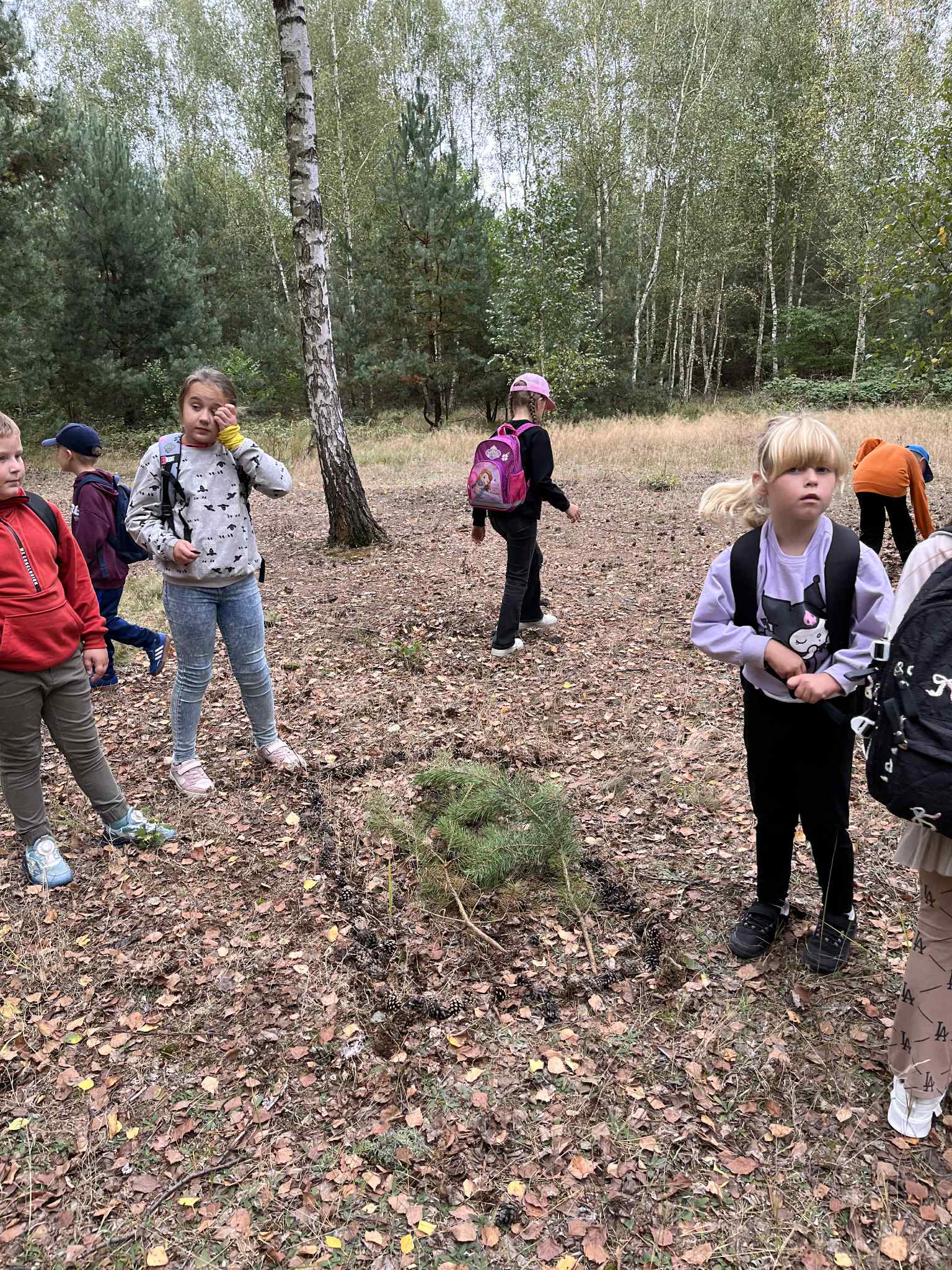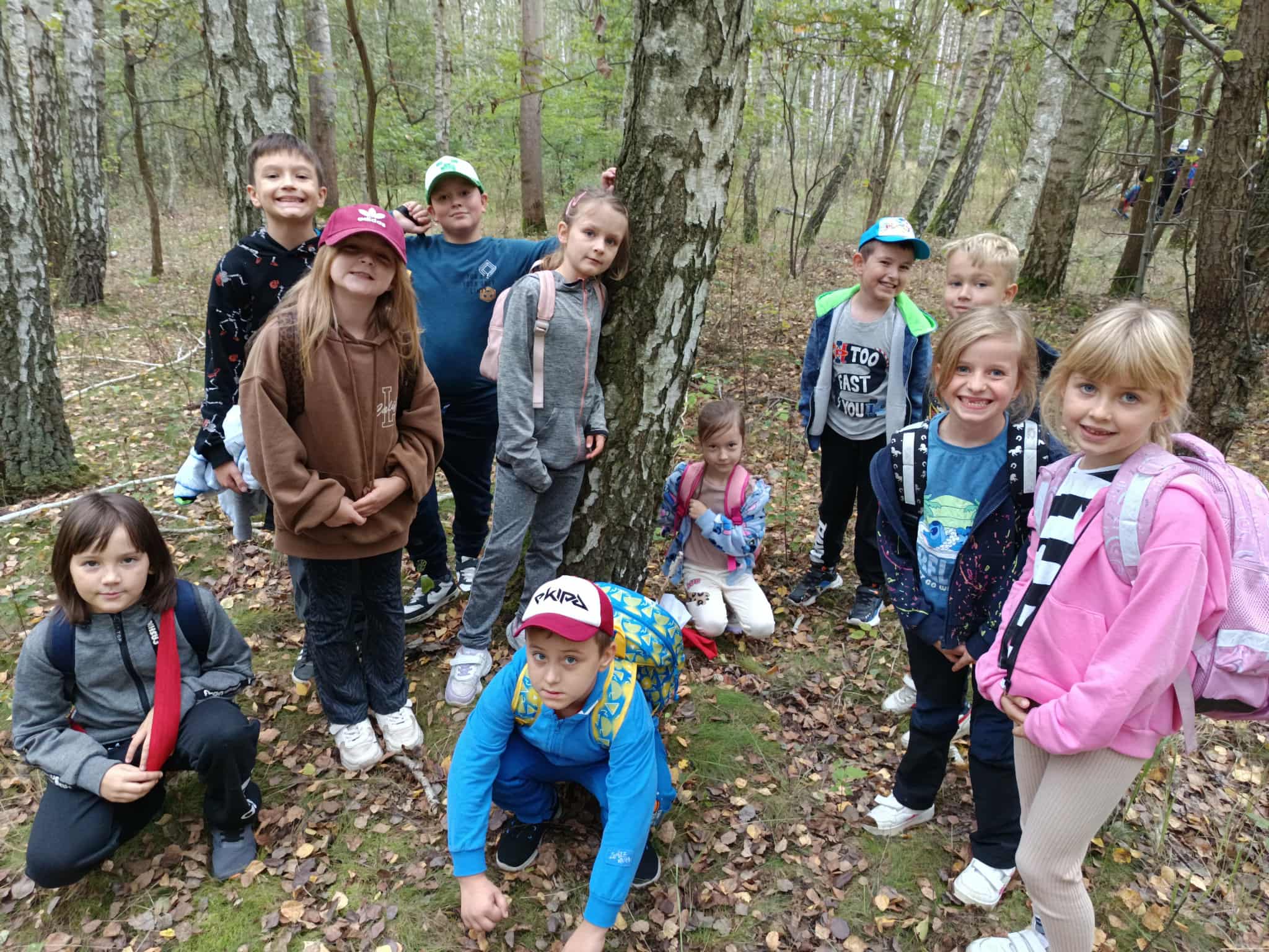 19 września uczniowie klas 0–III wybrali się do lasu, aby poznać go wszystkimi zmysłami w ramach ogólnopolskiej akcji „Sprzątanie Świata”. Choć dzieci są jeszcze za małe, by samodzielnie sprzątać, z entuzjazmem uczyły się uważności i szacunku do przyrody. Słuchały śpiewu ptaków, wąchały zapach lasu, dotykały kory drzew, wsłuchiwały się w „leśną muzykę”, a nawet tworzyły własne „leśne perfumy” i „obrazy z liści”.