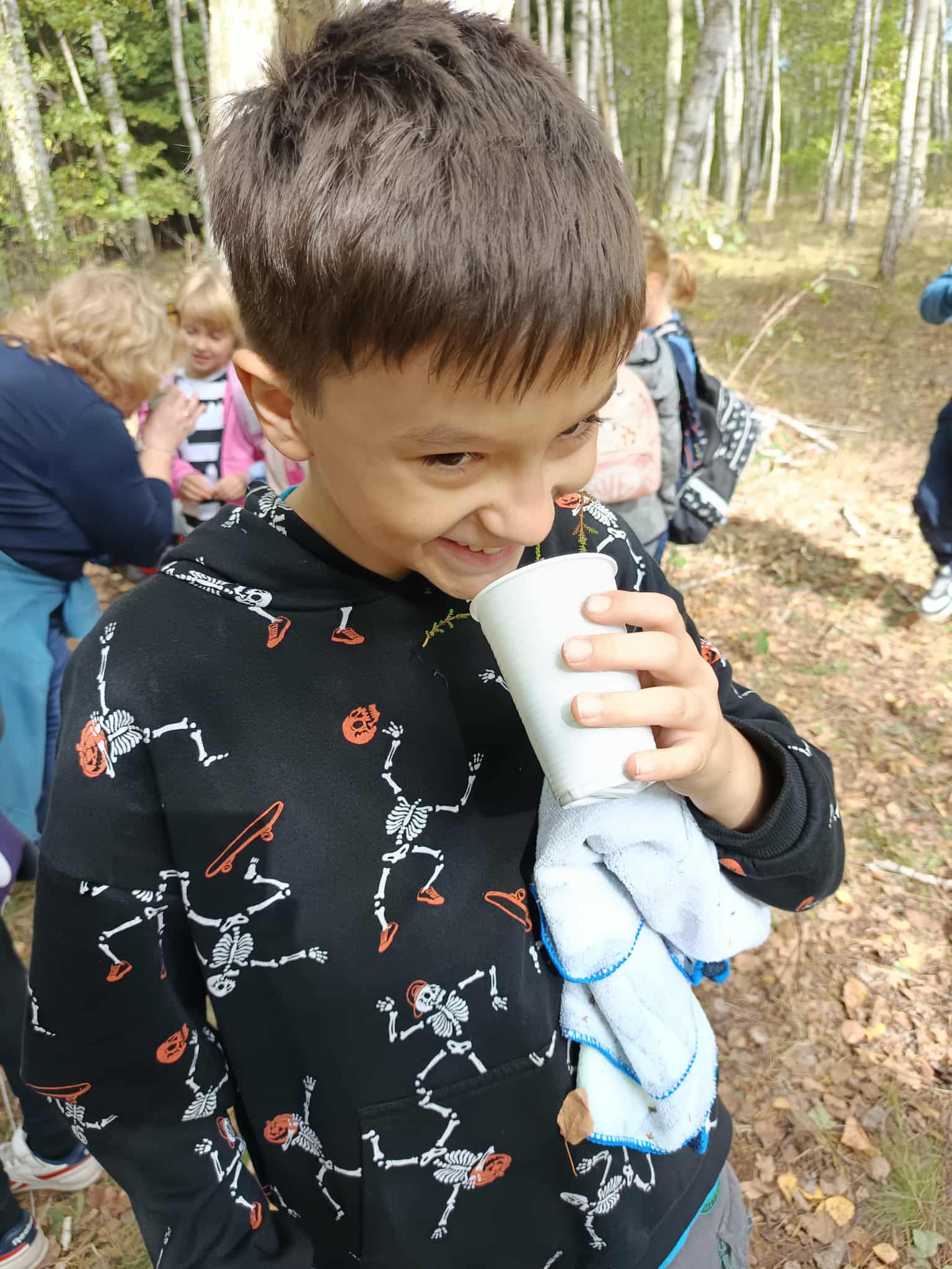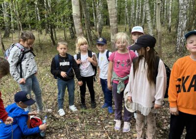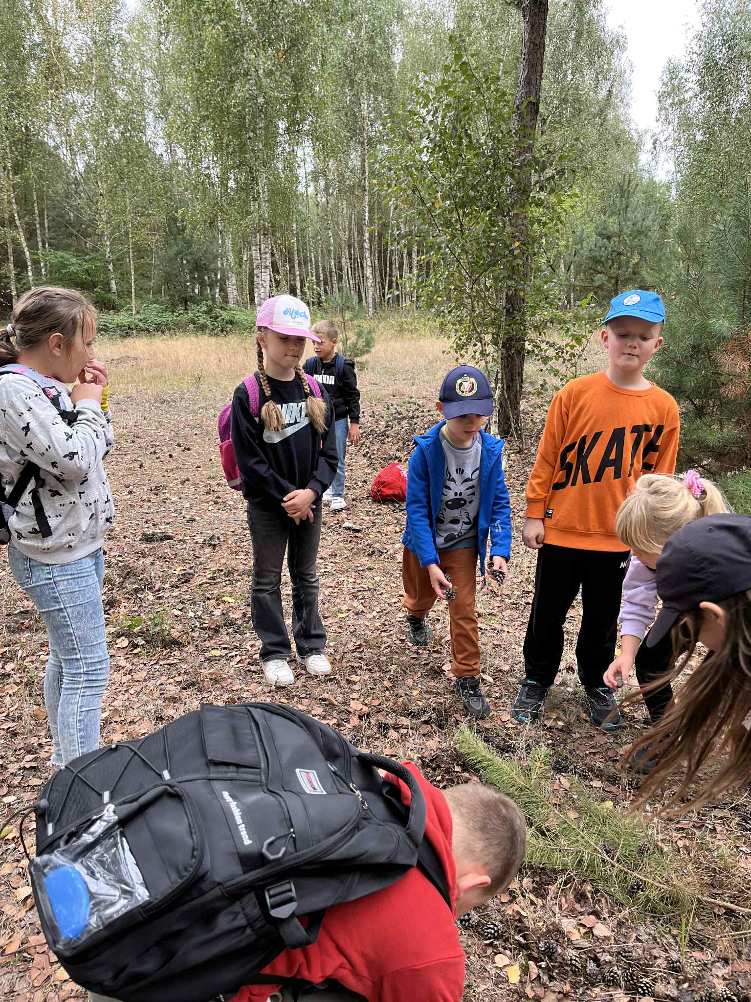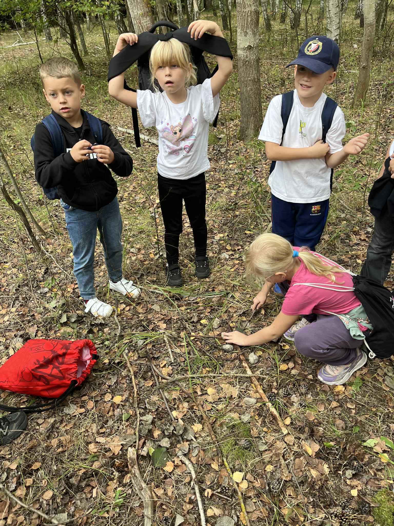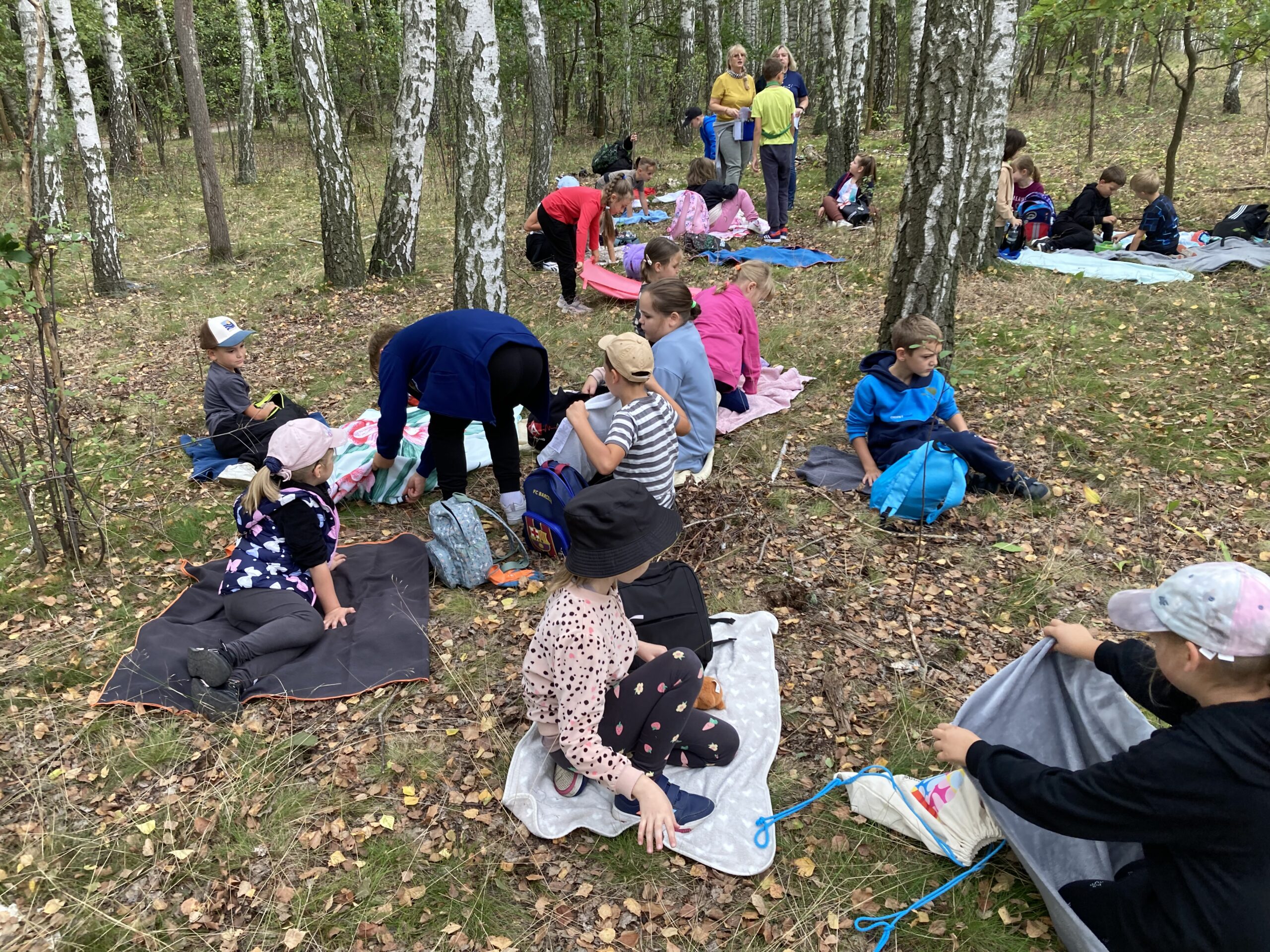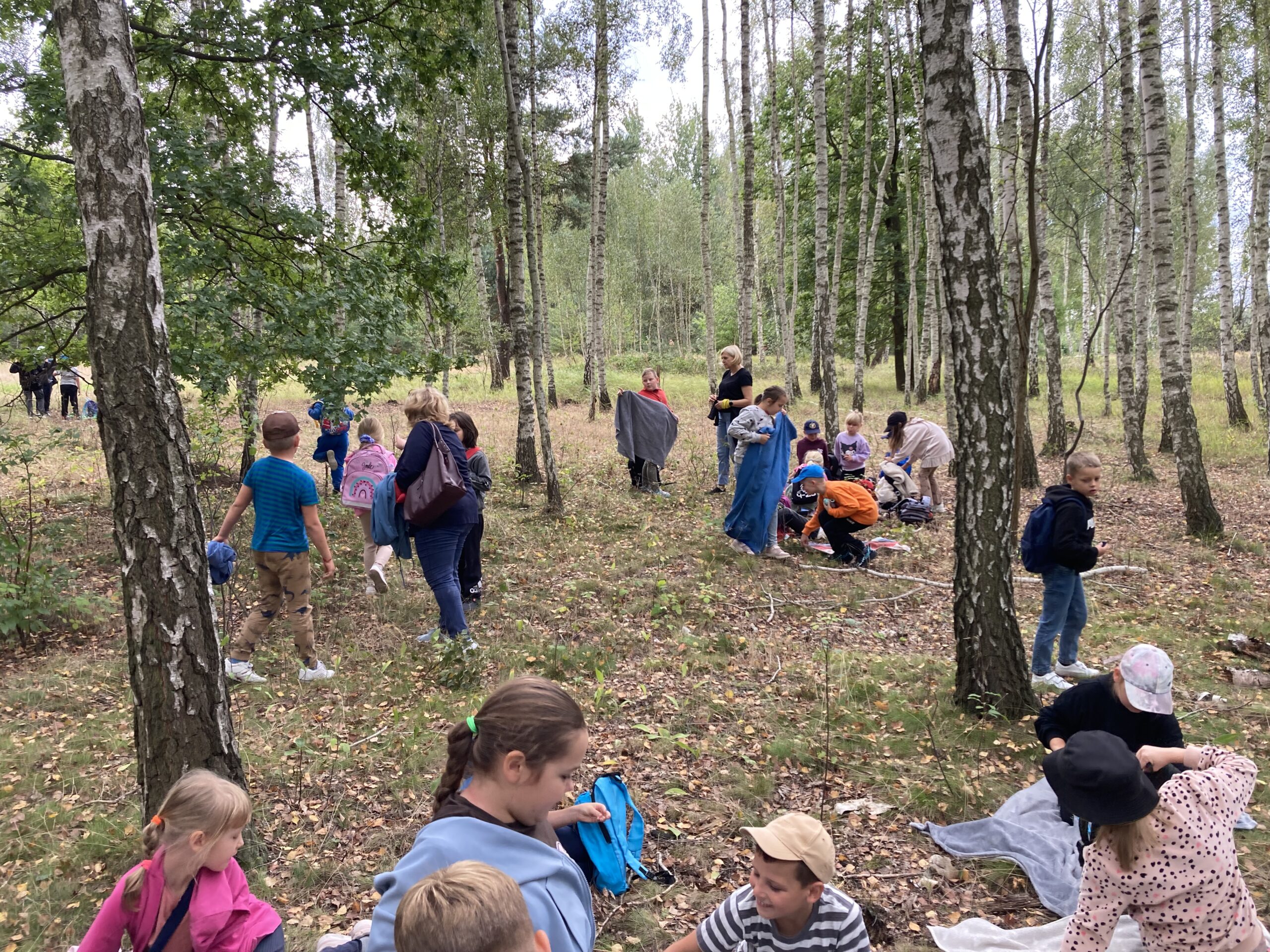 19 września uczniowie klas 0–III wybrali się do lasu, aby poznać go wszystkimi zmysłami w ramach ogólnopolskiej akcji „Sprzątanie Świata”. Choć dzieci są jeszcze za małe, by samodzielnie sprzątać, z entuzjazmem uczyły się uważności i szacunku do przyrody. Słuchały śpiewu ptaków, wąchały zapach lasu, dotykały kory drzew, wsłuchiwały się w „leśną muzykę”, a nawet tworzyły własne „leśne perfumy” i „obrazy z liści”.