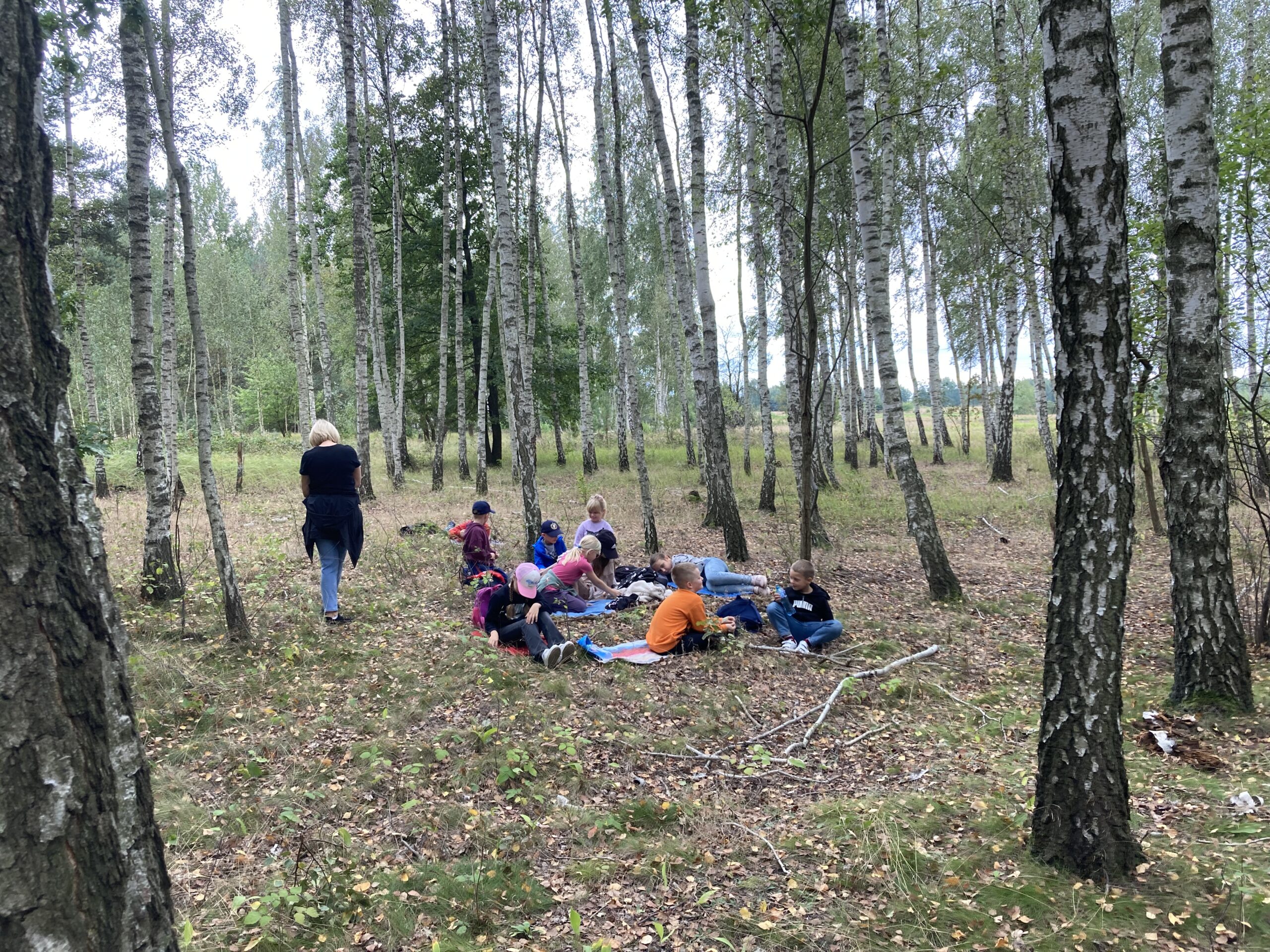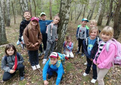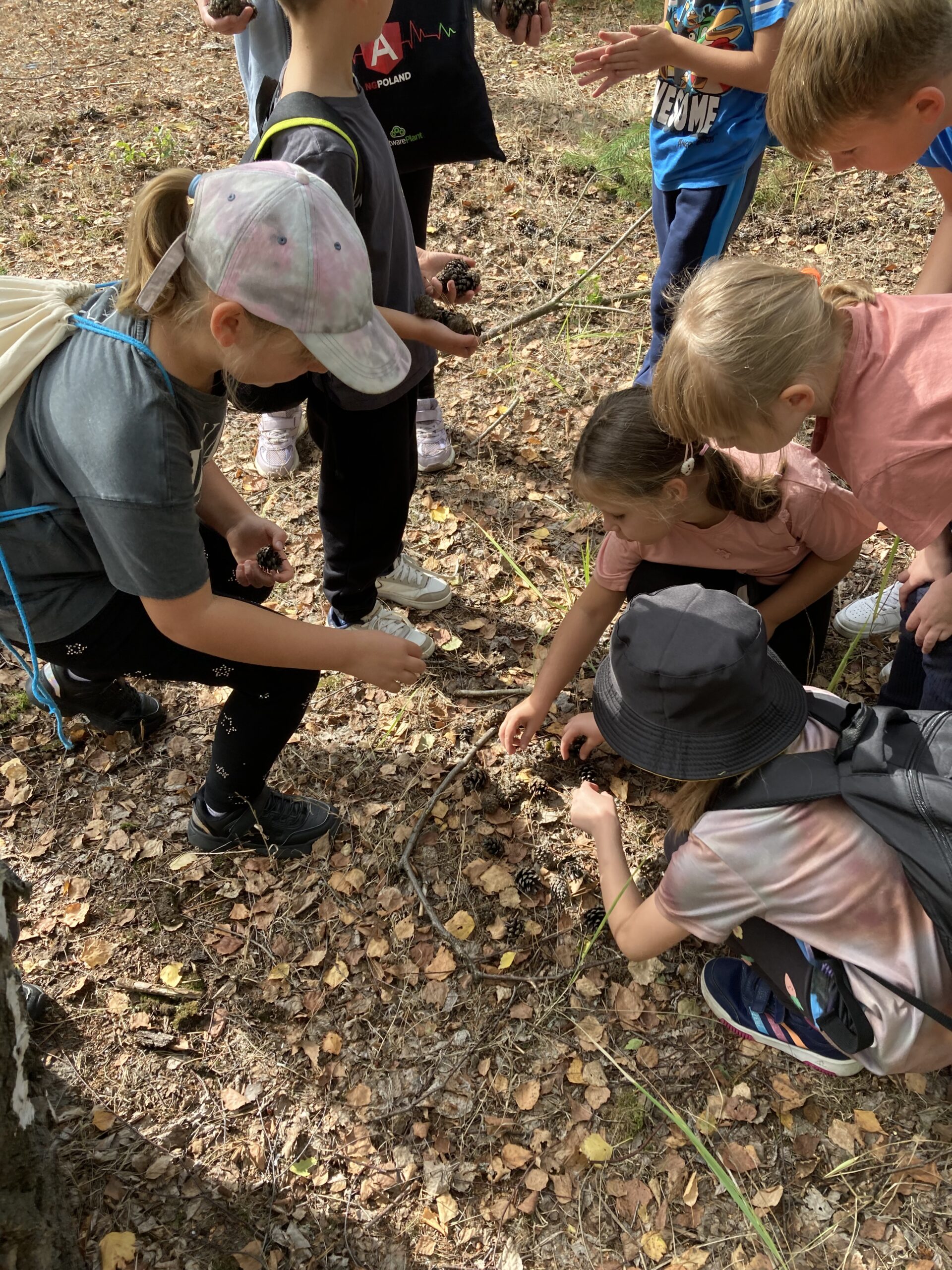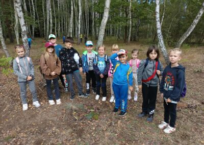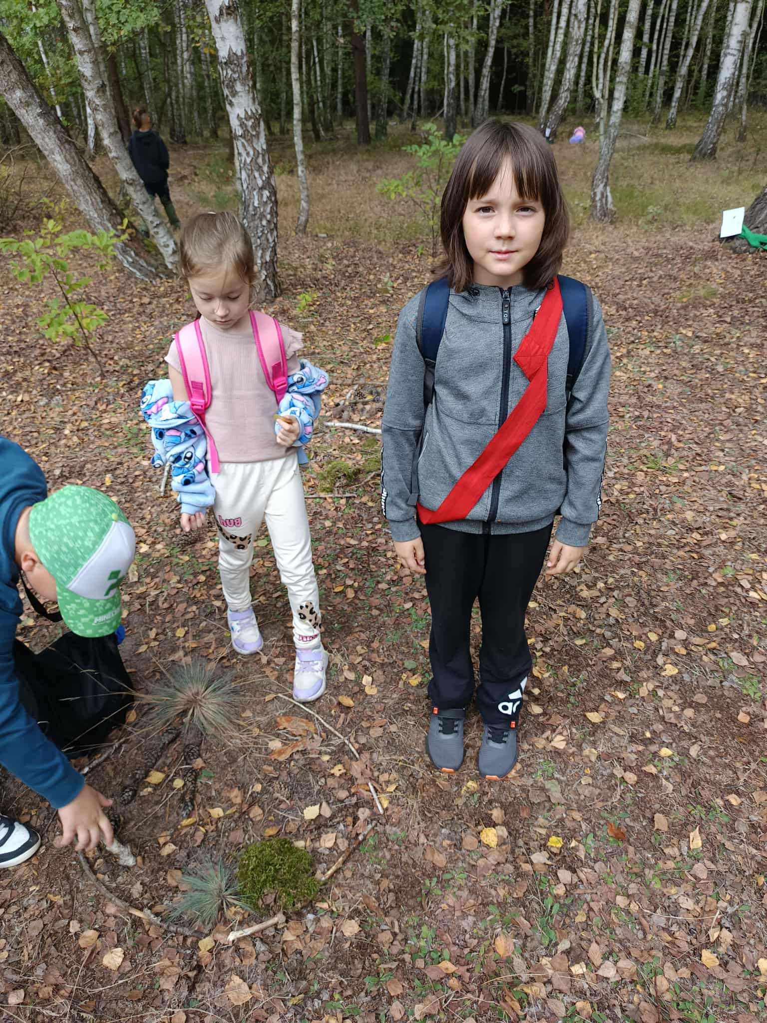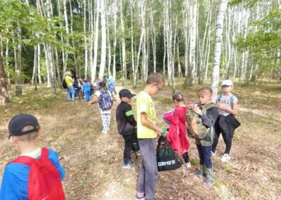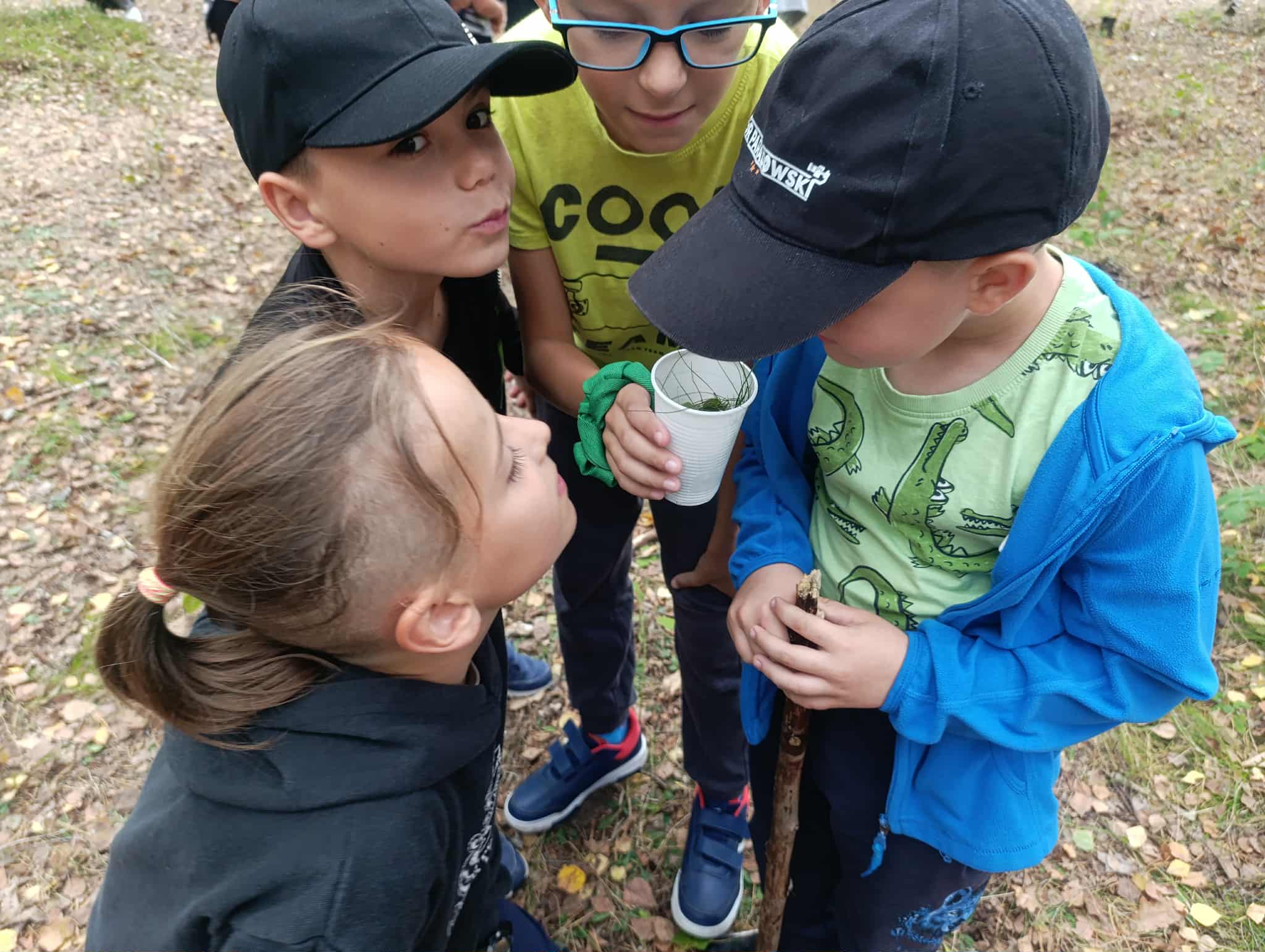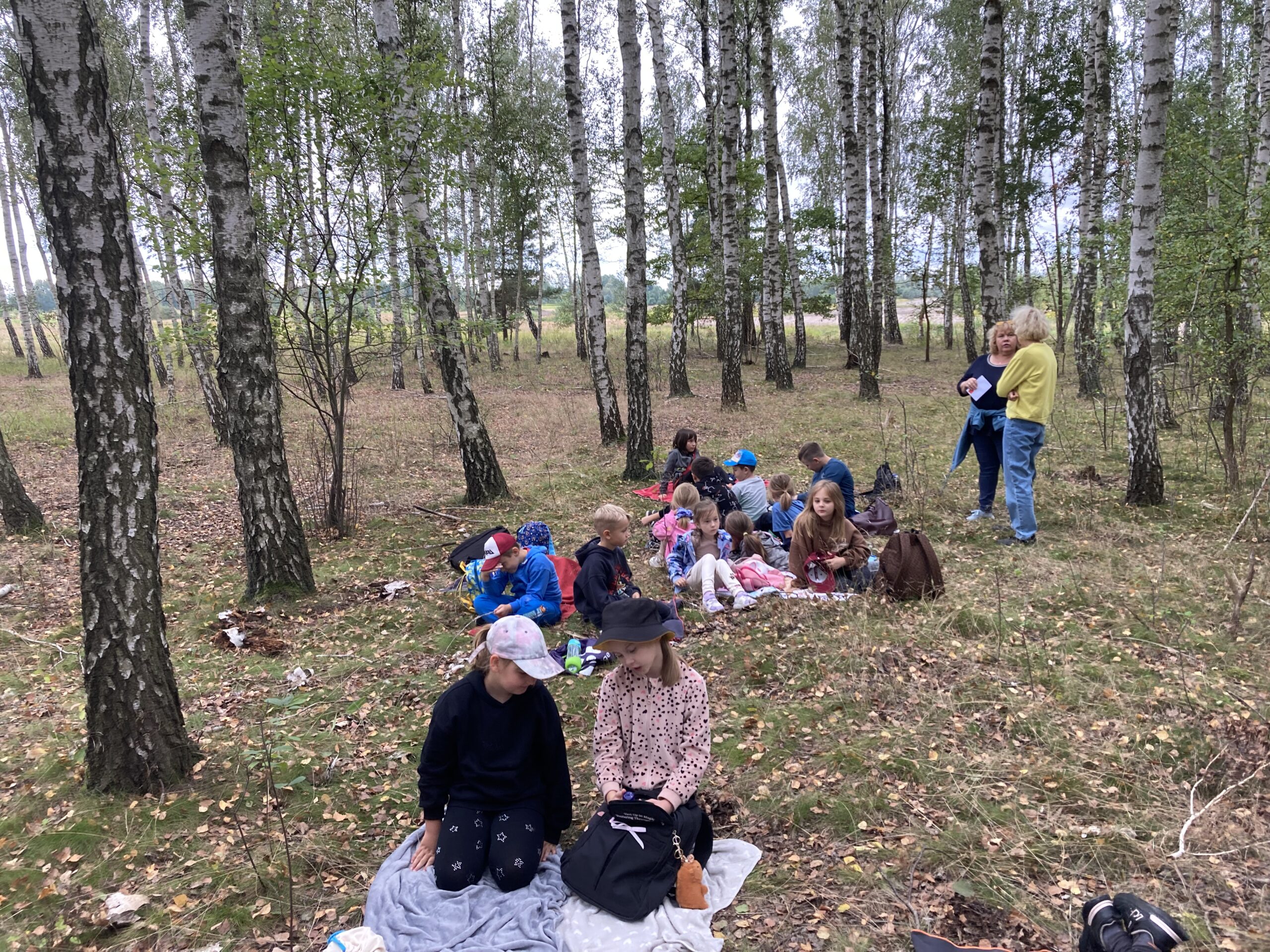 19 września uczniowie klas 0–III wybrali się do lasu, aby poznać go wszystkimi zmysłami w ramach ogólnopolskiej akcji „Sprzątanie Świata”. Choć dzieci są jeszcze za małe, by samodzielnie sprzątać, z entuzjazmem uczyły się uważności i szacunku do przyrody. Słuchały śpiewu ptaków, wąchały zapach lasu, dotykały kory drzew, wsłuchiwały się w „leśną muzykę”, a nawet tworzyły własne „leśne perfumy” i „obrazy z liści”.