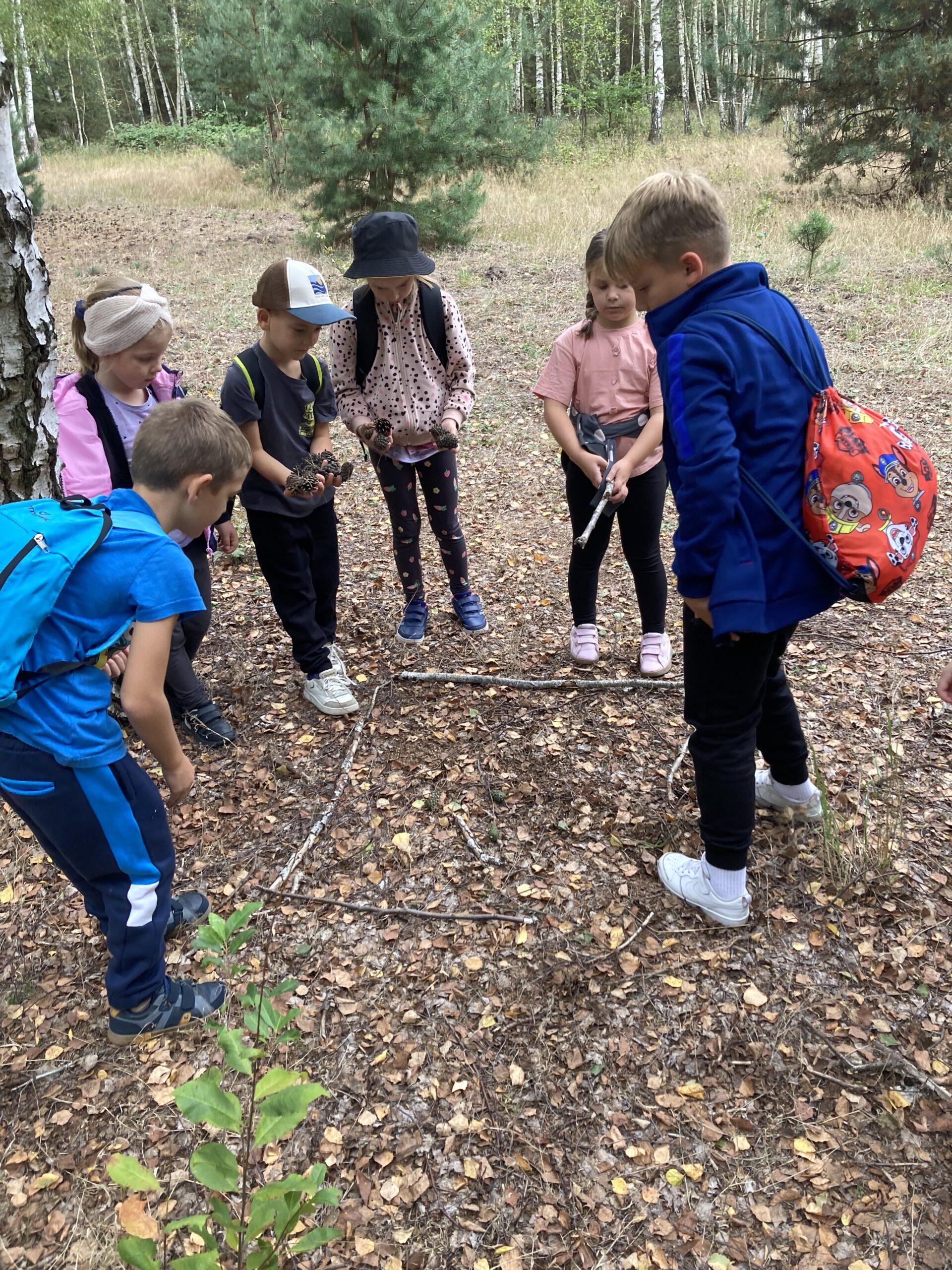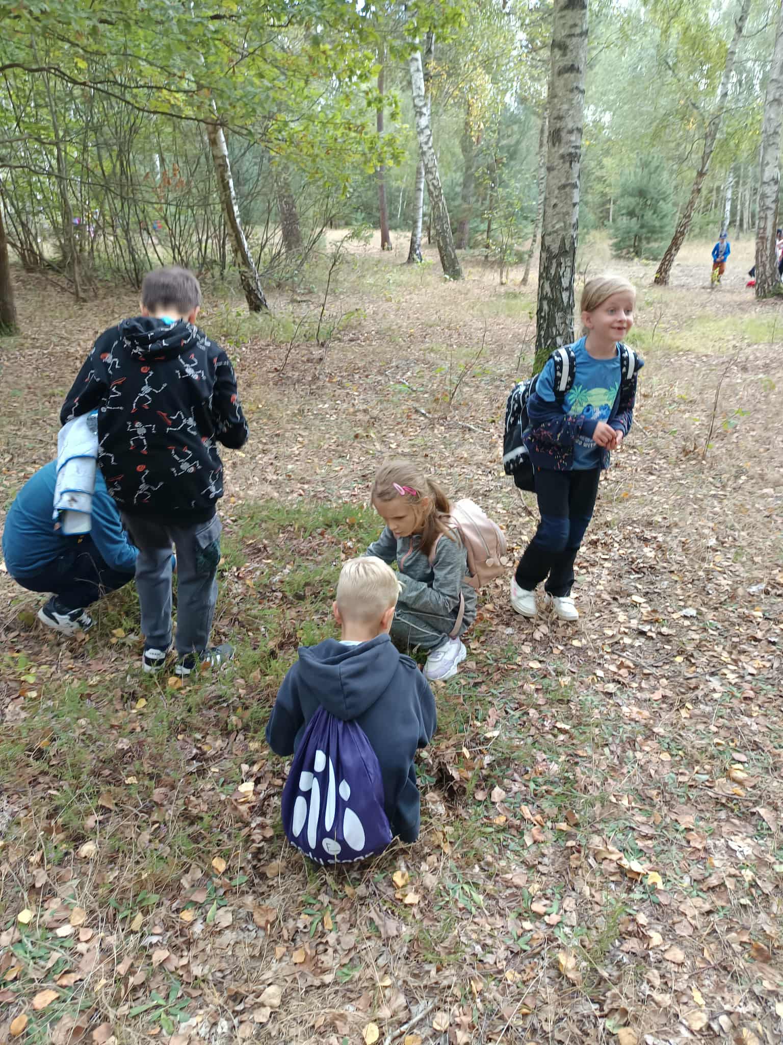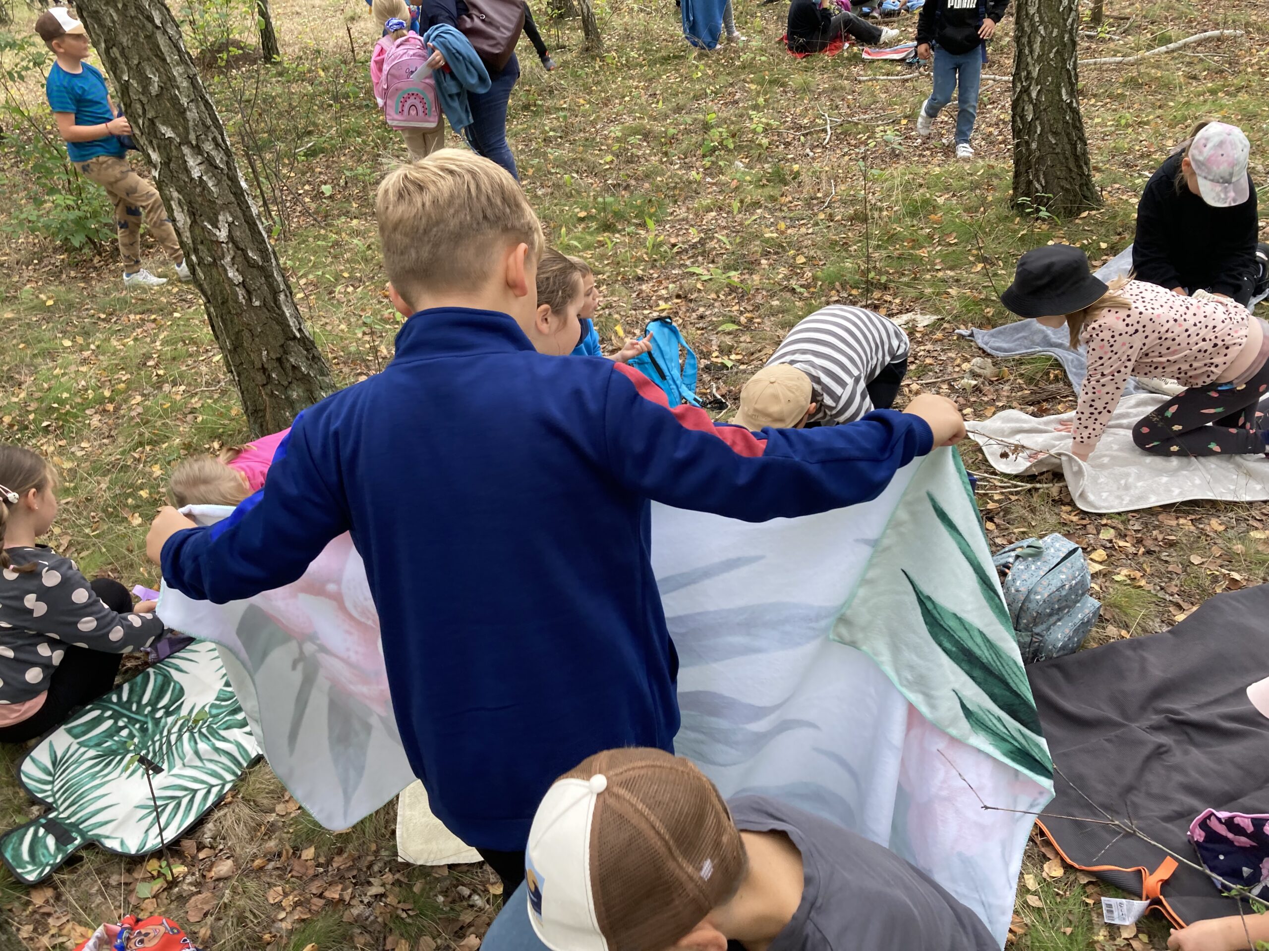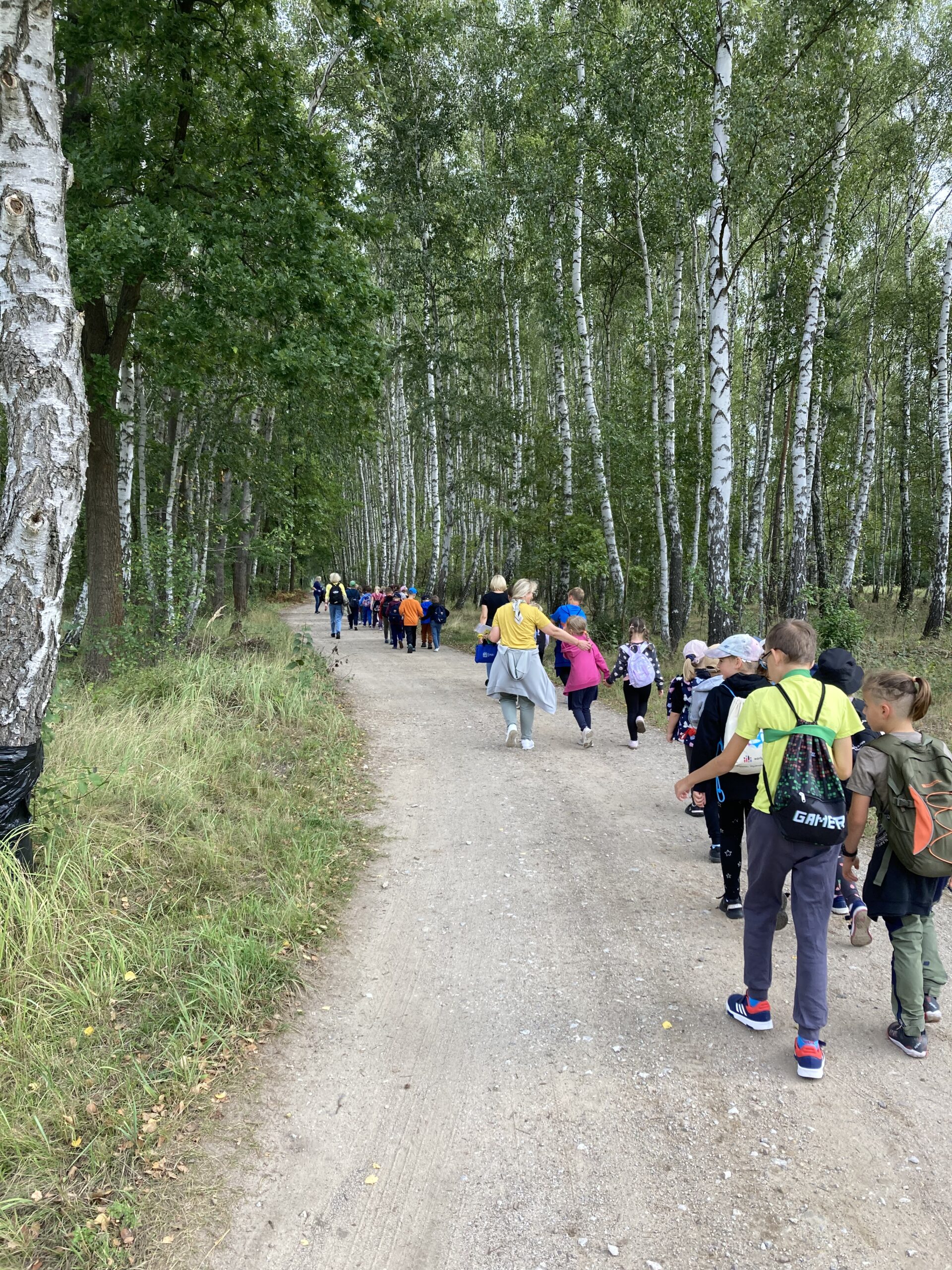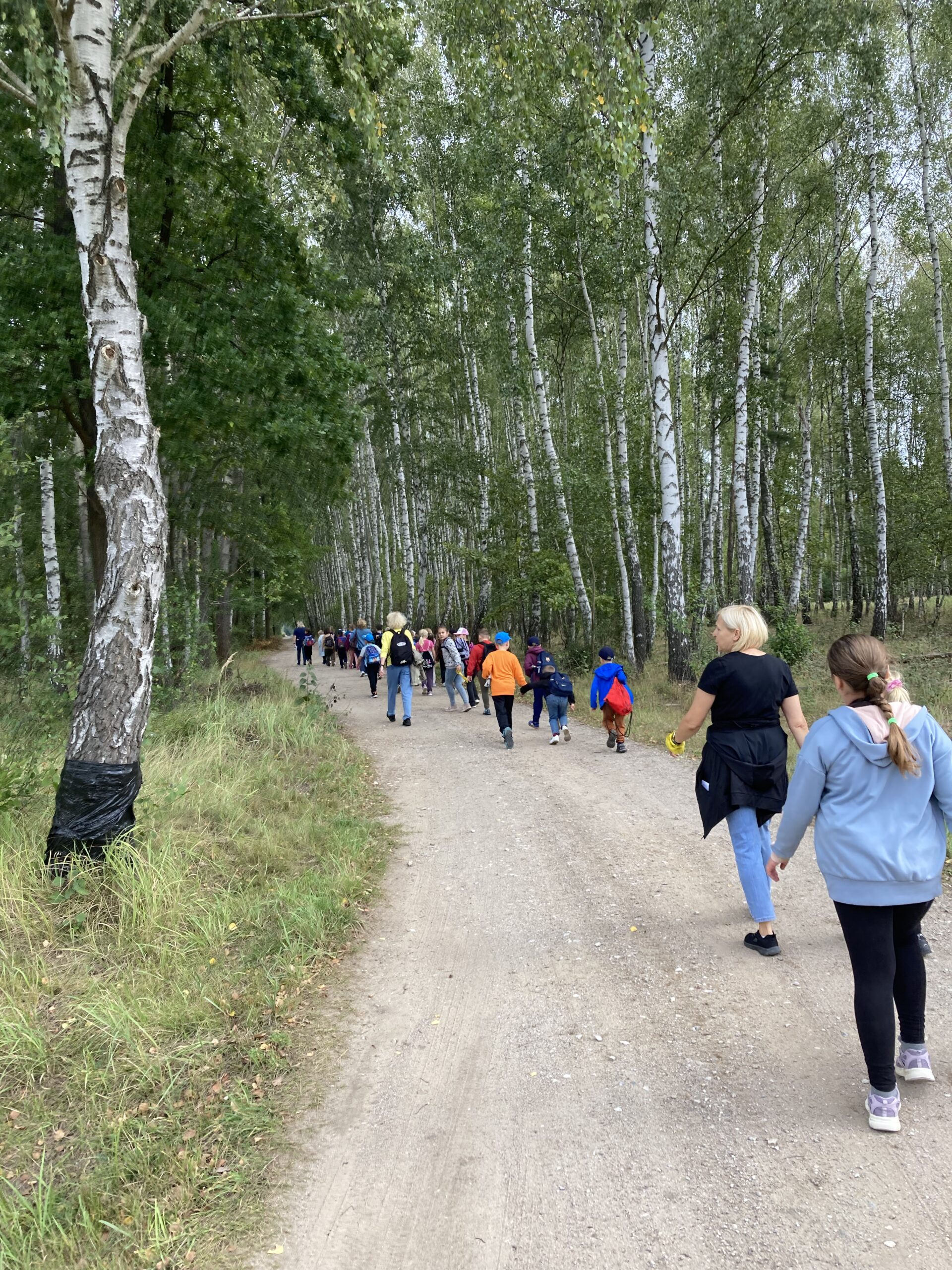 19 września uczniowie klas 0–III wybrali się do lasu, aby poznać go wszystkimi zmysłami w ramach ogólnopolskiej akcji „Sprzątanie Świata”. Choć dzieci są jeszcze za małe, by samodzielnie sprzątać, z entuzjazmem uczyły się uważności i szacunku do przyrody. Słuchały śpiewu ptaków, wąchały zapach lasu, dotykały kory drzew, wsłuchiwały się w „leśną muzykę”, a nawet tworzyły własne „leśne perfumy” i „obrazy z liści”.