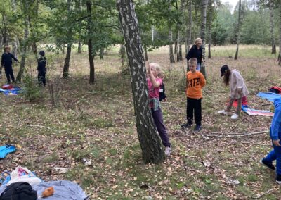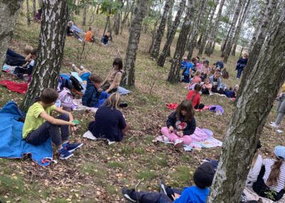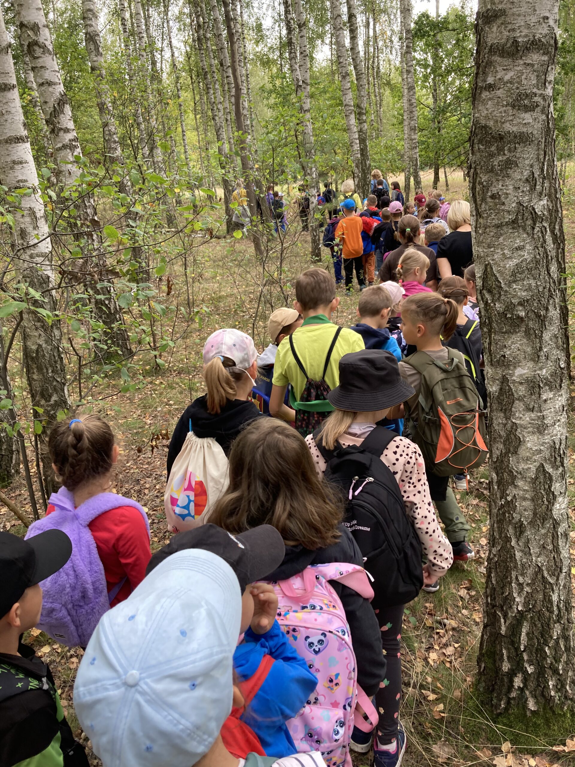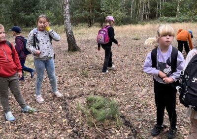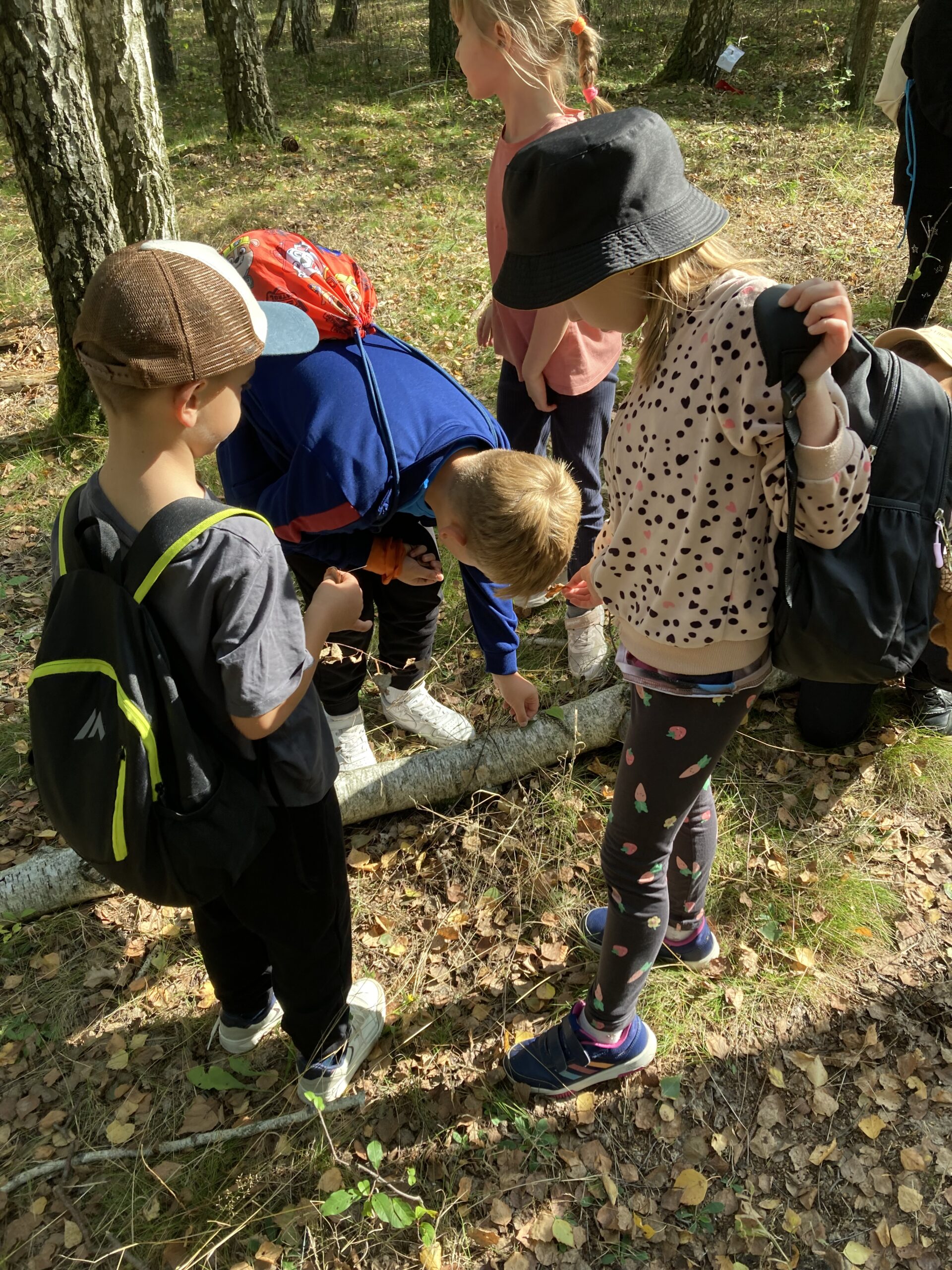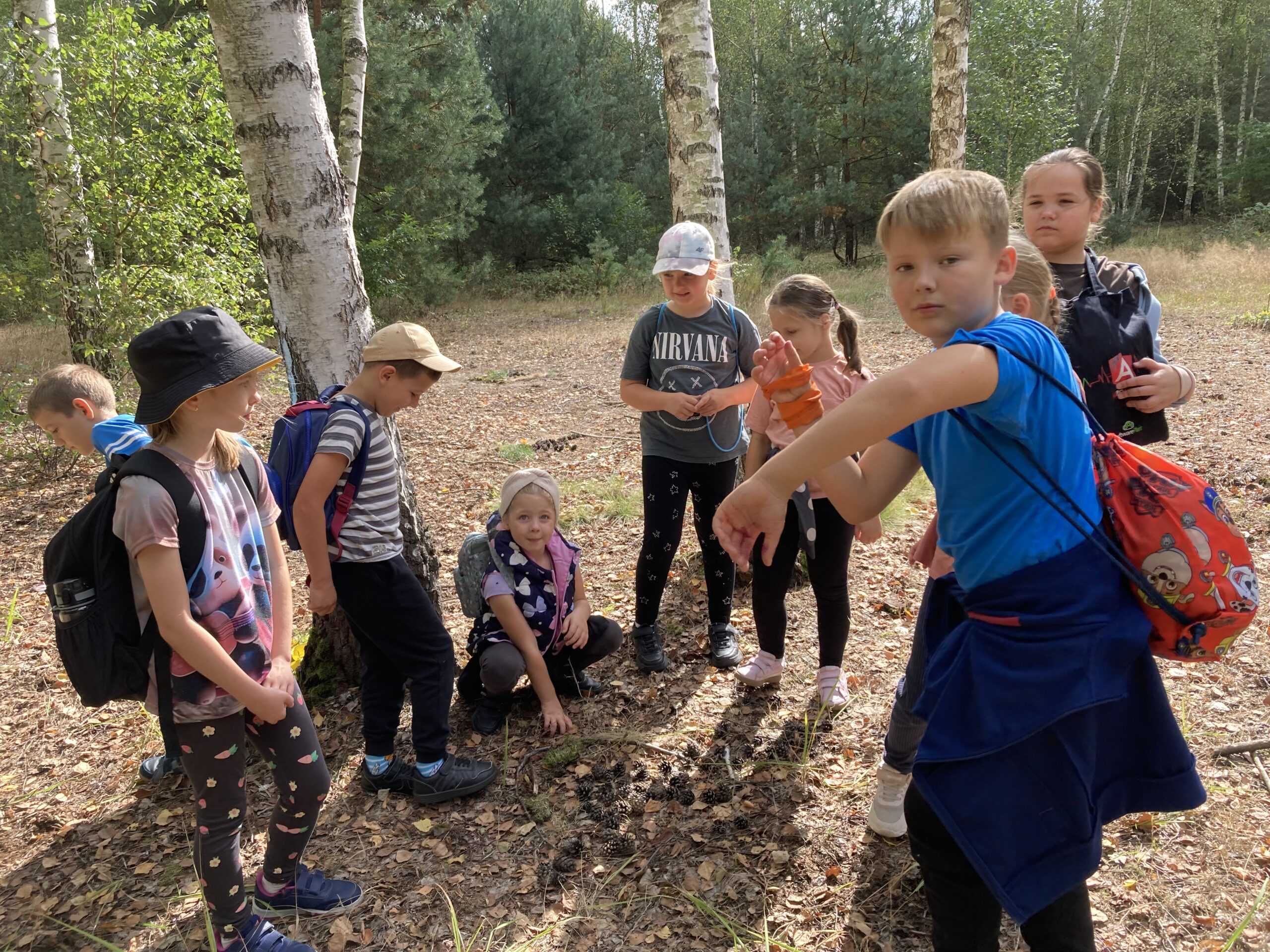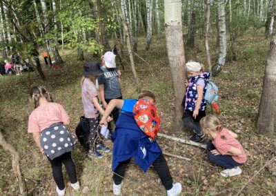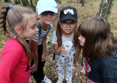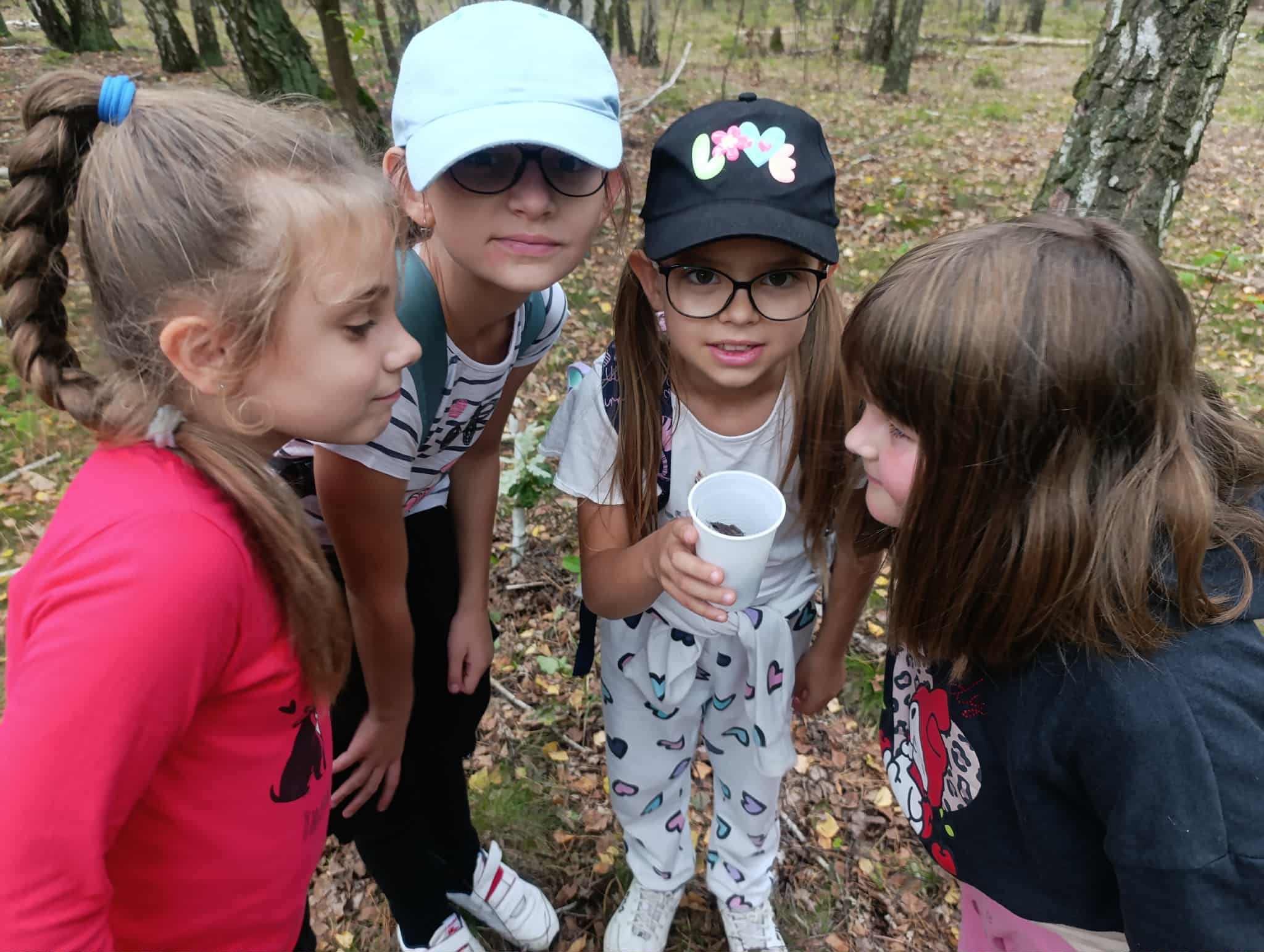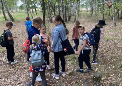 19 września uczniowie klas 0–III wybrali się do lasu, aby poznać go wszystkimi zmysłami w ramach ogólnopolskiej akcji „Sprzątanie Świata”. Choć dzieci są jeszcze za małe, by samodzielnie sprzątać, z entuzjazmem uczyły się uważności i szacunku do przyrody. Słuchały śpiewu ptaków, wąchały zapach lasu, dotykały kory drzew, wsłuchiwały się w „leśną muzykę”, a nawet tworzyły własne „leśne perfumy” i „obrazy z liści”.