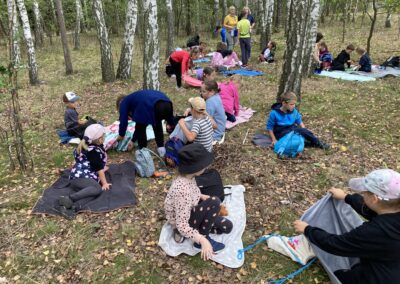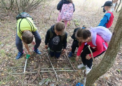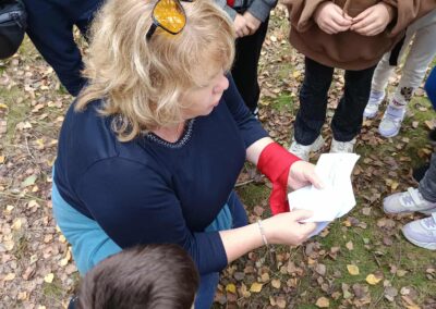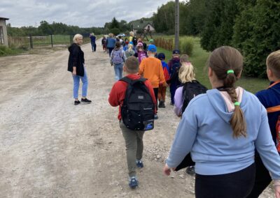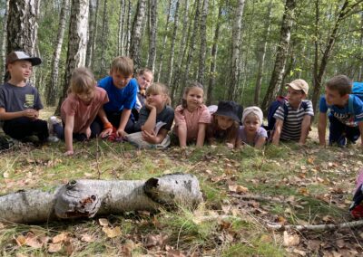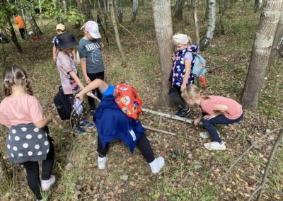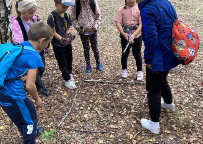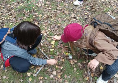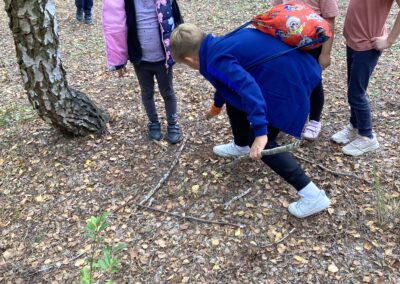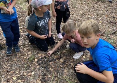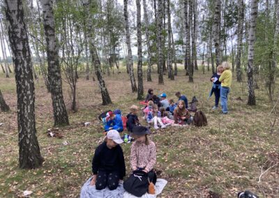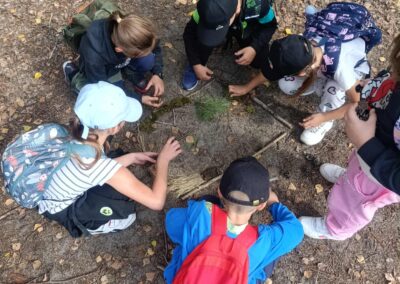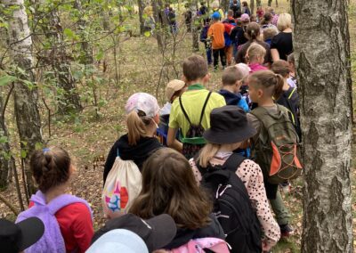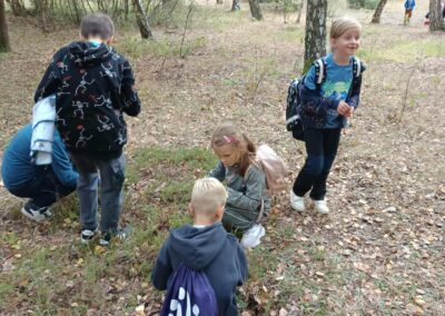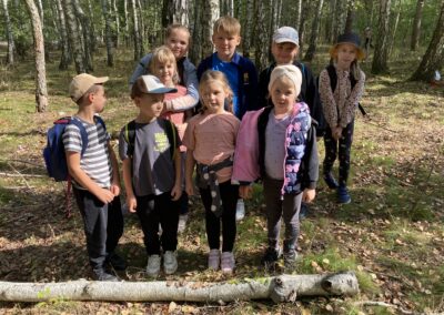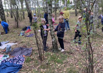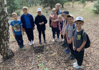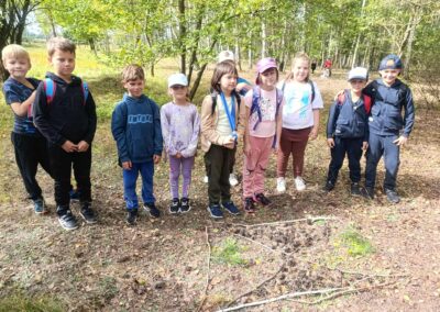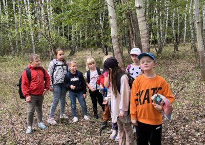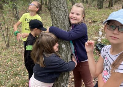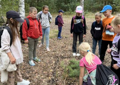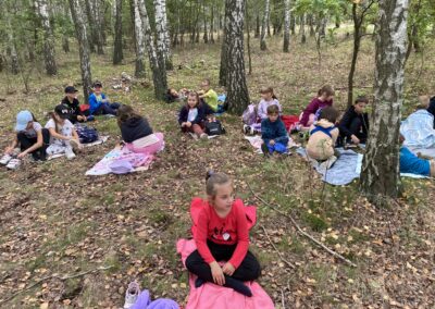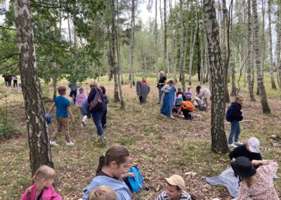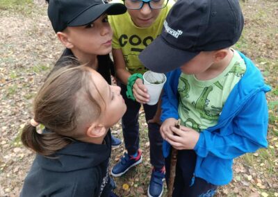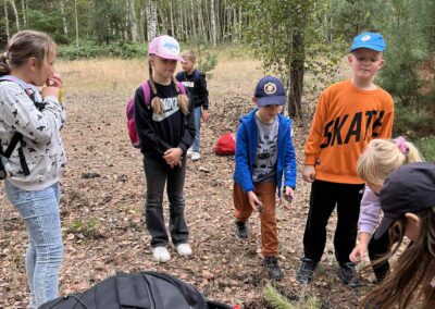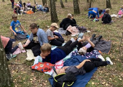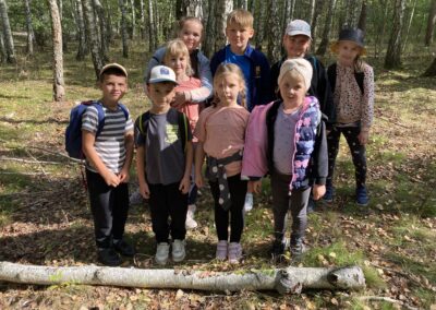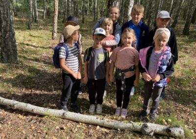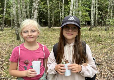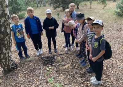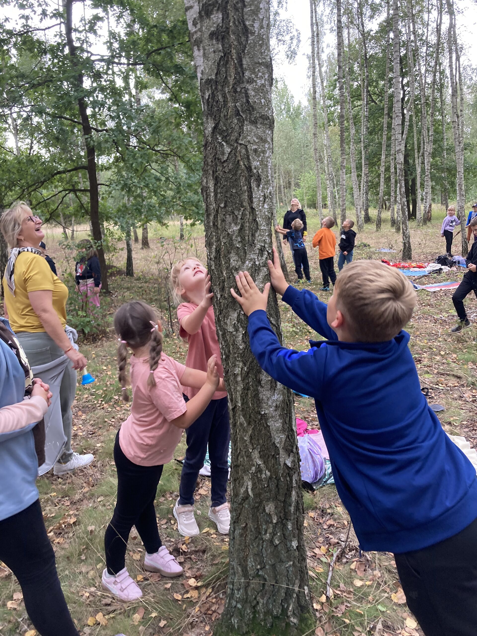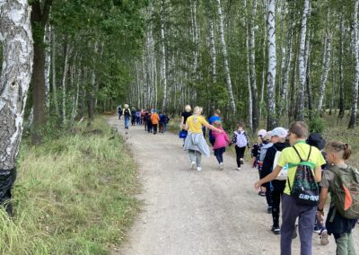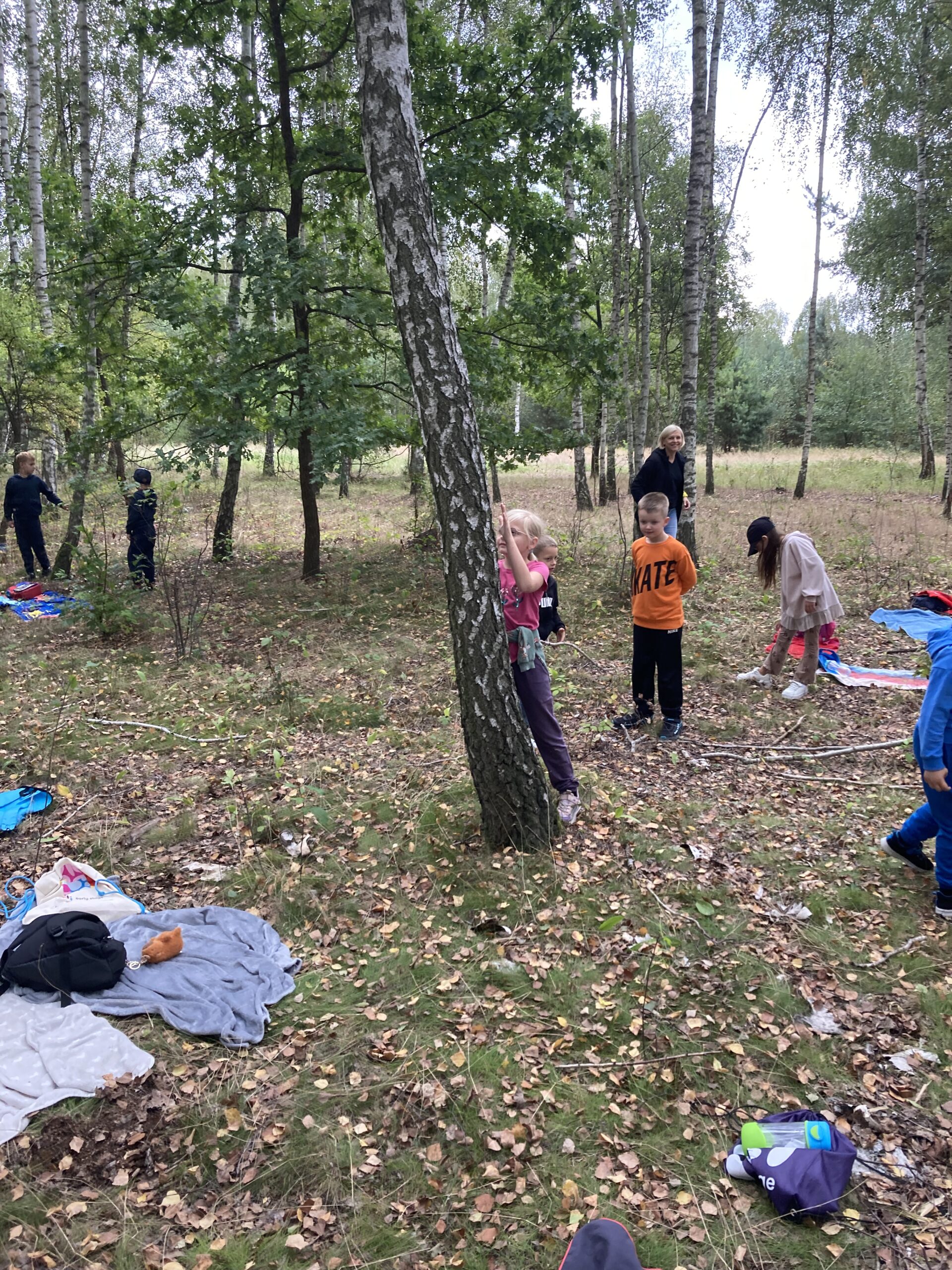 19 września uczniowie klas 0–III wybrali się do lasu, aby poznać go wszystkimi zmysłami w ramach ogólnopolskiej akcji „Sprzątanie Świata”. Choć dzieci są jeszcze za małe, by samodzielnie sprzątać, z entuzjazmem uczyły się uważności i szacunku do przyrody. Słuchały śpiewu ptaków, wąchały zapach lasu, dotykały kory drzew, wsłuchiwały się w „leśną muzykę”, a nawet tworzyły własne „leśne perfumy” i „obrazy z liści”.