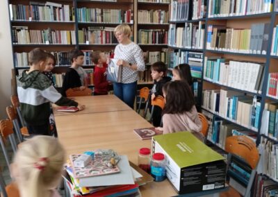 Nasi pierwszoklasiści odwiedzili bibliotekę i zostali właścicielami książki pt. ,,Wnuczka antykwariusza” Justyny Bednarek. Tym samym wzięli udział w kolejnej edycji kampanii społecznej Instytutu Książki pt. ,,Mała książka -wielki człowiek”. Jest ona realizowana od 2017 roku i zachęca do wspólnego, rodzinnego czytania i pokazuje niezwykle ważną rolę książek w życiu najmłodszych. Nasza pani bibliotekarka opowiedziała dzieciom o całej akcji, przeczytała fragment w/w książki oraz zapoznała z biblioteką. Teraz maluchy będą jeszcze chętniej zachodziły te gościnne progi.