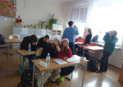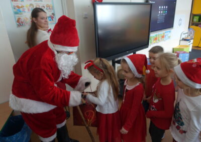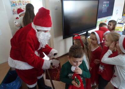 6 grudnia w naszej szkole po raz pierwszy, w bardzo nietypowy sposób, klasy 4-8 i dzieci z oddziału przedszkolnego spędziły Mikołajki. Zabawa polegała na tym, że trzeba było rozwiązać zagadki aby zdobyć klucz do szafki ze skarbami. Wszyscy świetnie się bawili. Nie zabrakło również samego Mikołaja, który pamiętał o wszystkich i rozdawał słodkie czekoladki.