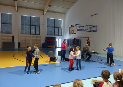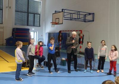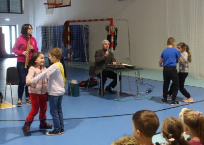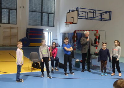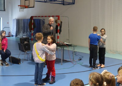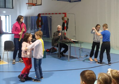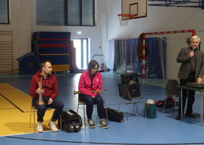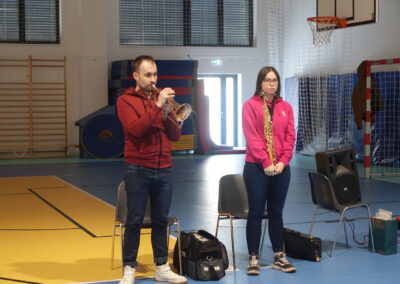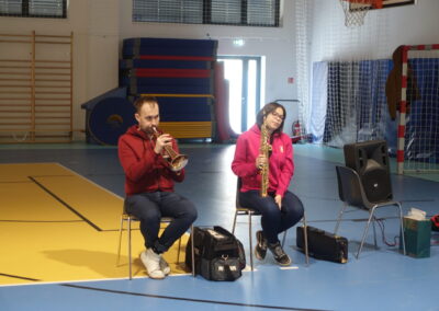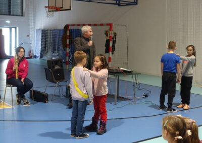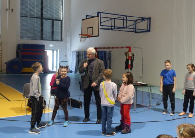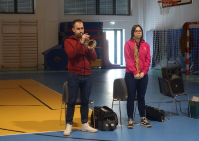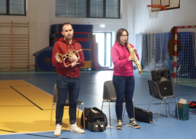 Dzisiaj 10.01.2024r. odbył się pierwszy w tym roku koncert pt. „Muzyka z filmów i musicali”. Prowadzący p. Hanusz Kowalczyk przyjechał z gośćmi, którzy zademonstrowali wszystkim dwa instrumenty dęte. Pierwszy z nich to saksofon sopranowy – instrument dęty drewniany, drugi to skrzydłówka – instrument dęty blaszany. Wysłuchaliśmy pięknego wykonania utworów m.in. z musicalu „Piękna i bestia” oraz „Shallow” z filmu „Narodziny gwiazdy”. Zaśpiewał dla nas również sam pan Hanusz. Oczywiście były również konkursy z nagrodami dla chętnych uczniów.