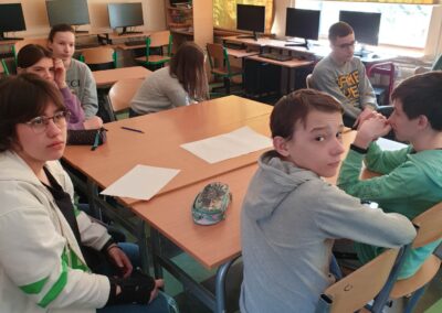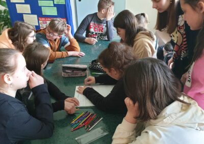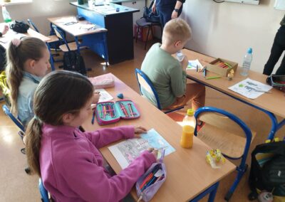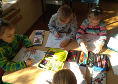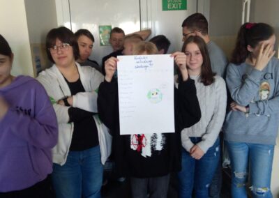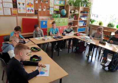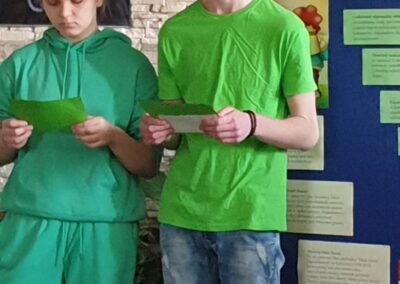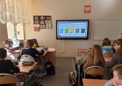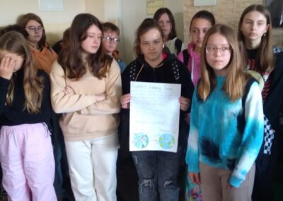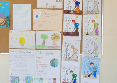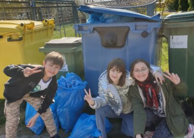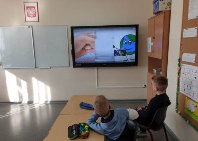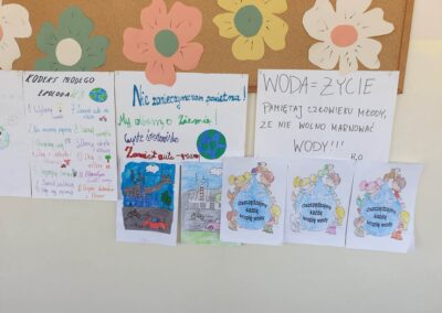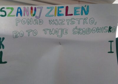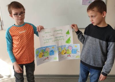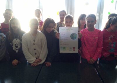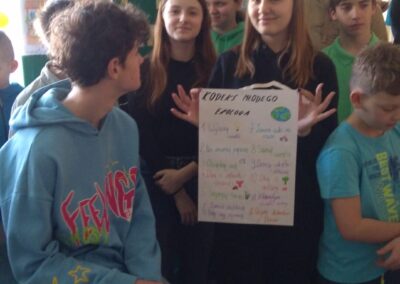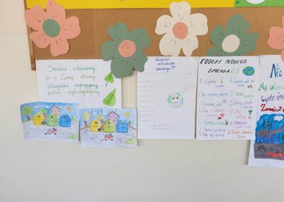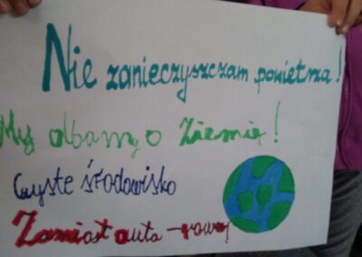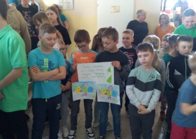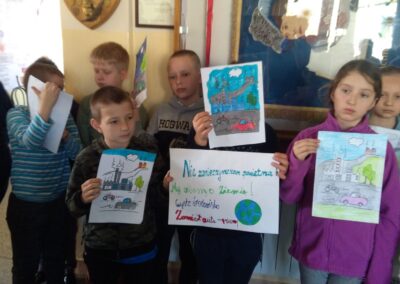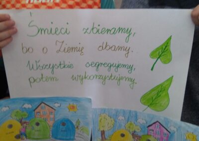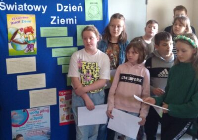 Temu tematowi poświęciliśmy czas 21 kwietnia obchodząc Międzynarodowy Dzień Ziemi. Uczniowie klasy VIII przybliżyli nam historię tego dnia oraz zagrożenia dla naszej planety. Wszyscy obejrzeliśmy prezentację o zagrożeniach dla Ziemi. Po obejrzeniu prezentacji uczniowie klas IV-VIII stworzyli Kodeks Młodego Ekologa, a uczniowie klas 0-III pokolorowali obrazki i utworzyli hasła nawołujące do dbania o naszą planetę. Aby podkreślić, jak ważne jest dla nas środowisko, posprzątaliśmy śmieci wokół szkoły i w pobliskim lasku. Mamy nadzieję, że czystość utrzyma się przez dłuższy czas.