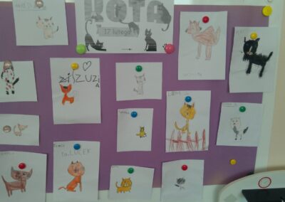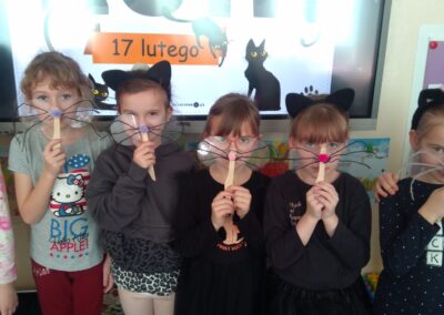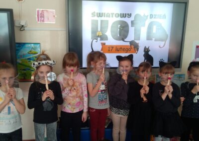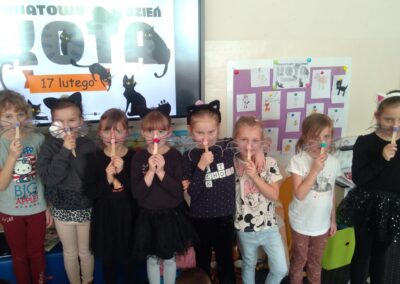 17 lutego obchodzony był Światowy Dzień Kota. Z tej okazji 16 lutego dzieci z zerówki na jeden dzień zamieniły się w kotki. Cały dzień pełen był zabaw, zagadek związanych z kotami. W bibliotece dowiedziały się kilku ciekawostek na temat tych milutkich, a czasem groźnych zwierząt. Na koniec wszystkie „Kotki” poszły pobiegać na podwórku.
