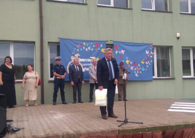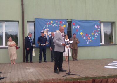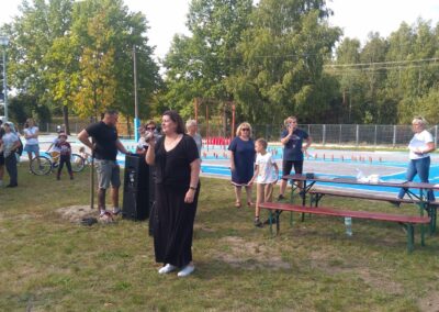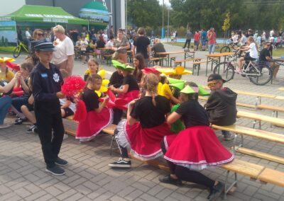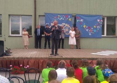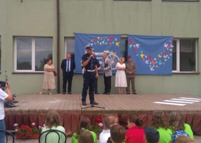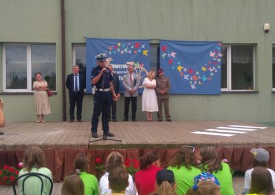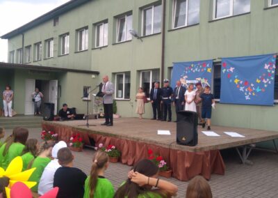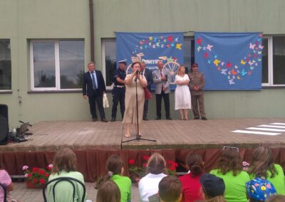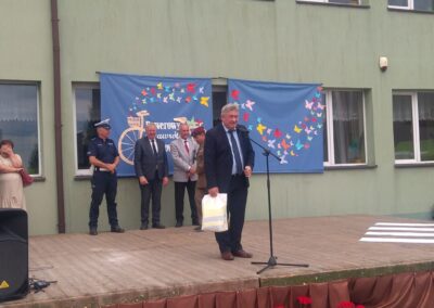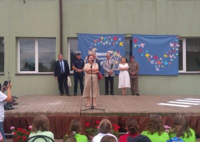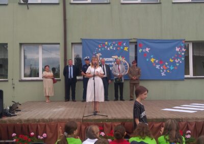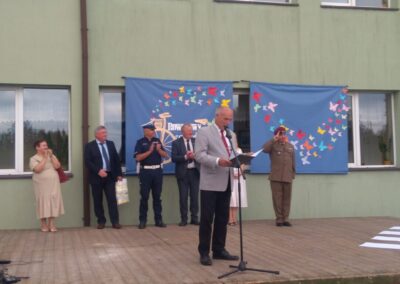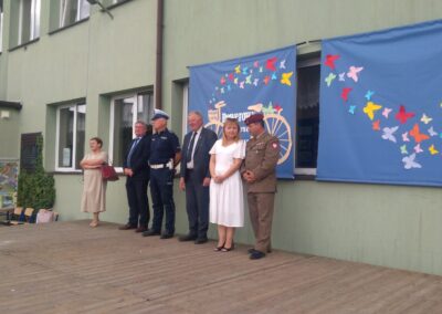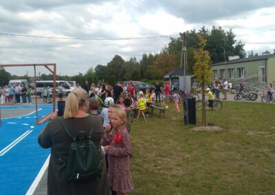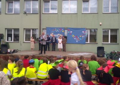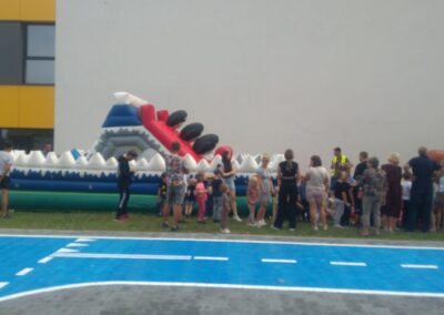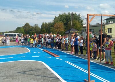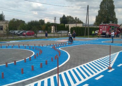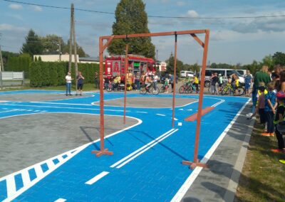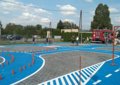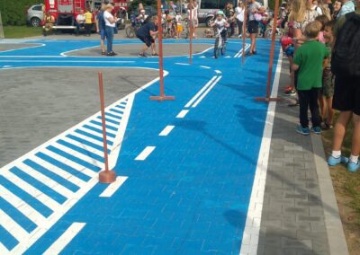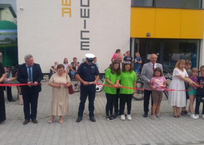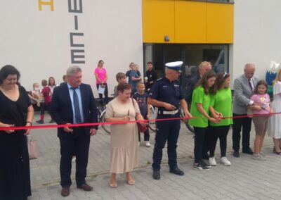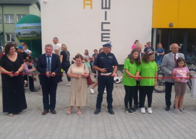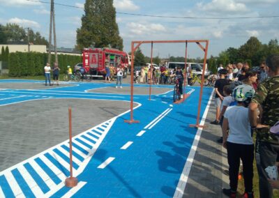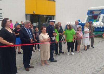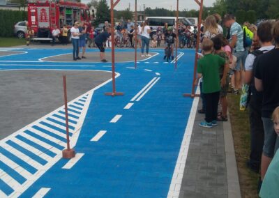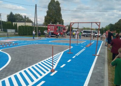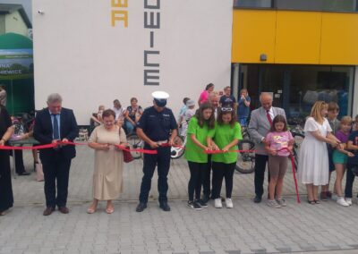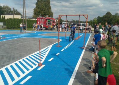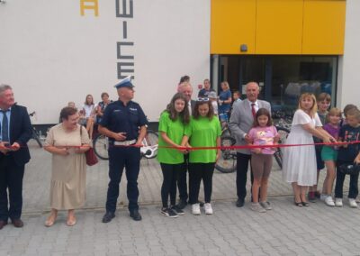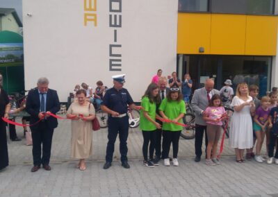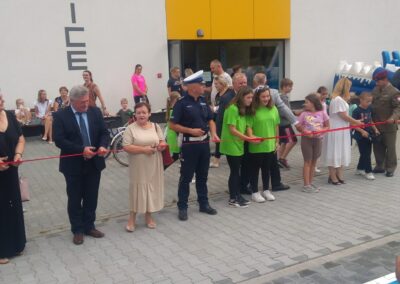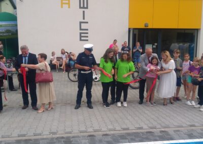 Otwierając miasteczko symboliczną wstęgę przecięli Wójt Gminy Skierniewice Czesław Pytlewski, Dyrektor szkoły podstawowej w Sierakowicach Prawych Agnieszka Pilipów, Ewa Wendrowska Radna Sejmiku Województwa Łódzkiego, Grzegorz Wojciechowski Poseł RP, Piotr Mitkowski Szef Wojskowego Centrum Rekrutacji w Skierniewicach, Ewa Maciejewska reprezentująca Dyrektor Delegatury Kuratorium Oświaty w Łodzi z siedzibą w Skierniewicach, Piotr Markowicz reprezentujący Komendanta Miejskiego Policji w Skierniewicach, Marek Faryj reprezentujący Dyrektora Wojewódzkiego Ośrodka Ruchu Drogowego w Skierniewicach oraz uczniowie.