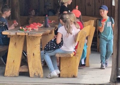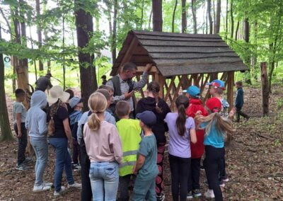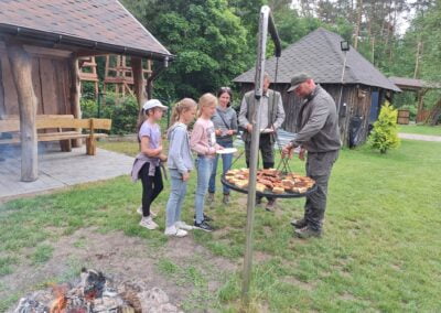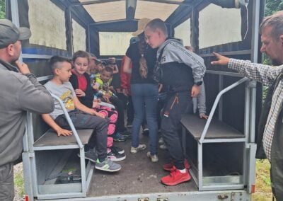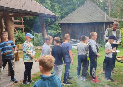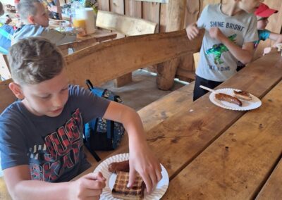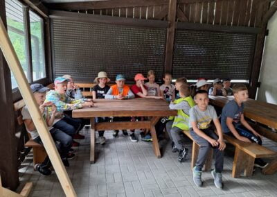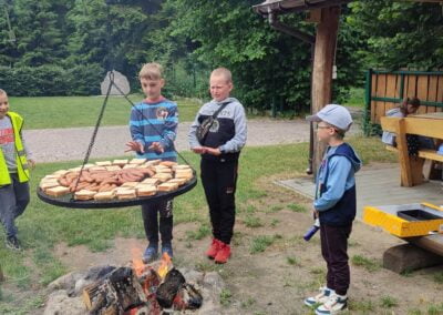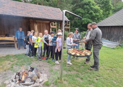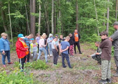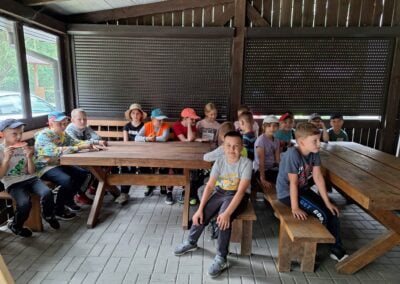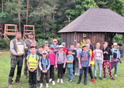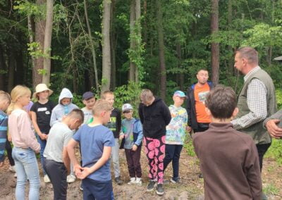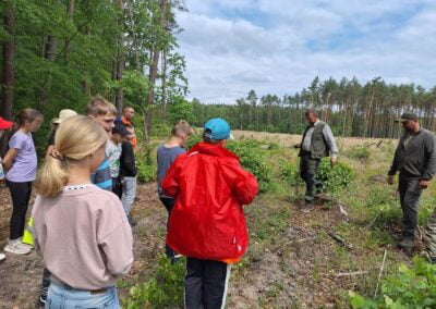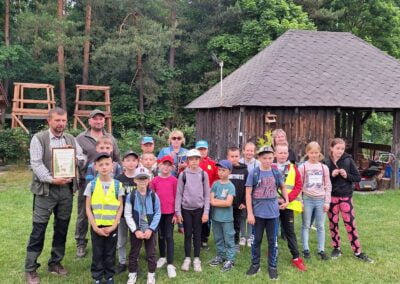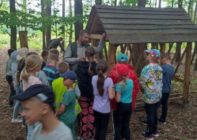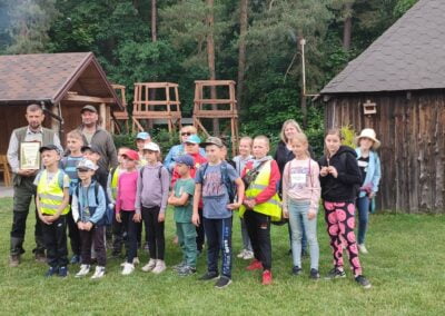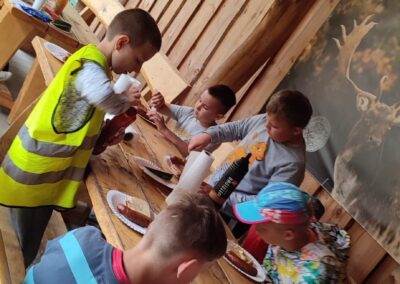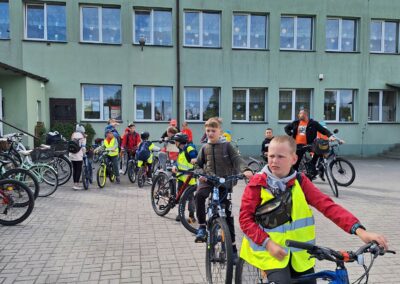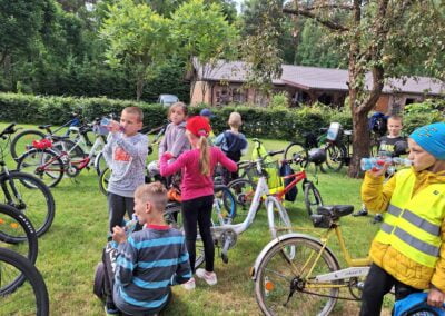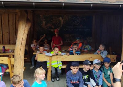 14 czerwca 2023 uczniowie klasy drugiej i trzeciej pod opieką swoich wychowawców udali się na rajd rowerowy. Wszyscy czekali na ten dzień z utęsknieniem i spoglądali na niebo, czy dopisze pogoda. Dopisała nie tylko pogoda, ale też pojawiła się nowa znajomość z Kołem Łowieckim ,,Knieja”. Panowie: Marcin Cieśla i Jakub Bodych perfekcyjnie zadbali o komfort naszego pobytu na terenie leśniczówki. Podnieśli też znacznie stan naszej wiedzy na temat otaczającej fauny i flory. Spojrzeliśmy na ten znany nam las zupełnie innymi oczami. Oglądanie prezentacji, przejażdżka bryczką, spacer po lesie, wspólny posiłek przy ognisku, jazda rowerem. Atrakcji było co nie miara.