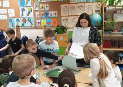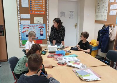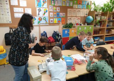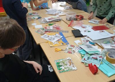 W czwartek 8 grudnia, uczniowie klasy II uczestniczyli w warsztatach plastycznych. Zajęcia poprowadziła mama Antka – pani Justyna Tartanus. Na początku opowiedziała dzieciom o metodzie ozdabiania kartek zwanej Scrapbooking i pokazała kilka prac oraz materiały, które przywiozła na zajęcia. Następnie uczniowie wykonali, wg własnego pomysłu, kartki o tematyce bożonarodzeniowej. Wykorzystali zarówno gotowe elementy jak i scrapki wycięte samodzielnie za pomocą maszynki Big Shot i różnych wykrojników przywiezionych przez panią Justynę. Ta metoda spodobała się dzieciom i z zapałem komponowali swoje kartki nie zauważając upływającego czasu. Każde dziecko zabrało zrobioną przez siebie kartkę do domu.