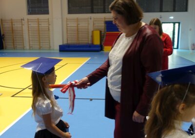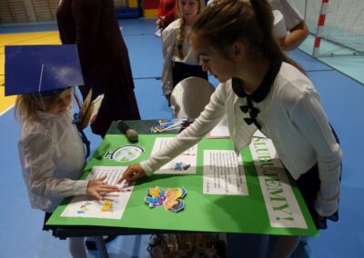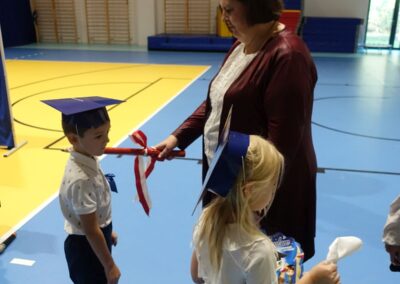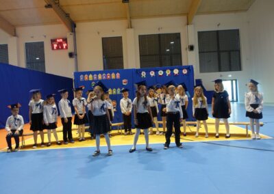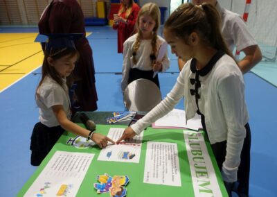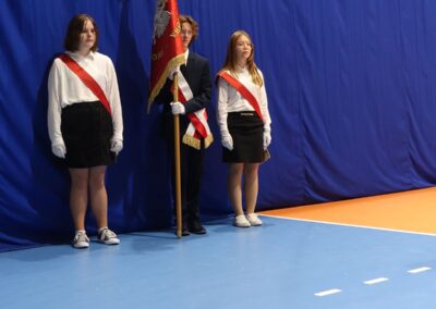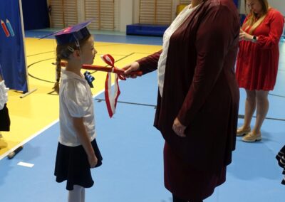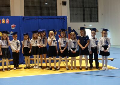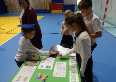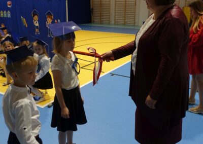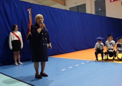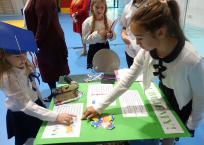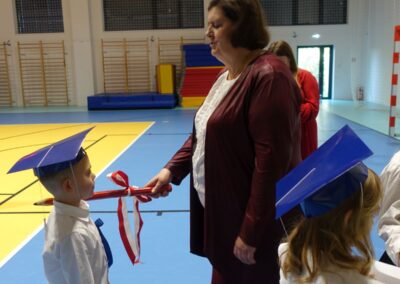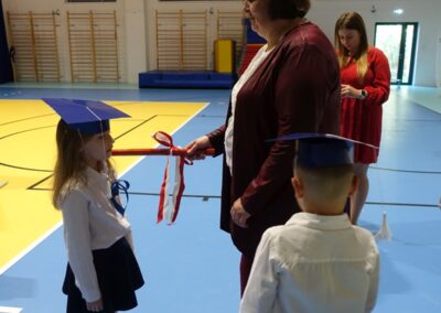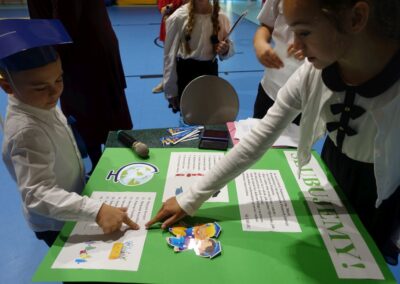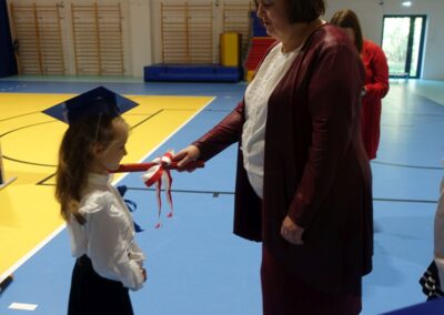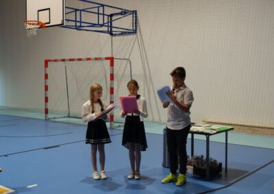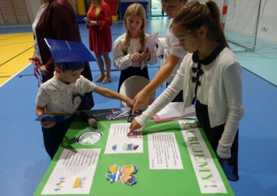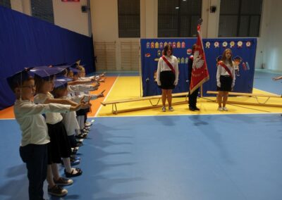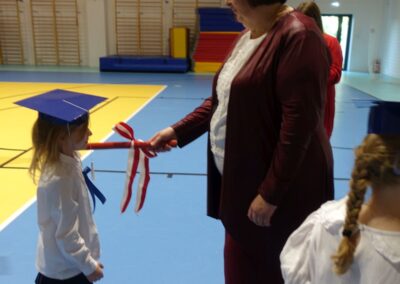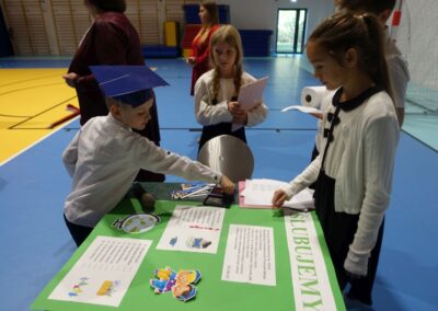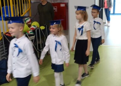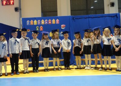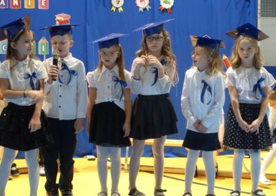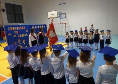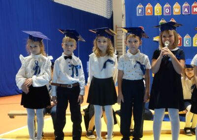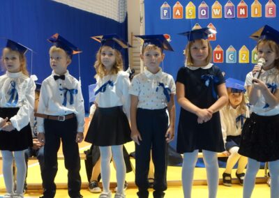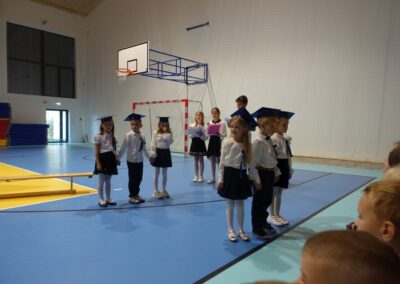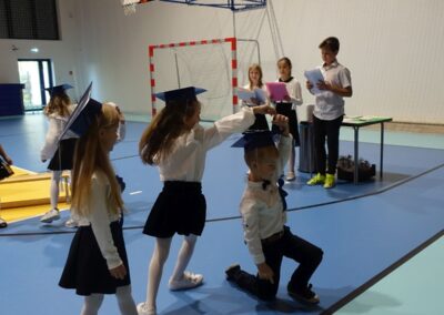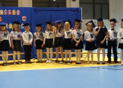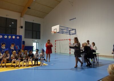 10 października 2024 roku zapadnie pierwszakom na długo w pamięci. W tym dniu szkołę odwiedzili: rodzice pierwszaków i pani wójt Lucja Skarzyńska. Dokładnie o godzinie 9:00 rozpoczął się apel poświęcony ślubowaniu pierwszej klasy. Aby mogli ślubować, pierwszaki musieli zdać egzamin. Wykazali się wiedzą na temat swojej Ojczyzny, poruszania po drogach, zachowania w szkole. Pięknie śpiewali i tańczyli. Starania pierwszaków zgromadzeni na hali nagrodzili gromkimi brawami. Po ślubowaniu i pasowaniu na ucznia rodzice przygotowali słodki poczęstunek.
