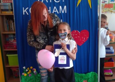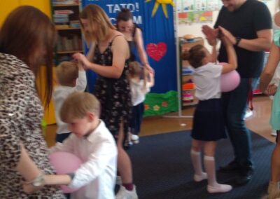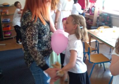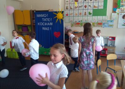 Dnia 20 maja dzieci z oddziału przedszkolnego przygotowały dla rodziców przyjęcie niespodziankę. Z okazji Dnia Mamy i Taty zorganizowały wspólnie z wychowawcą przedstawienie dla wyjątkowych gości. Kolejną niespodzianką był prezent jaki dzieci przygotowały dla swoich rodziców, a była to najlepsza, rodzinna książka kucharska. W tę książkę rodzice mogą wpisać przepisy ulubionych dań, które potem wspólnie z dzieckiem zrobią. Na koniec trochę się pobawiliśmy, były tańce z balonami, zdjęcia, poczęstunek i rozmowy.