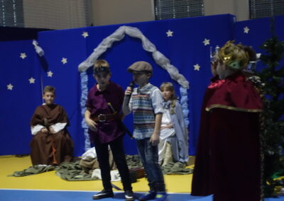 Dla wszystkich uczniów, nauczycieli, pracowników szkoły oraz zaproszonych gości uczniowie klasy II i III przygotowali Jasełka szkolne pt. „Mały Pastuszek i wielki Rozbójnik”.