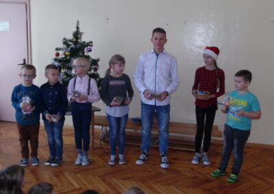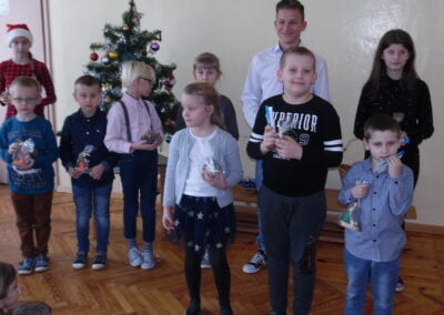 Pozostali uczestnicy zostali wyróżnieni i każdy uczestnik został nagrodzony za udział w konkursie. Po wręczeniu nagród wszyscy wspólnie śpiewali kolędy i piosenki świąteczne przy akompaniamencie naszych uczniów i pani Alicji.