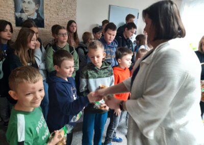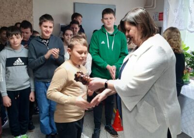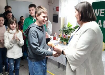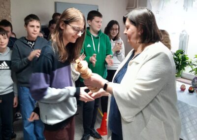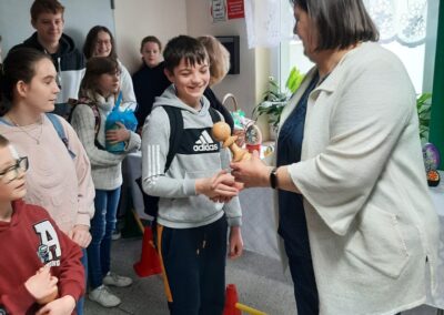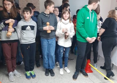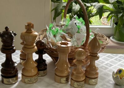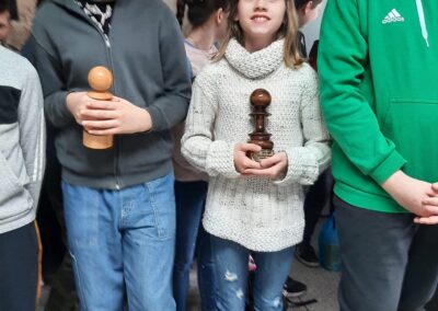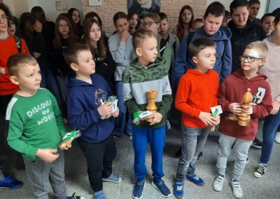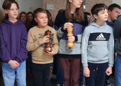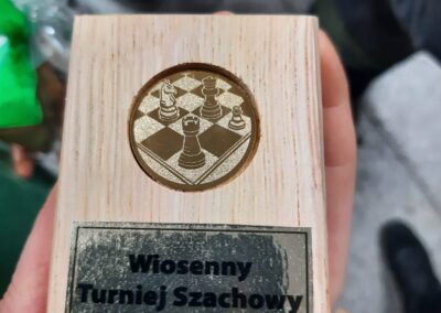 Wszystkie te osoby dostały piękne puchary szachowe. W tym roku puchar też dostała najlepiej grająca dziewczyna w tej grupie – Julianna Tracz (6 pkt). Każdy uczestnik za wzięcie udziału otrzymał pamiątkowy klocek szachowy i tradycyjnie ciasteczka w kształcie figur szachowych.