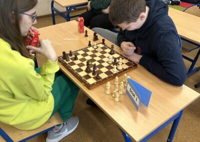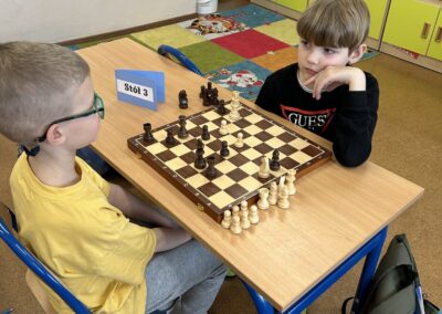 To był prawdziwy maraton szachowy. Turniej trwał na przełomie czterech tygodni. Rozgrywki odbyły się w systemie kołowym w dwóch grupach wiekowych: juniorzy- przedstawiciele klas 1-3, seniorzy- uczniowie z klas 4-7. Wśród juniorów największym talentem i wytrwałością wykazał się Mikołaj Słowikowski (największa niespodzianka turnieju). Drugie miejsce w tej grupie wiekowej zajął Jan Walendzik, a trzecie Pola Jońska (BRAWO! – jedyna dziewczyna, która zakwalifikowała się do turnieju juniorskiego).