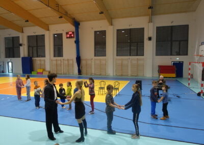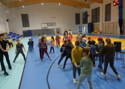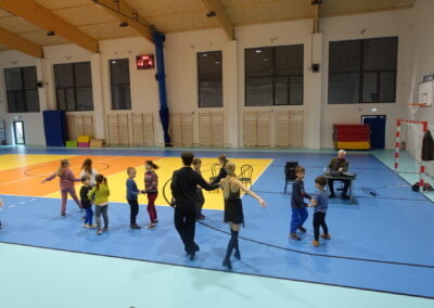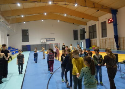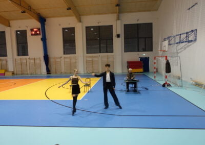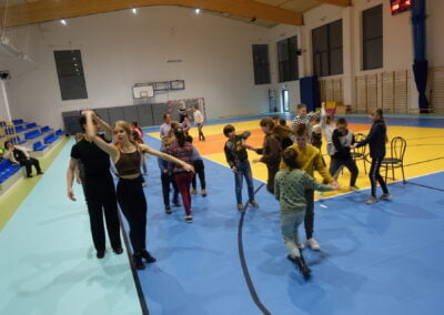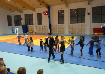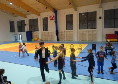 W piątek 13 stycznia 2023 roku, szkołę odwiedził pan Hanusz Kowalczyk. Tym razem jego i naszymi gośćmi byli tancerze, którzy pokazali nam niektóre tańce towarzyskie, latynoamerykańskie, takie jak: cha-cha, samba, rumba, paso doble, jive, a następnie tańce standardowe, czyli walc angielski, tango, walc wiedeński, foxtrot i quickstep.