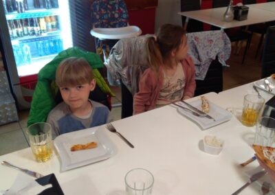 Na zakończenie wycieczki, głodni ale zadowoleni, poszliśmy do Pizzeri Metro. Tam każdy mógł najeść się do syta pyszną pizzą i napić soku.